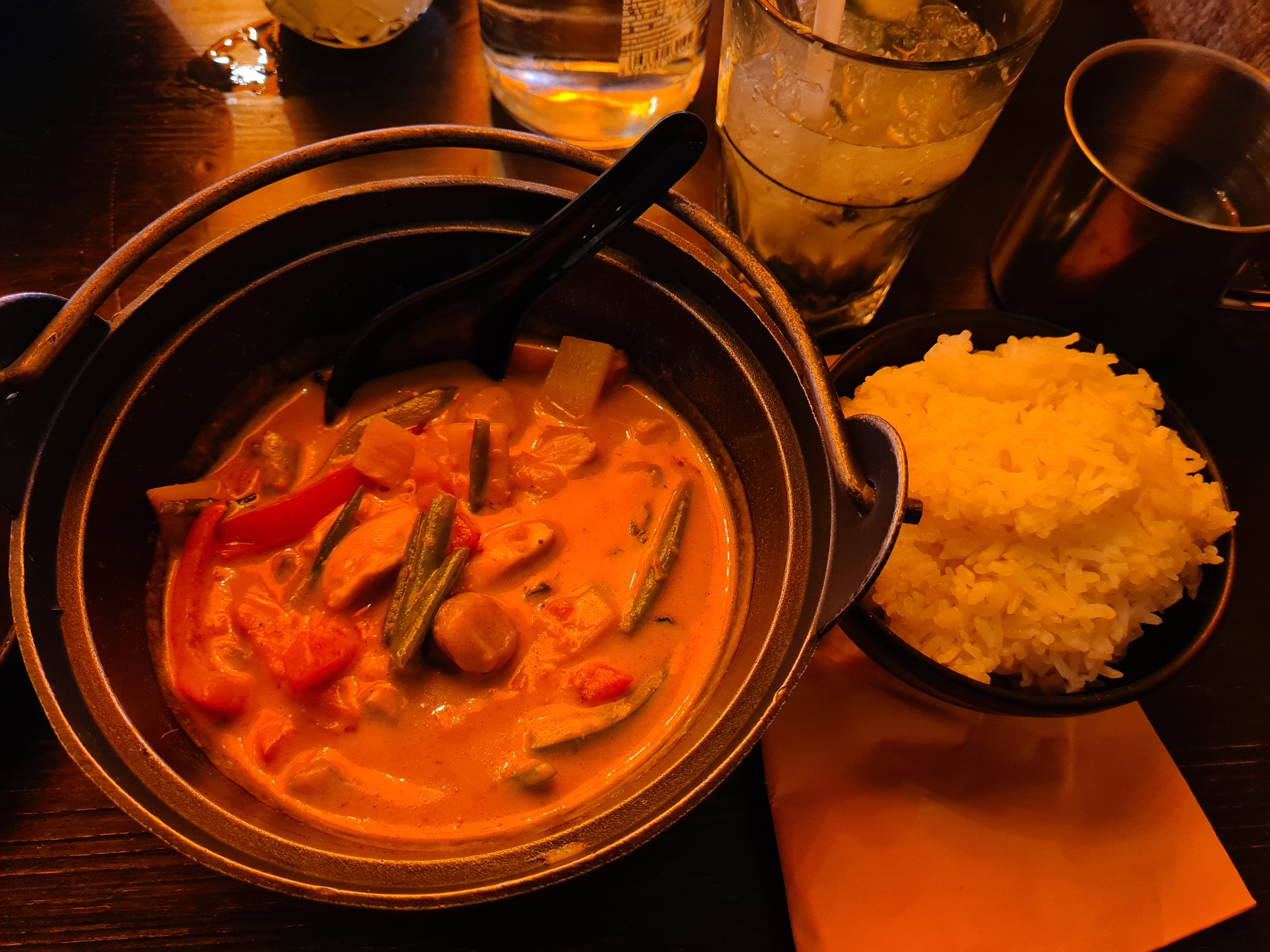 C’était franchement bon, j’ai pris un curry massaman au bœuf avec un riz en supplément. Seul petit bémol : le boeuf était trop cuit selon moi donc un peu dur à mâcher. Malgré tout, les saveurs étaient là ! Le cadre est sympa.