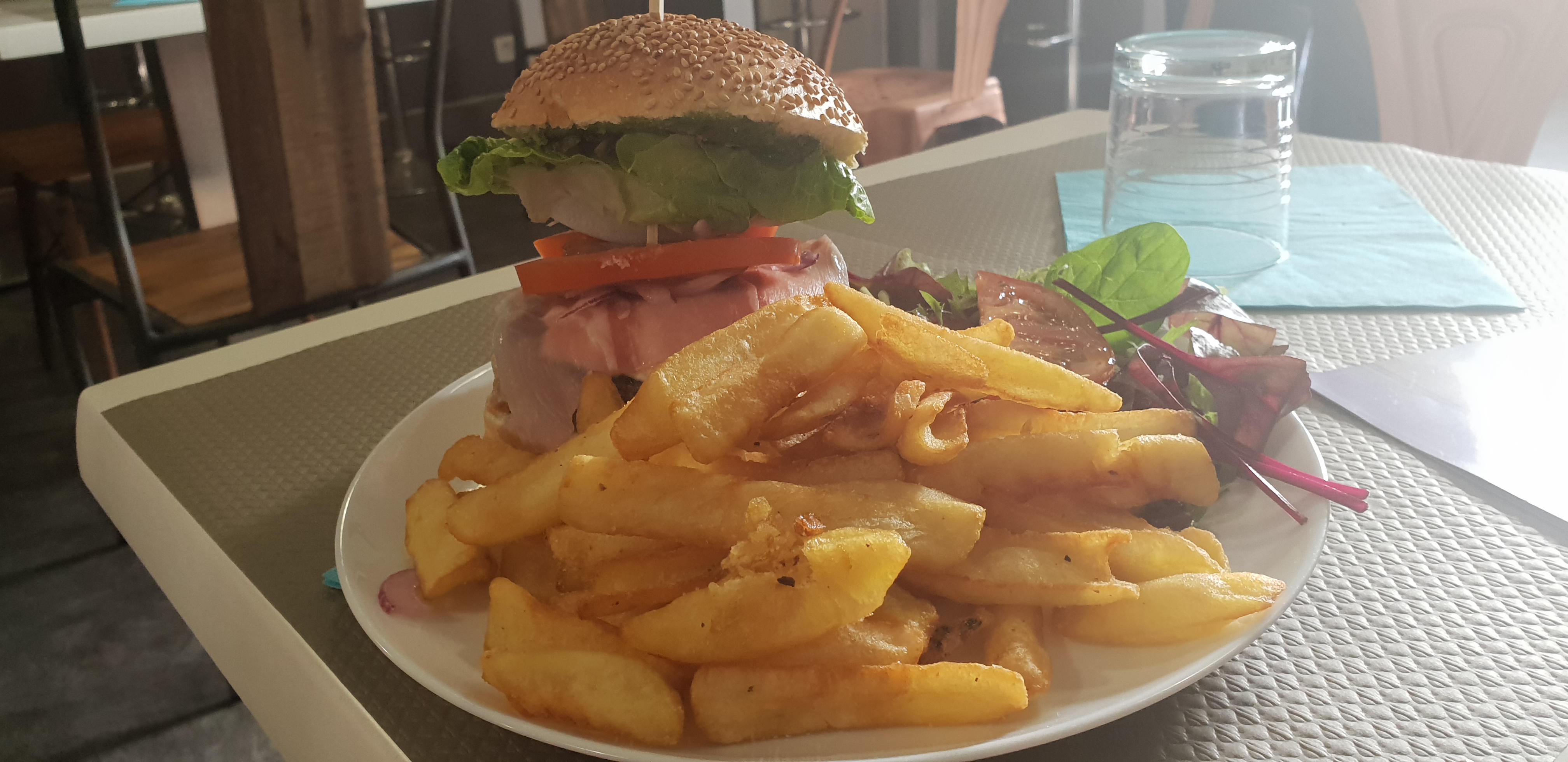 Un endroit sympathique à connaître avec des frites maison et de bons burgers Les patrons sont agréables. Les places ombragées. Deux petits bémols puristes : l eau du thé qui passe par la cafetière donnant un goût de café et l absence de diversité pour les accompagnements.