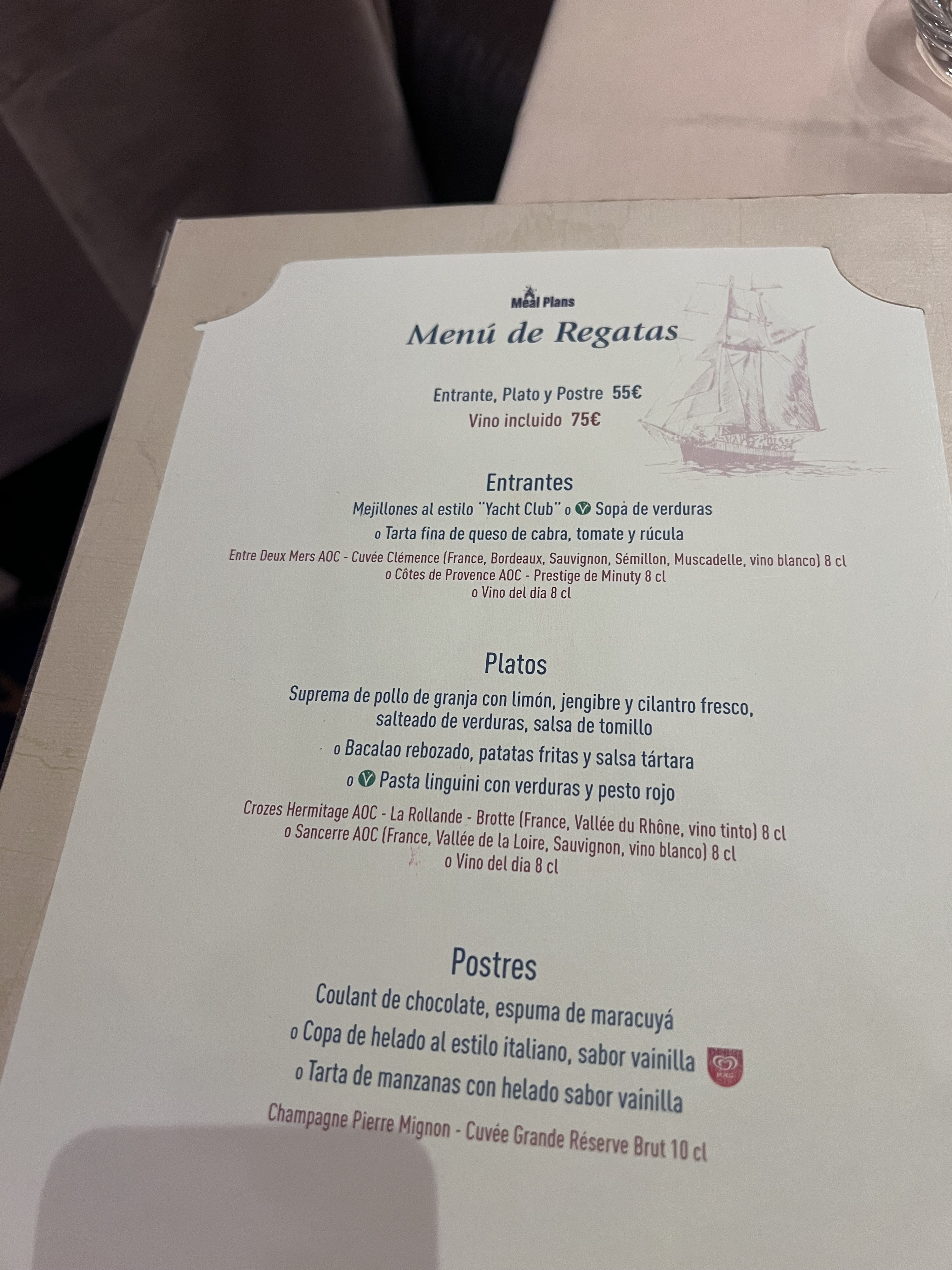 Menu grande voile : Entrée très(trop) simple, pas suffisamment d'informations sur les produits proposés. Plat: Entrecôte parfaite. Dessert: fromage, avec une salade non assaisonner. Très peu d'apéritif disponible, évitez le maury. Et la carte des vins n'est pas très fourni.