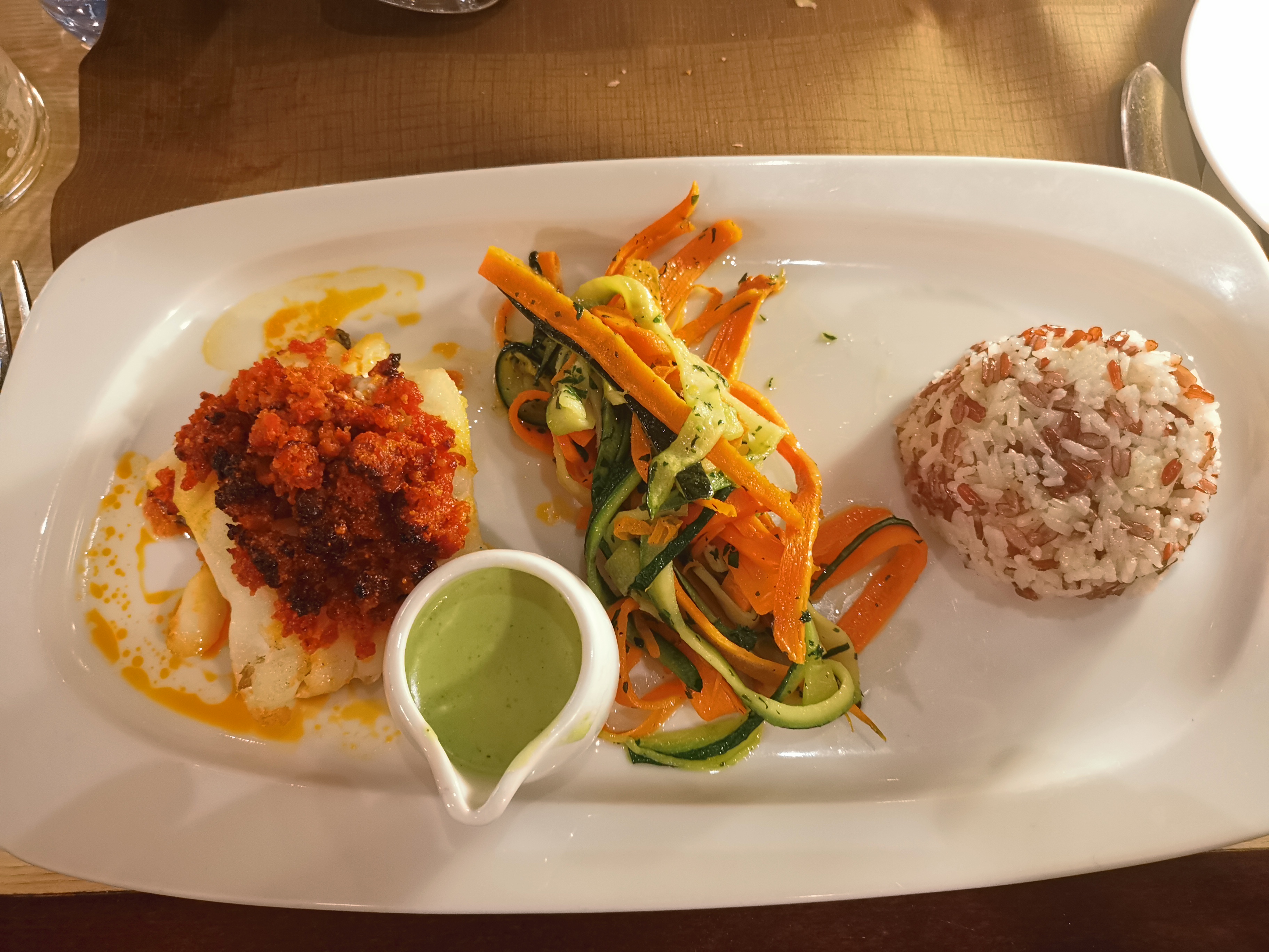 Comme une majorité des restaurants des parcs Disney, grande qualité des plats, belle présentation et bons produits. Ce soir là, un peu de cafouillage au niveau du service habituellement excellent mais ça reste un détail.