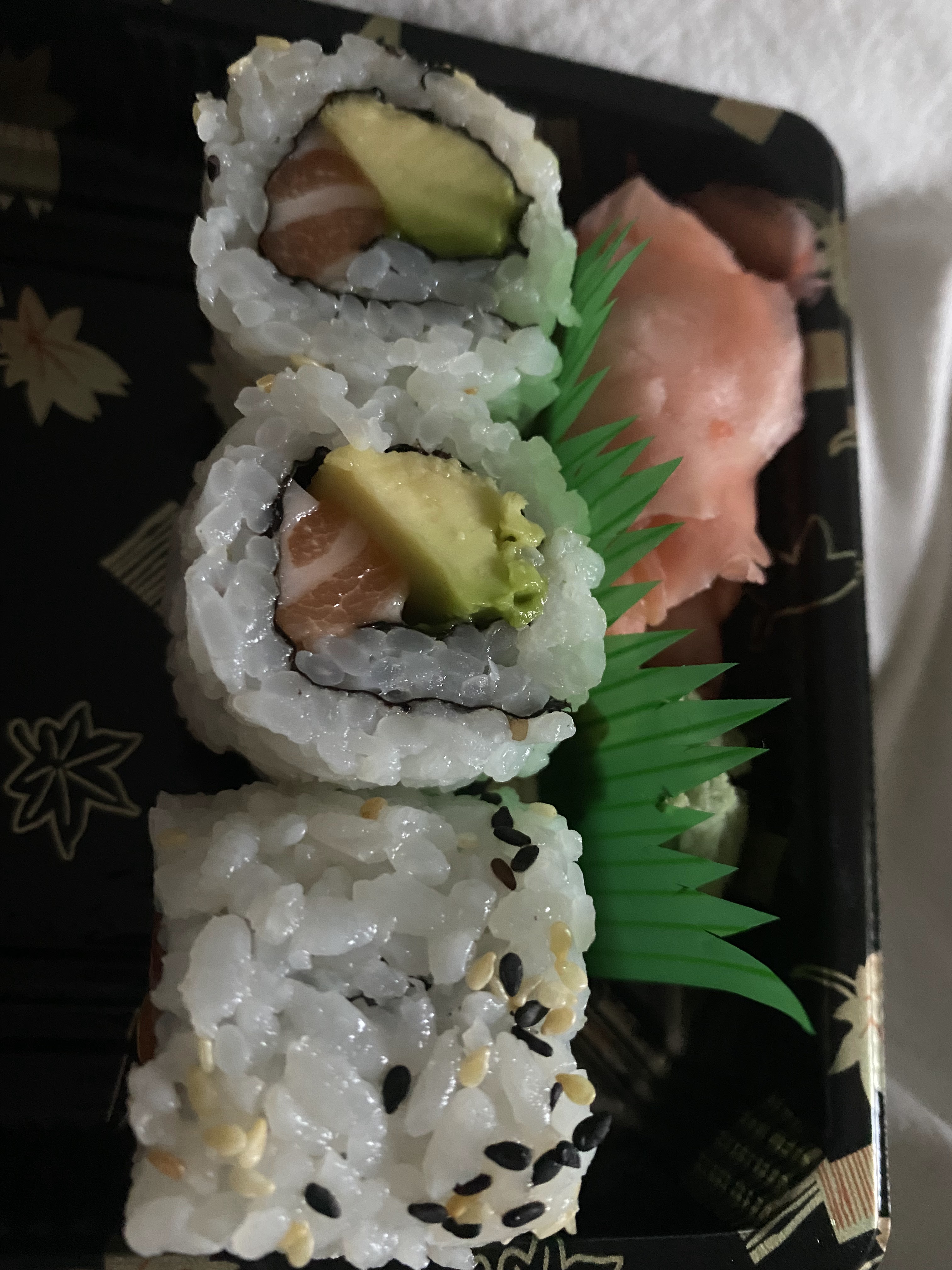 Très bon repas , les formules proposées sont vraiment bien équilibrées étant un gros mangeur de sushis en particulier de california saumon avocat vous trouverez votre plaisir ! Ci-joint c'est ce que j'avais prit pour 15,80€ soit 4 choix dont 3x6california saumon avocat et des sashimis De plus le personnel et le service sont au top ! Merci !