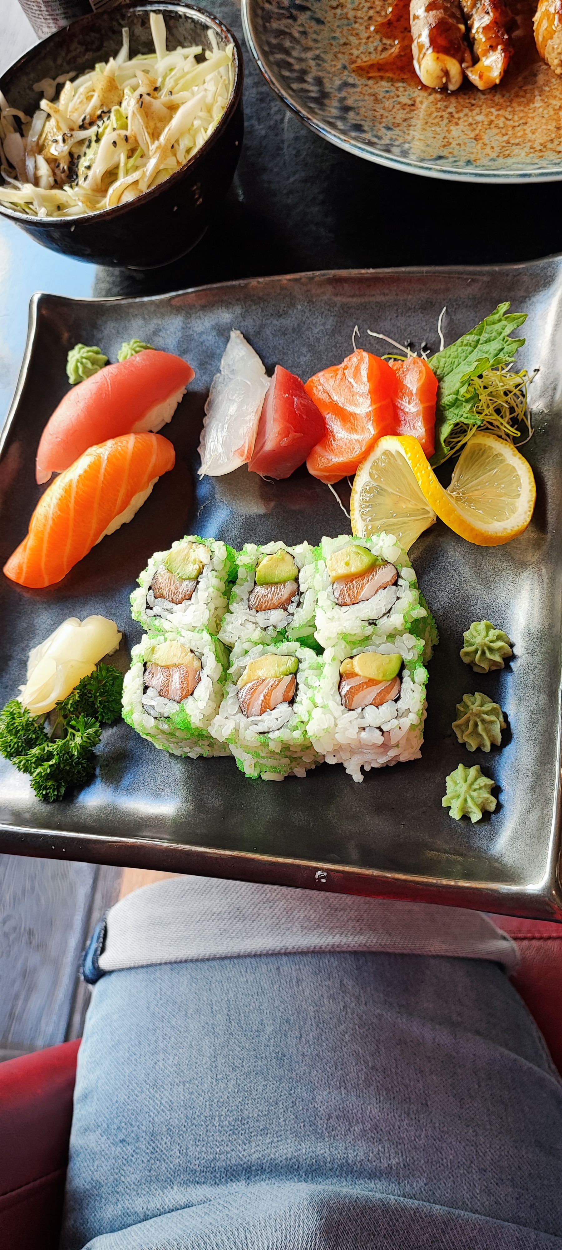 Repas correct sans plus. Salle assez froide d'aspect .pas de musique .les plats sans surprise.maki avec du thon en boîte .salade wakame bonne mais pas copieuse . ..service ok .un peu déçue ...