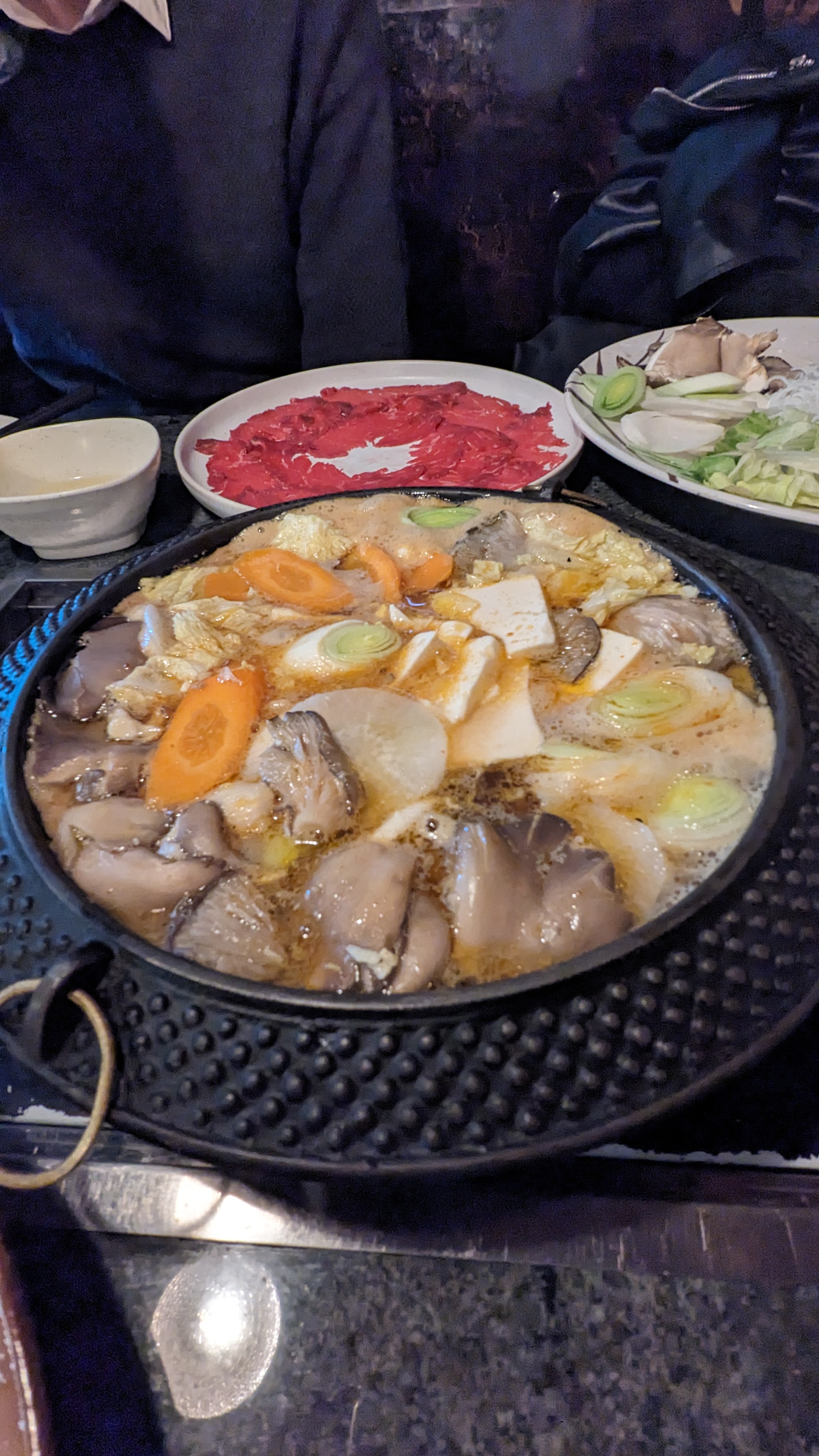 Pour commencer, le personnel est très serviable et sympathique, notamment la serveuse qui nous as servi et le monsieur de l'accueil. Durant tout le repas nous avons manqué de rien 🤗. Nous avons pris une fondue coréenne est c'était vraiment succulent, le bouillon étant savoureux et la viande fondante. Bref si vous voulez manger dans un bon restaurant japonais avec une ambiance chaleureuse et des serveurs géniaux, je vous conseille celui-ci sans hésiter 👍🏻👍🏻👍🏻