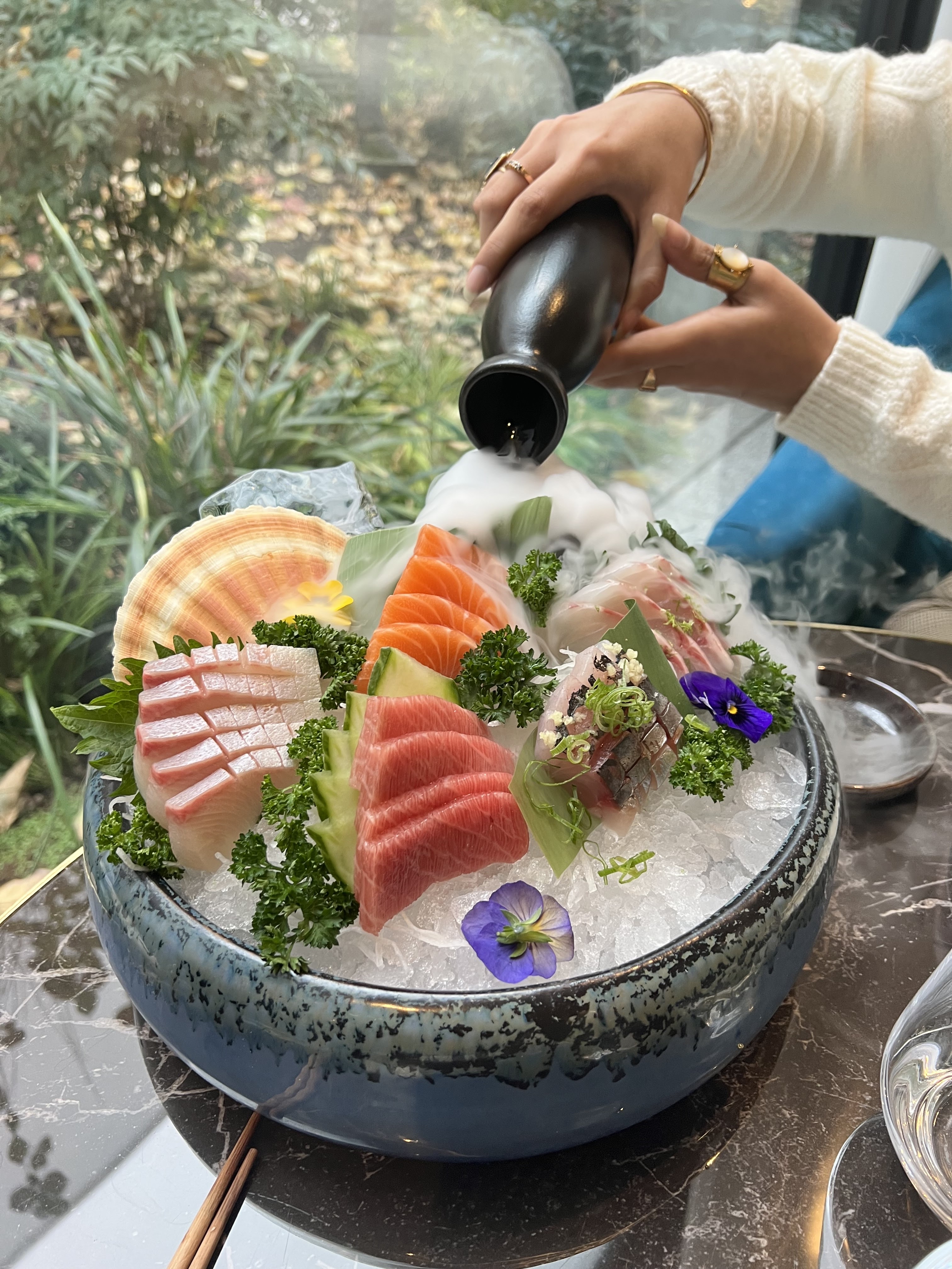 Si vous aimez la cuisine japonaise et souhaitez vous faire plaisir, c'est l'endroit idéal. C'est super chic et j'adore dîner dans la cour (fumeurs). Avec le prix affiché, vous obtenez une sélection fraîche et de haute qualité de sushis, sashimis, makis, tempuras et autres spécialités japonaises. Tout ce que nous avons commandé était vraiment délicieux et nous avons apprécié chaque bouchée. Mon seul reproche est la taille du sashimi - pour le prix, il pourrait être un peu plus gros. il était tranché trop finement contrairement à ce que l'on obtiendrait dans les meilleurs restaurants japonais. De plus, j’ai trouvé bizarre qu’ils ne servent pas de thé vert. Je pense que l'ambiance évoque davantage les cocktails et les sushis ! Le repas pour 2 sans boissons s'élevait à 190 €. Nourriture : ⭐️⭐️⭐️⭐️ Service : ⭐️⭐️⭐️⭐️ Ambiance : ⭐️⭐️⭐️⭐️⭐️ Valeur : ⭐️⭐️⭐️