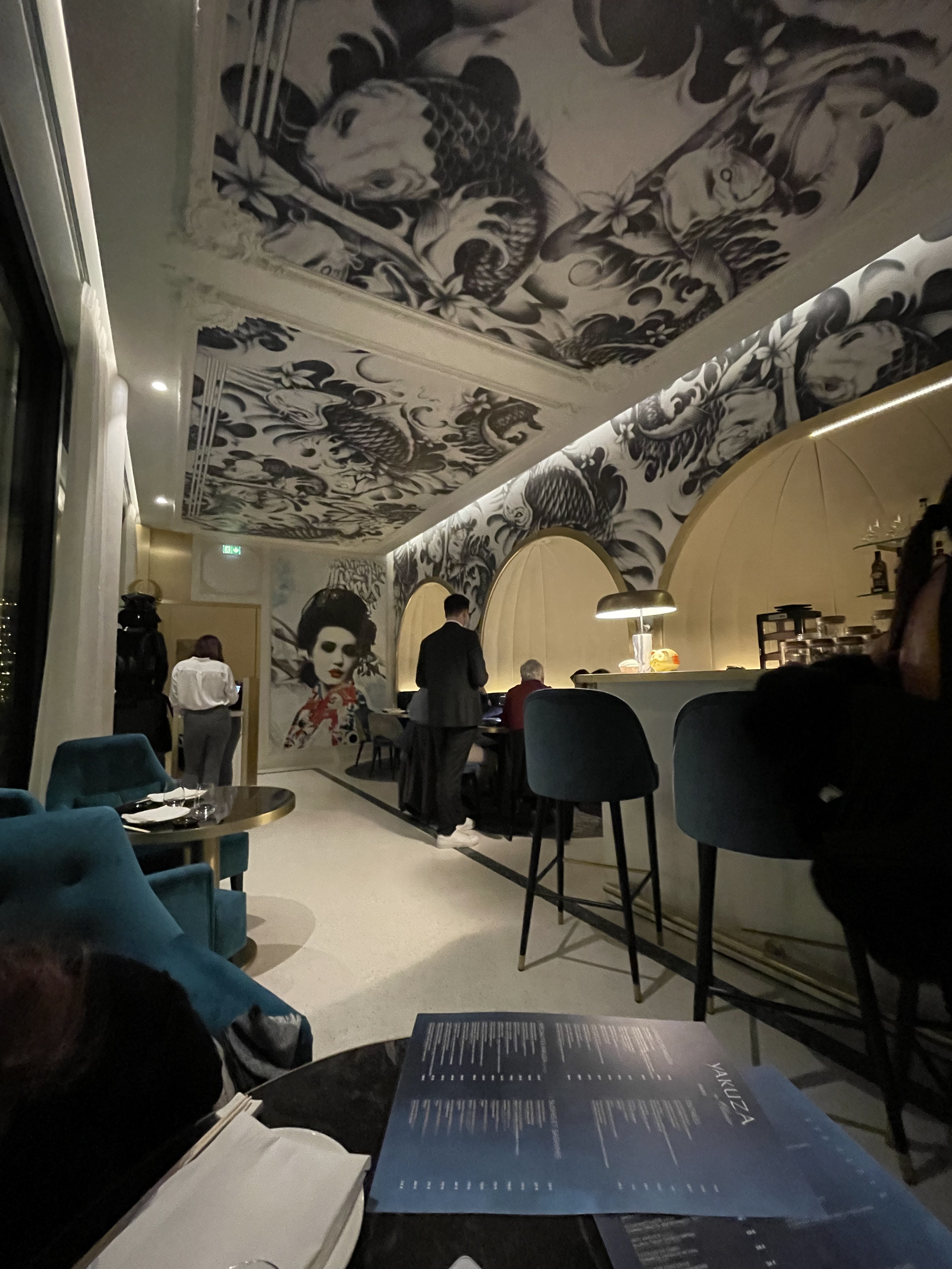 Le Yakuza est en fait un restaurant d'un hôtel aussi discret que possible, à tel point qu'on peut passer devant sans le trouver. Le cadre est élégant, le service attentionné, et le raffinement saute aux yeux. L'offre gastronomique est inhabituelle, car les restaurants japonais haut de gamme de Paris ont tendance à fuir les traditionnels sushi-sashimi-maki vulgarisés par les innombrables restaurants de quartier. Pas le Yakuza. Mais que c'est bon! Les poissons crus fondent dans la bouche, rappelant qu'au Japon il s'agit d'une spécialité noble, rare, coûteuse, et pas d'un fast-food. Mais ils ne sont pas 100% traditionnels, au sens où on y trouve aussi de la truffe, entre autres ajouts de produits locaux. Comme c'est aussi remarquablement beau à regarder que délicieux à manger, c'est une vraie fête pour ceux qui aiment ce genre de cuisine. Sans être abordable, le prix est tout à fait raisonnable pour le quartier chic et le raffinement de la table. En bref: très chaleureusement recommandé. Candidat au titre de meilleur restaurant de poisson cru de Paris.