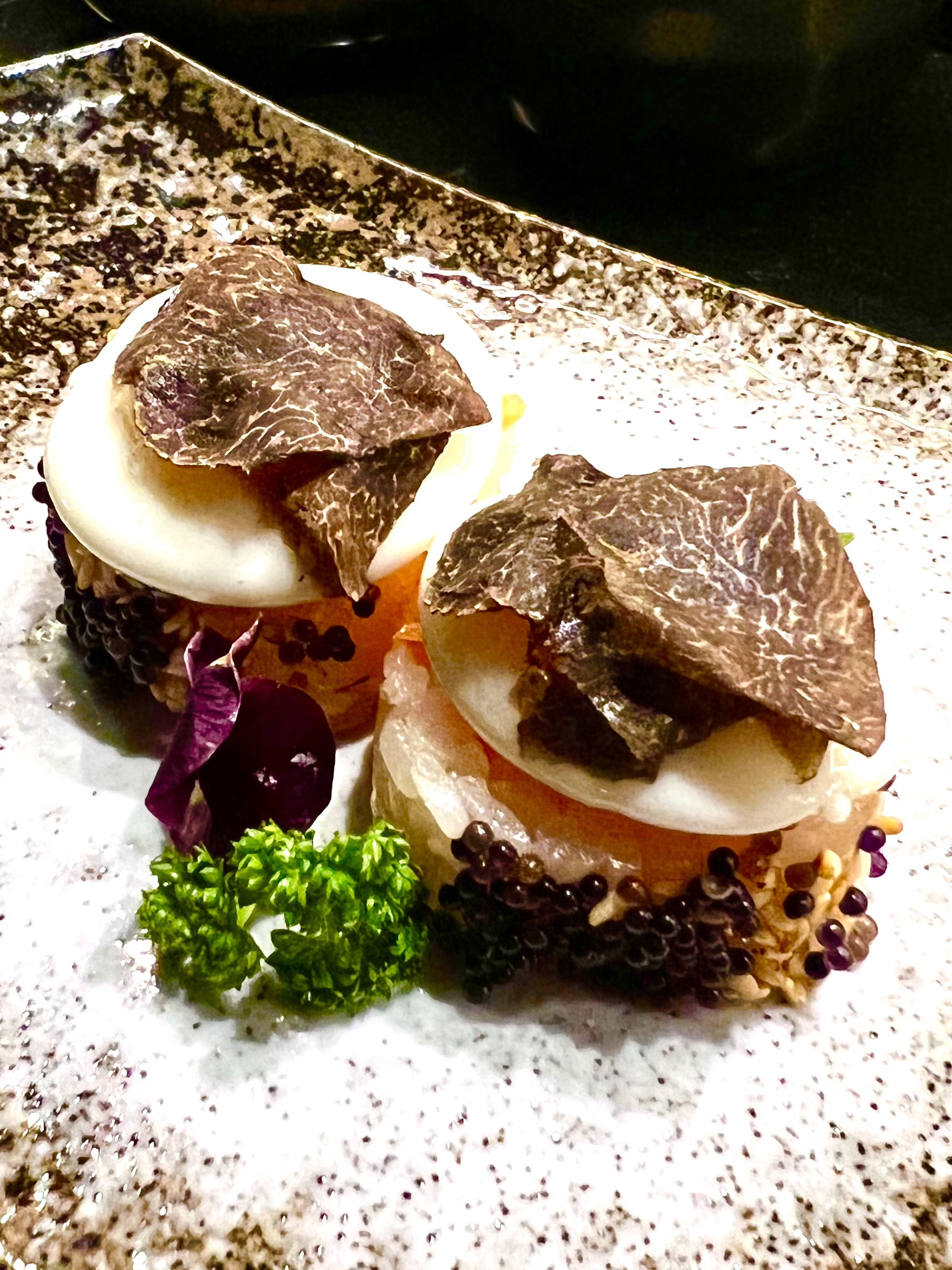 Félicitations en premier lieu pour l'accueil et la qualité du service, qui ont été proche de la perfection. Côté cuisine, le wagyu/pâtes à la truffe était parfait, le sushi anguille/pomme n'était pas assez assaisonné, jolie cave