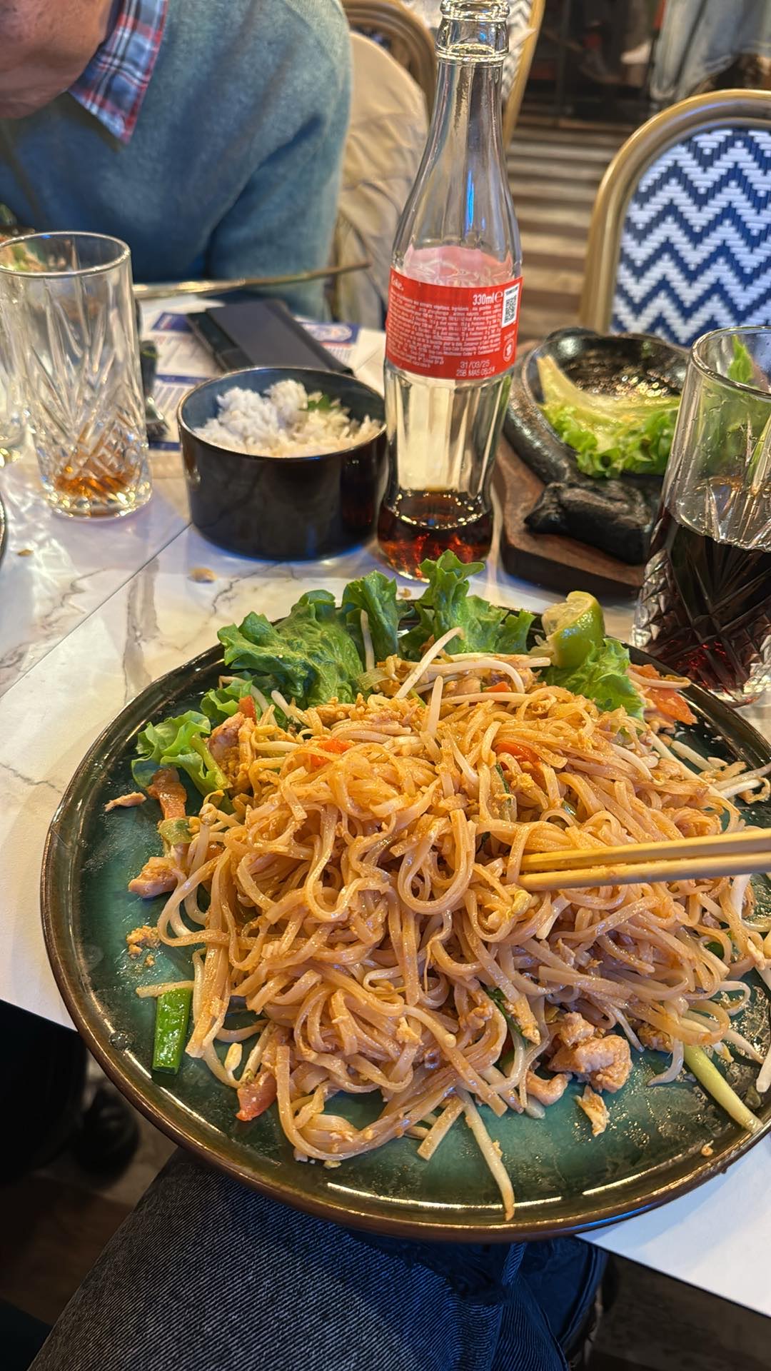 Enfin un vrai restaurant thai qui nous rappel la delicieuse street food de Bangkok avec sa cuisine equilibre et savoureuse 🙏 La deco est juste incroyable ces nuances de bleu et le coter vegetal nous rappel les promenades le long du parc lumpini . Cuisine ouverte aucun aliment precuit ou predecouper , les chefs coupent tous minute et cuisine minute pour garantir des plats frais et de qualite l’attente est raisonnable pour la qualite des plats ,pas comme certaine chaine ou tous est precuit et juste sauter au wok avec une sauce soja pour nous faire croire que c’est asiatique 😂 Du debut a la fin on voyage que ce sois le classique Som tam en passant par le pad thai et en finissant par le mythique Krao mak mouang tous étais parfait 🙏 Kop khun kha Leo phob kun mai 🙏 Adrien