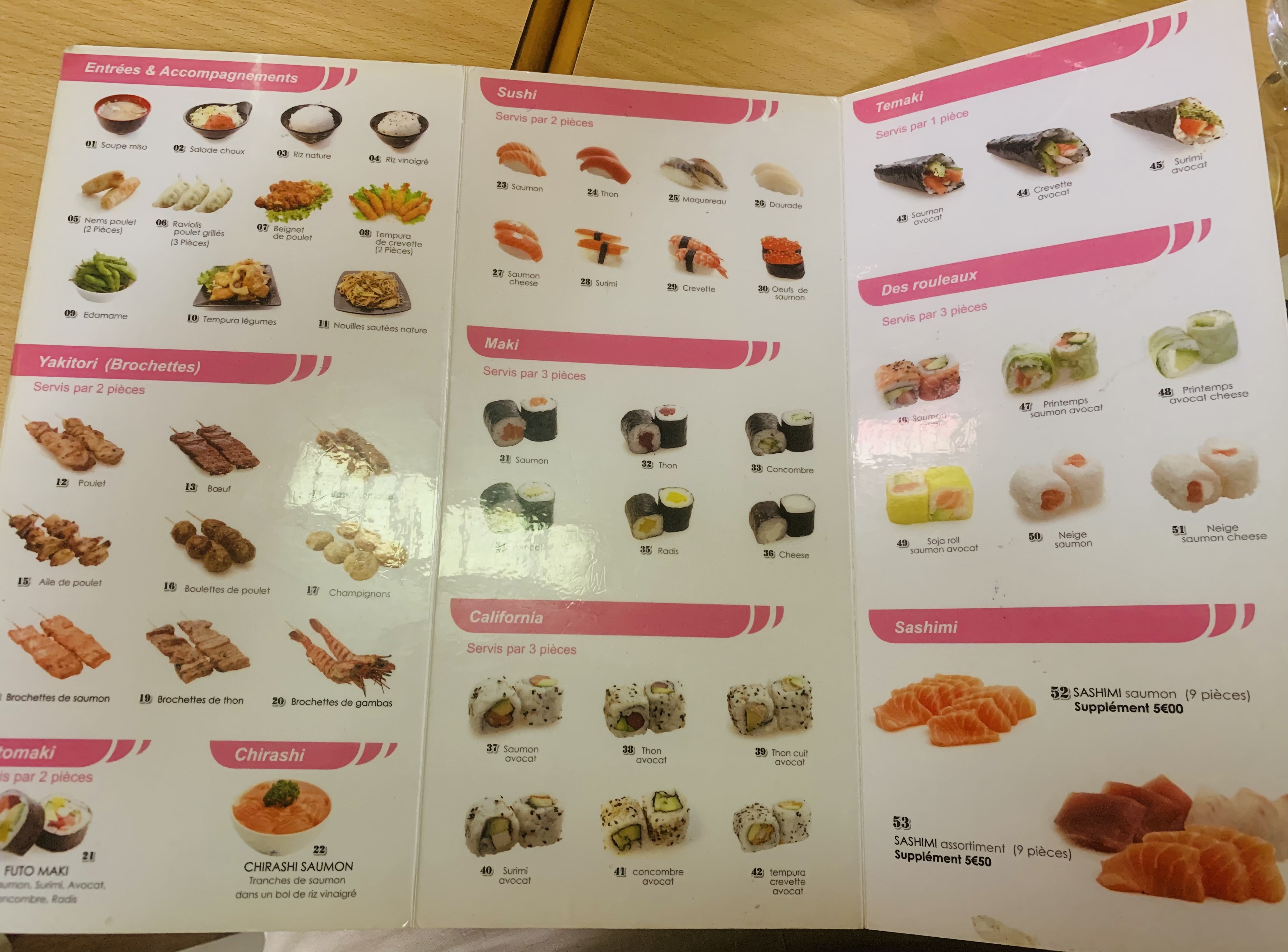 Les portions sont super généreuses…en riz, qui constitue peut être 95% des makis et des sushis. Les poissons ne m’ont d’ailleurs pas parus très frais. Malgré le fait qu’on était très peu dans le restaurant (2 tables) le service était très lent, sûrement dans le but de nous couper l’appétit pour moins consommer. Le choix de carte est très faible, avec des desserts payants Je mets deux étoiles car les entrées et les brochettes étaient délicieuses !