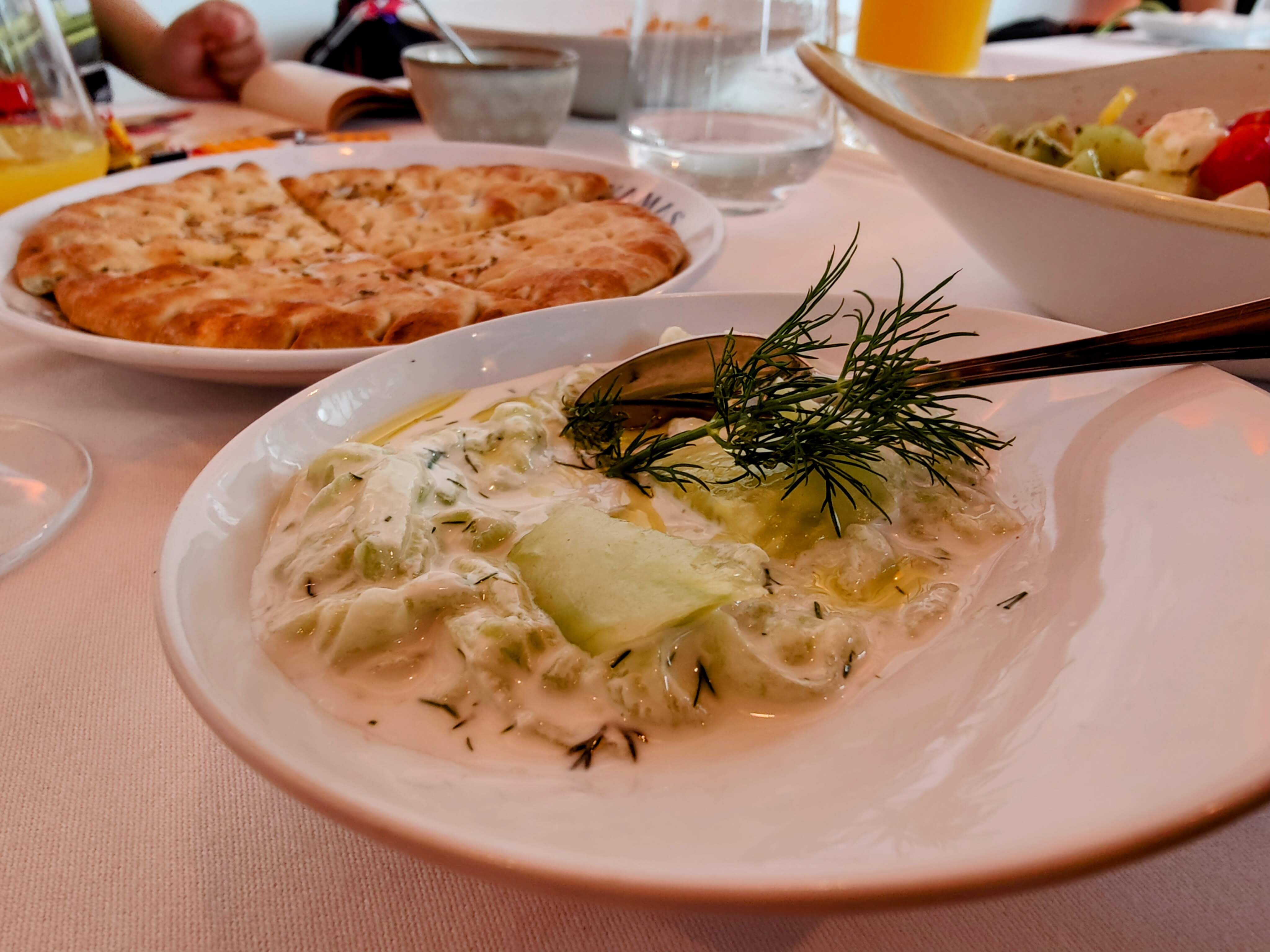 Grec raffiné au bord de la mer, avec ambiance le soir ! On regrette seulement le dessert, pas forcément à la hauteur du prix