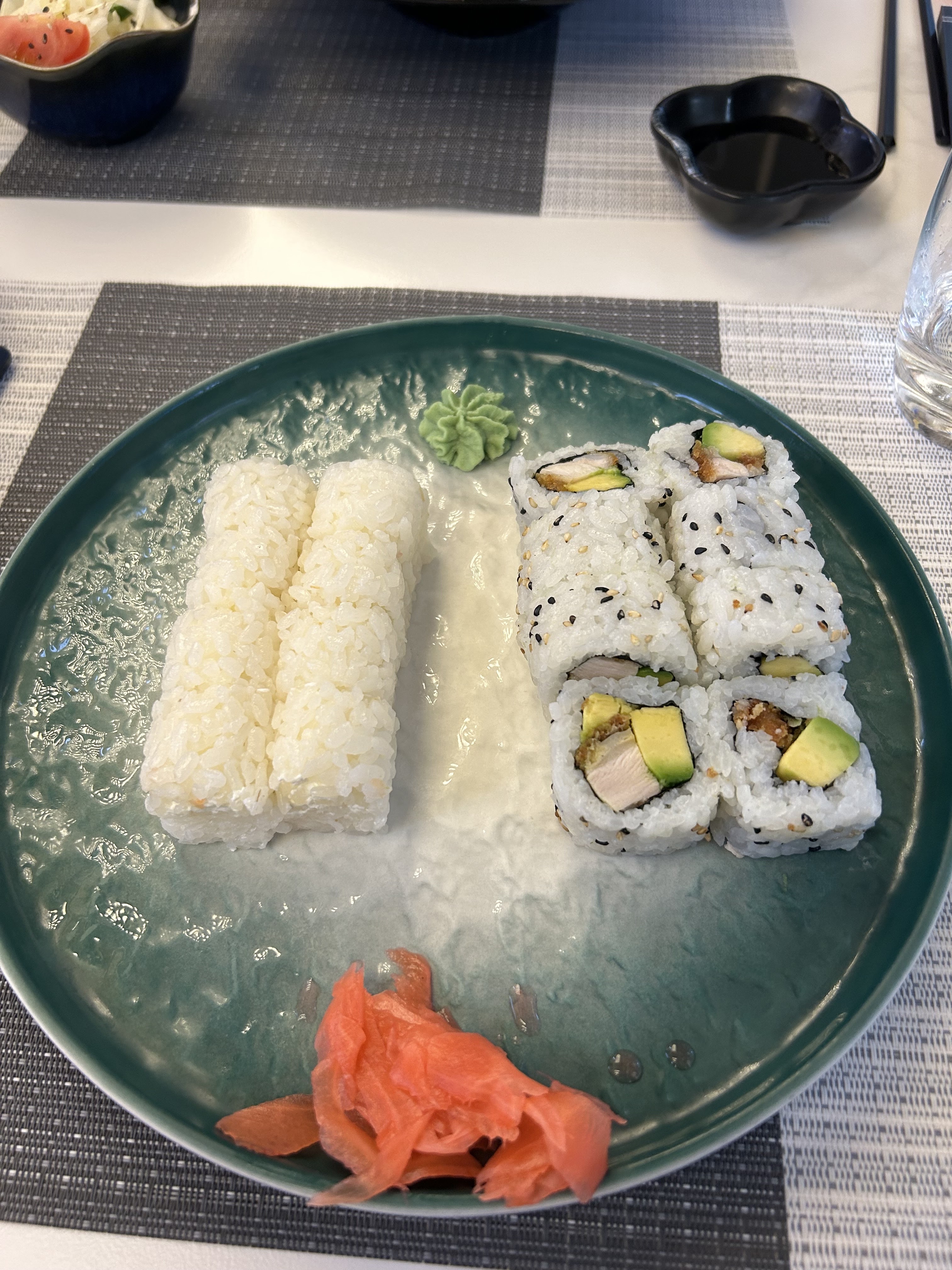 Premiere fois dans ce resto japonais excentré, à coté des bureaux du Wacken et des appartements residents . Nous avons pris notre déjeuner un samedi. Nous avons eu le plaisir d’avoir le resto à nous tout seuls. Pour ma part un bento et mon partenaire un petit plat de sushis + california rolls. Plats correctement cuisinés, les prix sont corrects. Petit bémol pour le riz à sushi qui etait un peu sec dommage. Le cadre invite au dépaysement, moderne et chic. Service correct et rapide. Carte assez variée.