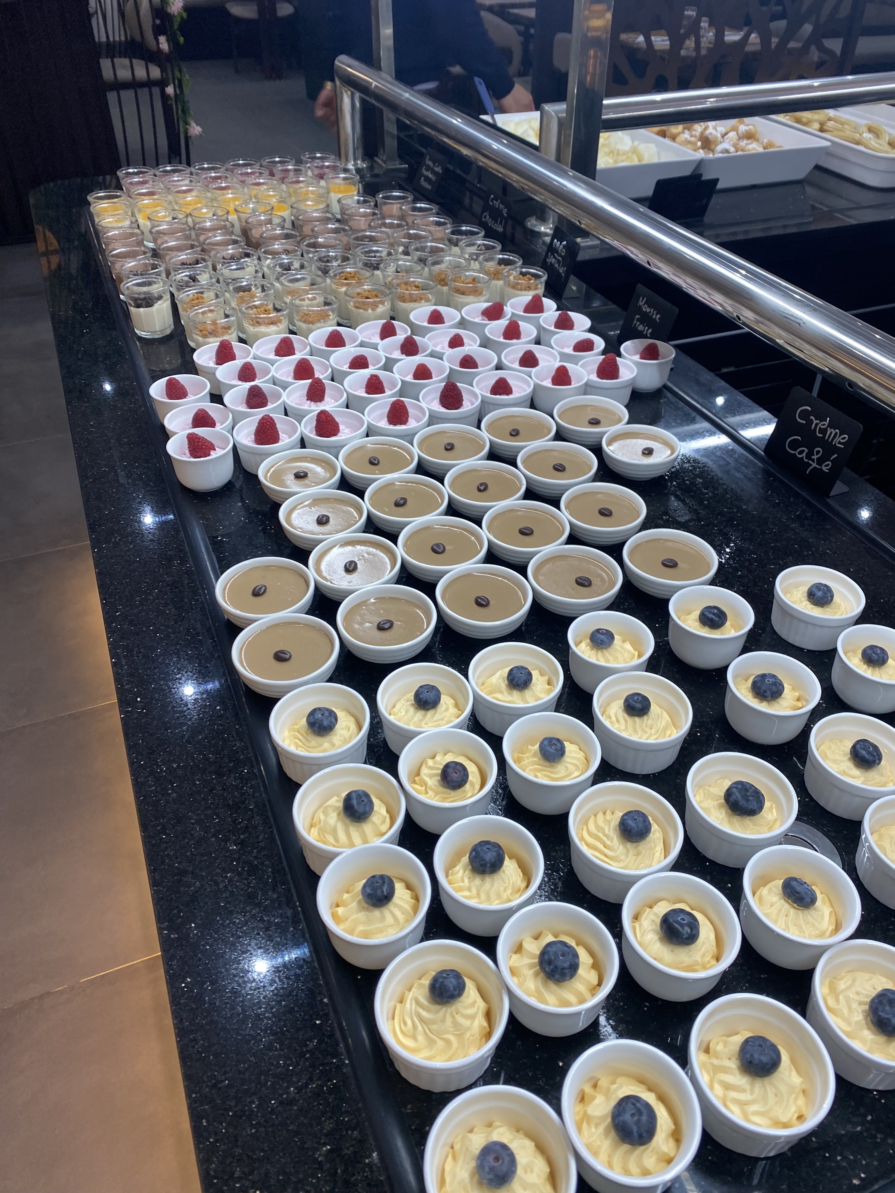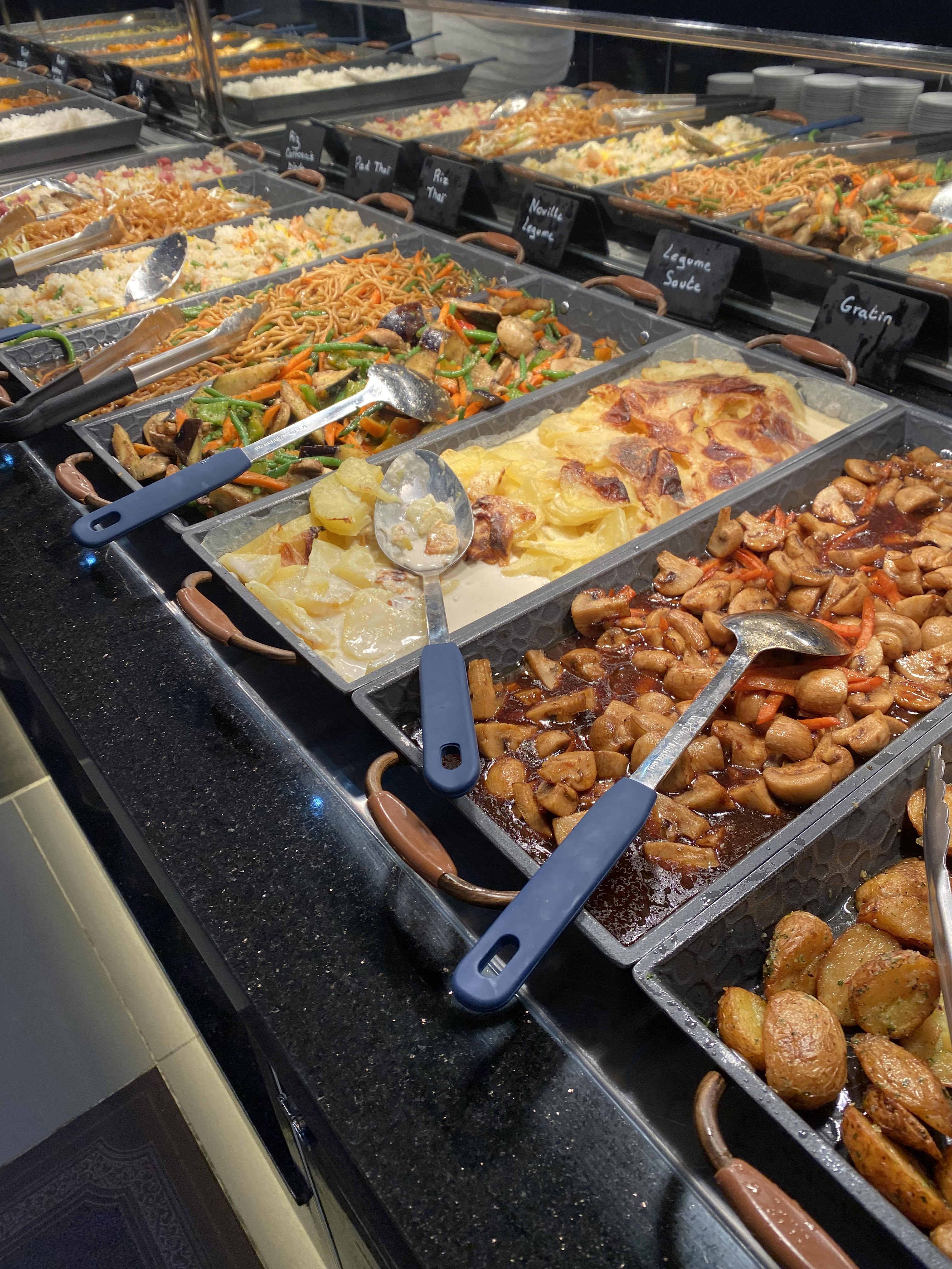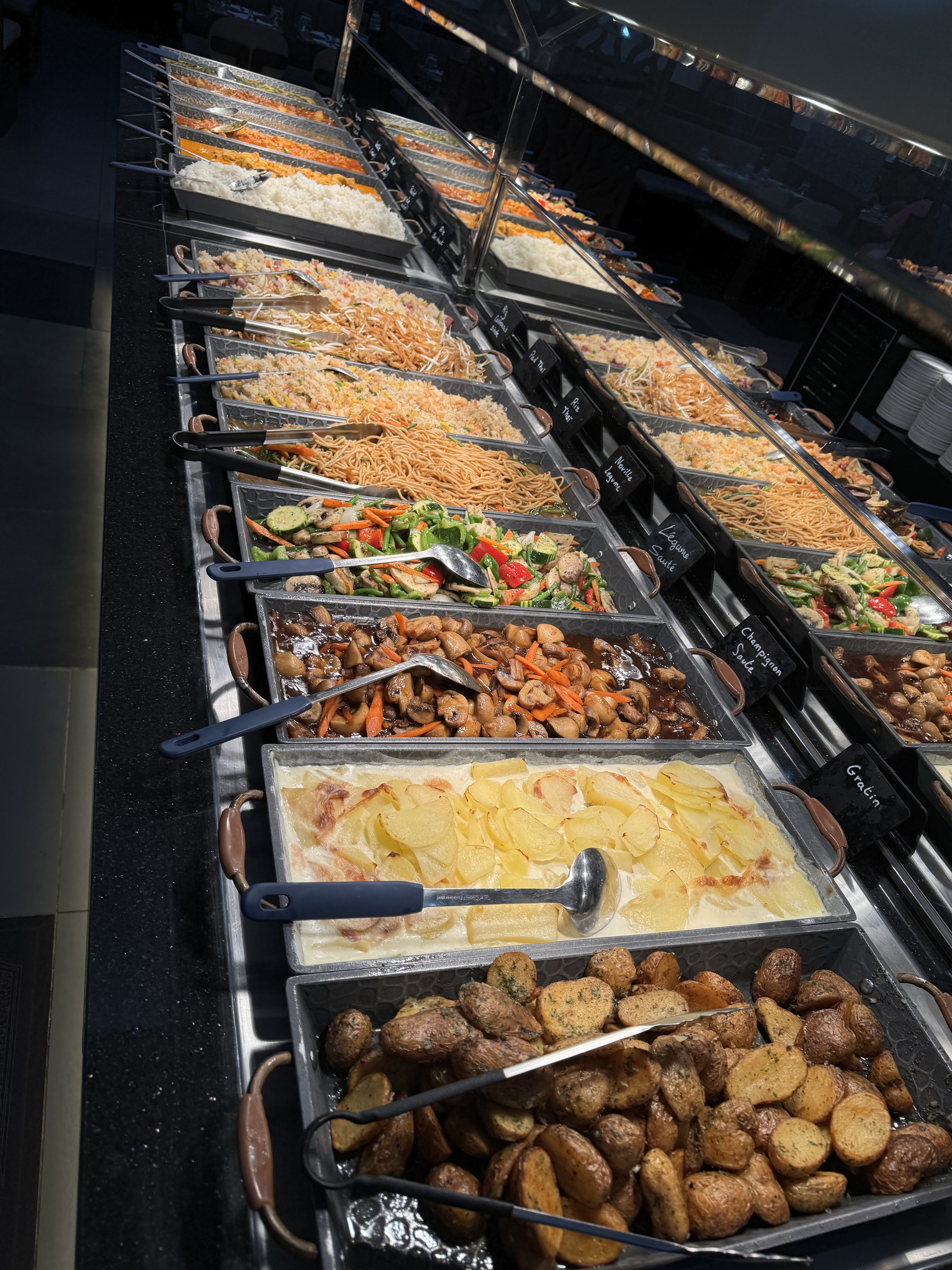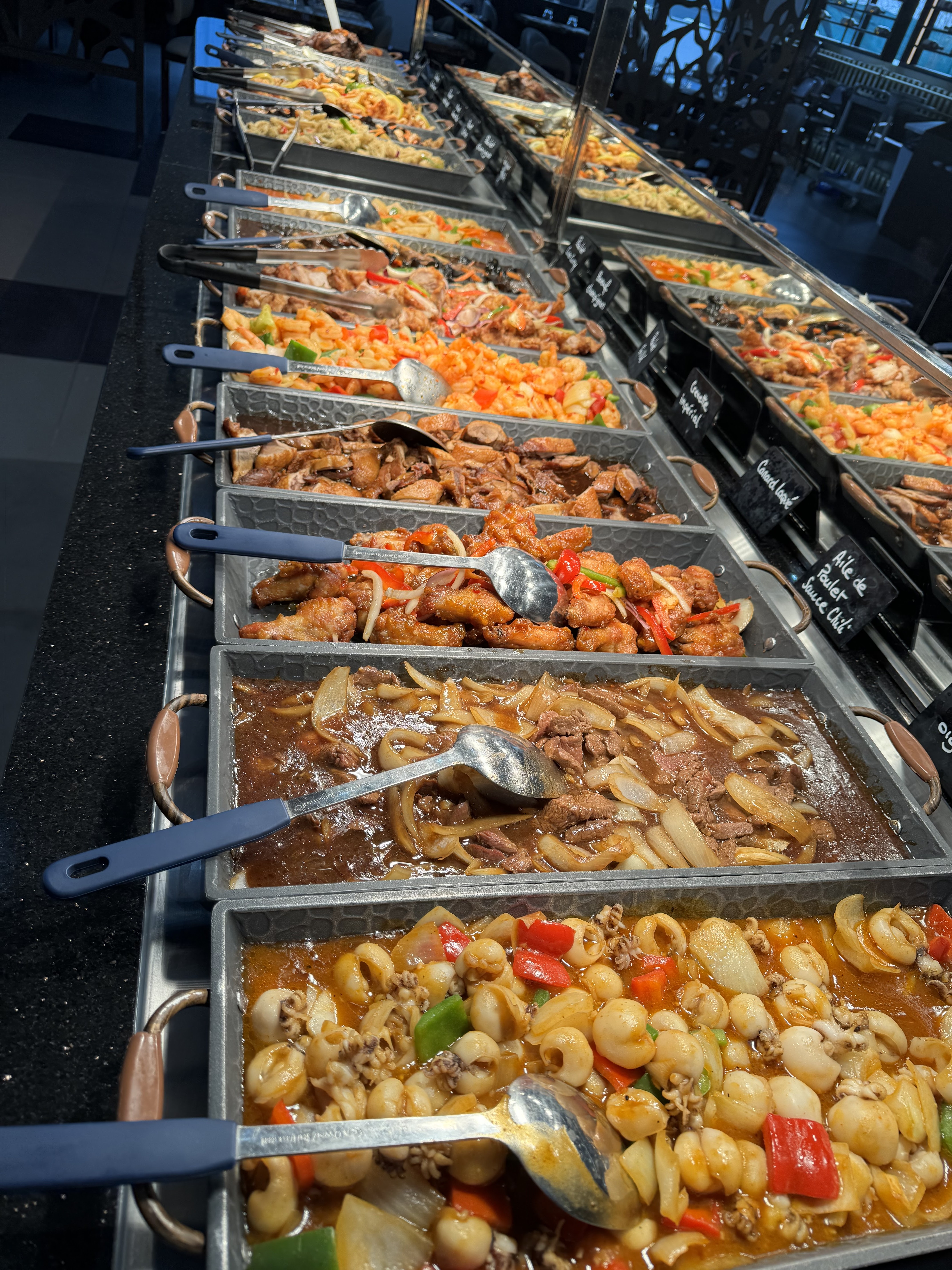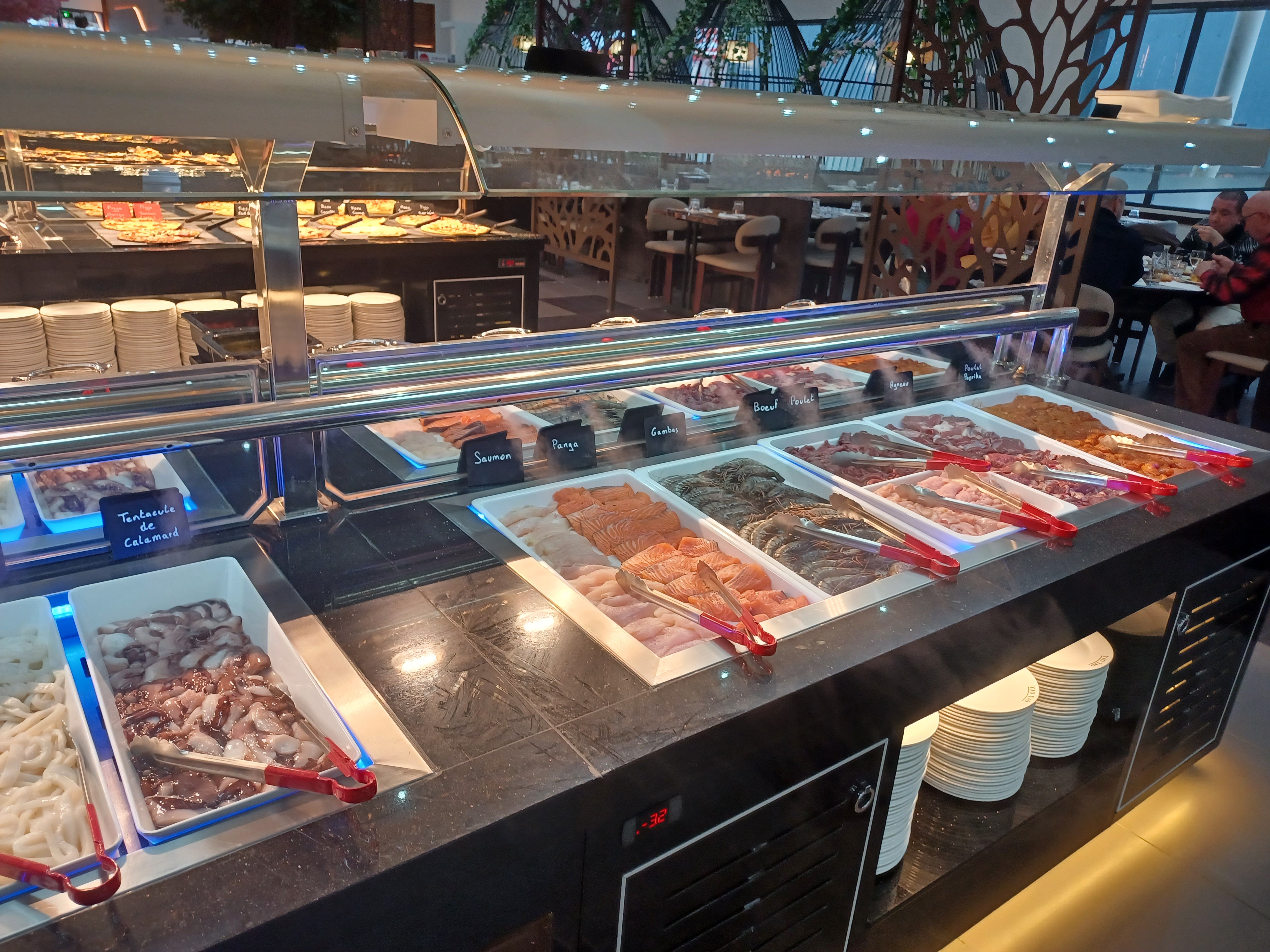 Je ne suis pas un fan des buffets mais celui ci est pas mal. Les buffets sont diversifiés et en arrivant au plus tôt ils sont frais.