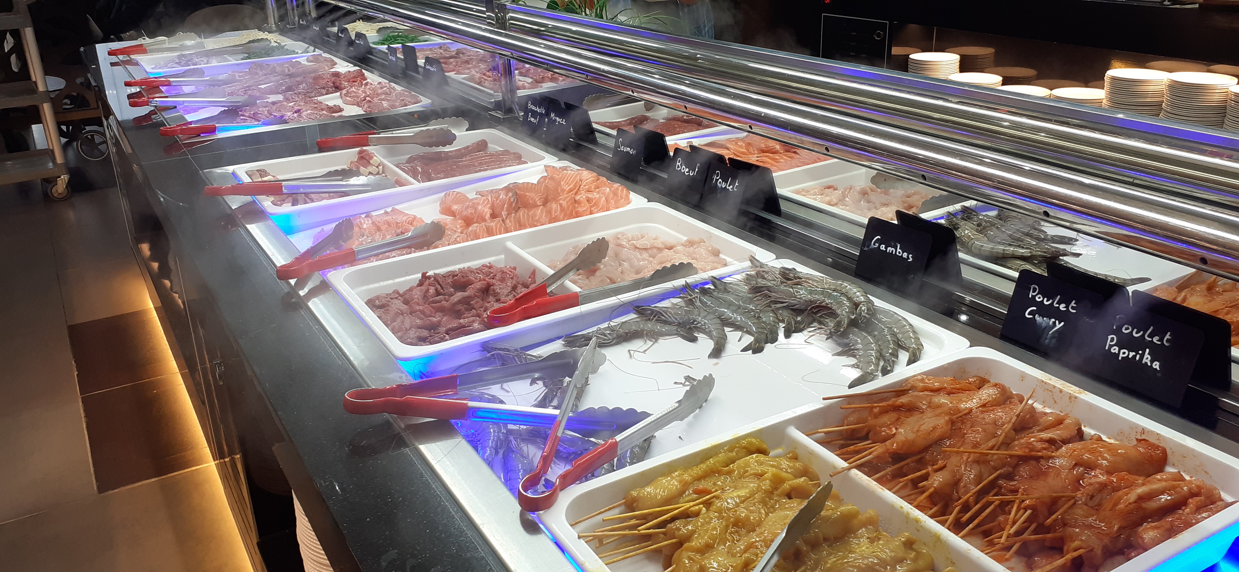 Très bon restaurant à volonté grand choix de sushi, entrée froide, plat chaud et desserts, viandes crue a passer au grill ou wok très difficile d'être déçu et la qualité hygiénique semble plus que correct aussi bien pour les produits que pour le lieu (y compris pour les toilettes qui sont très propres)