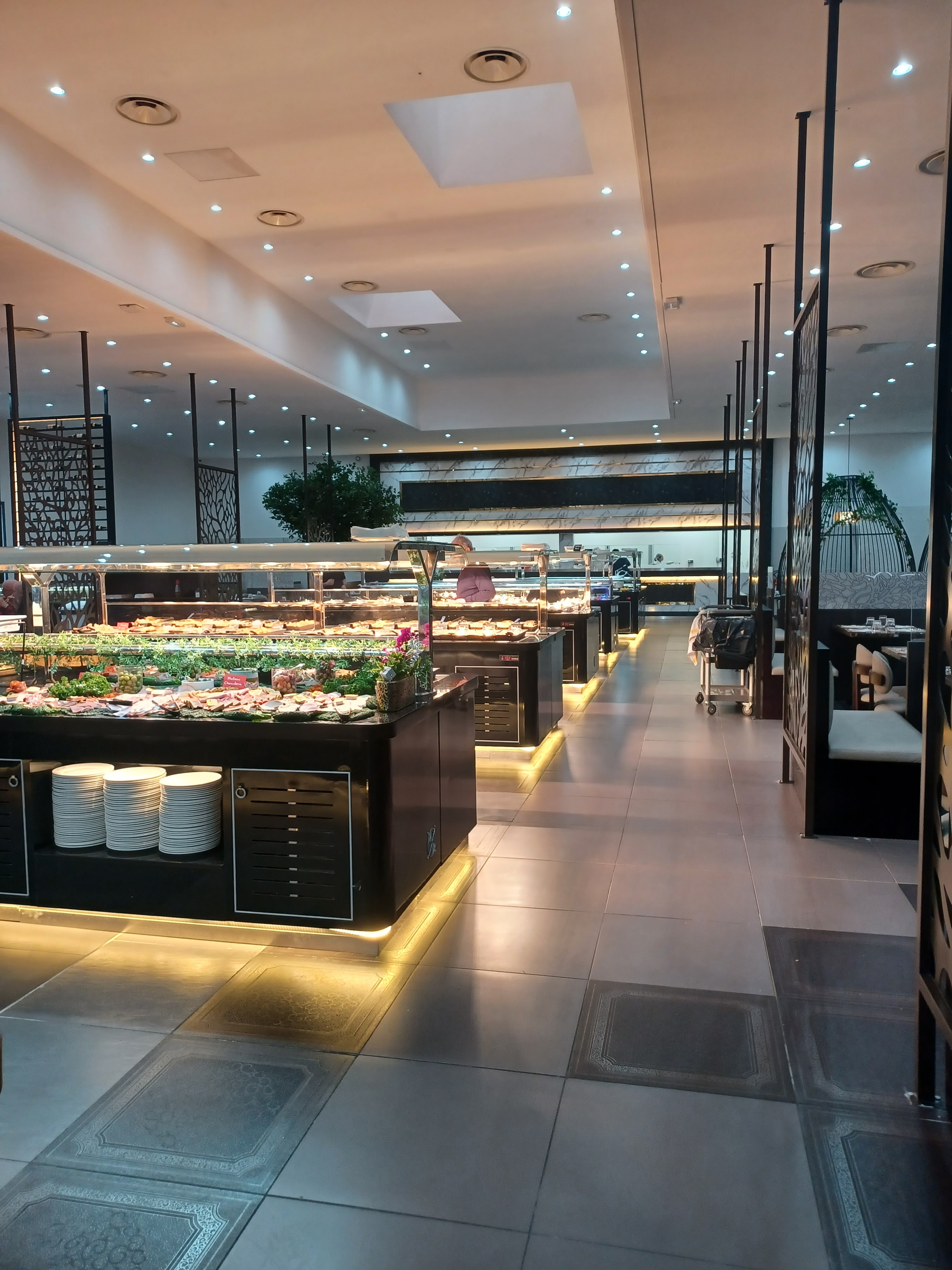 Impressionnant buffets Immense choix Jolie déco Mais trop cher et trop bruyant. Y’a vraiment la quantité mais pas forcément la qualité. Rien d’exceptionnel ça reste un joli buffet de zone commerciale.