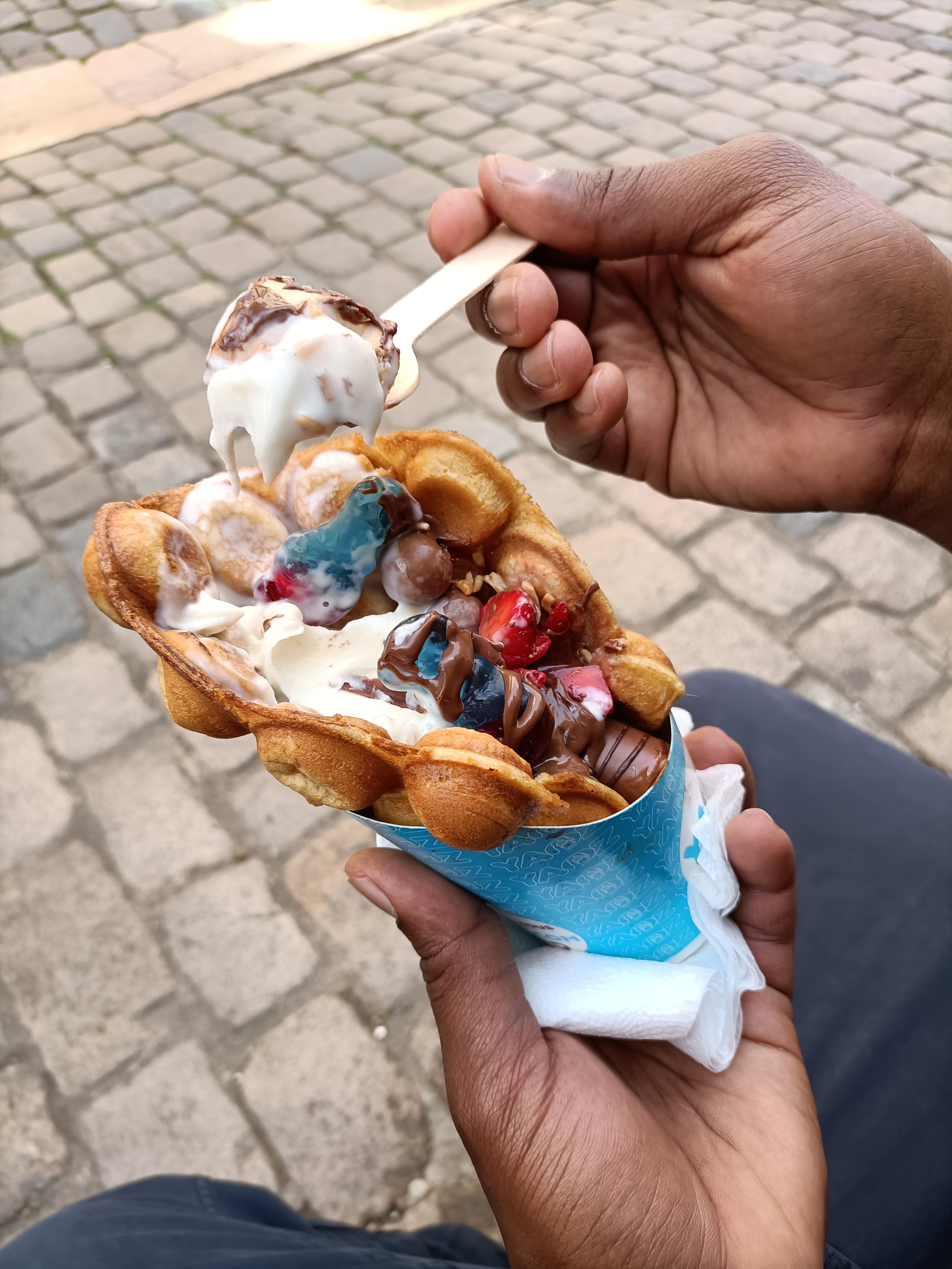Je suis venue dans le vieux Lyon avec une amie lors de la fête des lumières et nous sommes tombées sur yaoz. On a craqué pour une bubble gaufre avec du yaourt nature bio dedans avec quelques toppings et un coulis miel et comment vous dire qu’on a trop aimé ! J’adore le concept, on a eu le droit à un super accueil malgré la foule 😊 Je suis déjà repassée plusieurs fois depuis et toujours ravie surtout que j’ai pu goûter les parfums du mois cassis et marron glacé