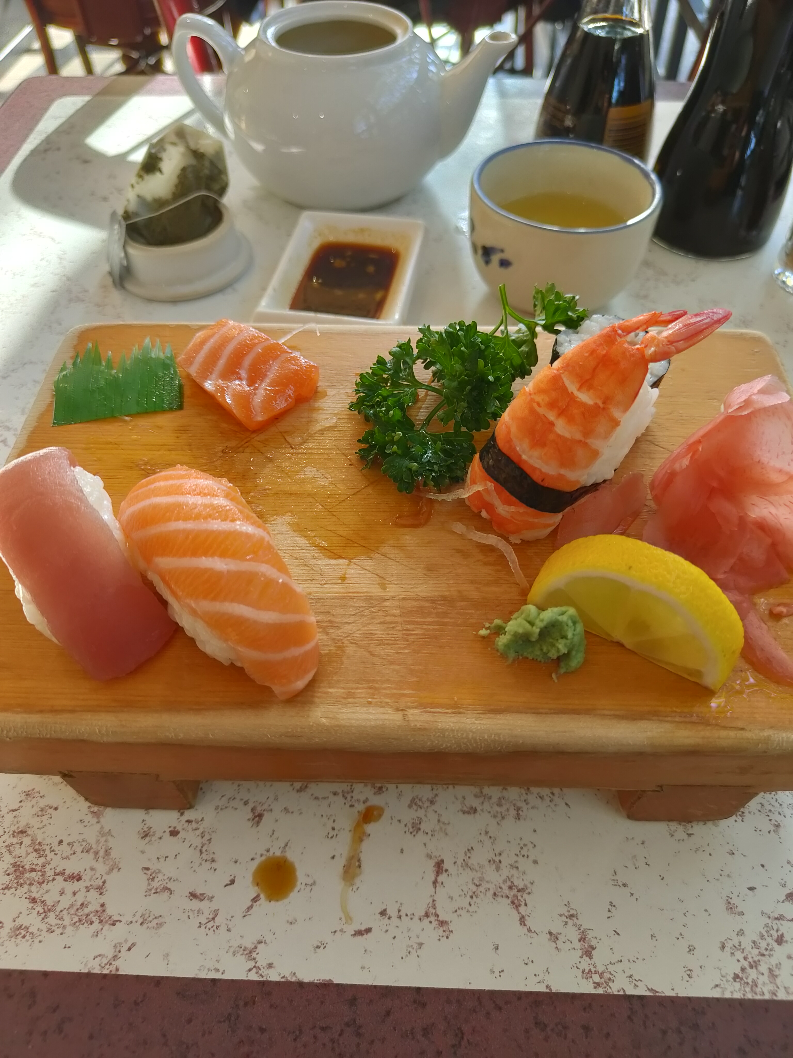 Un peu déçue par la tempura de gambas, mais bons sushis