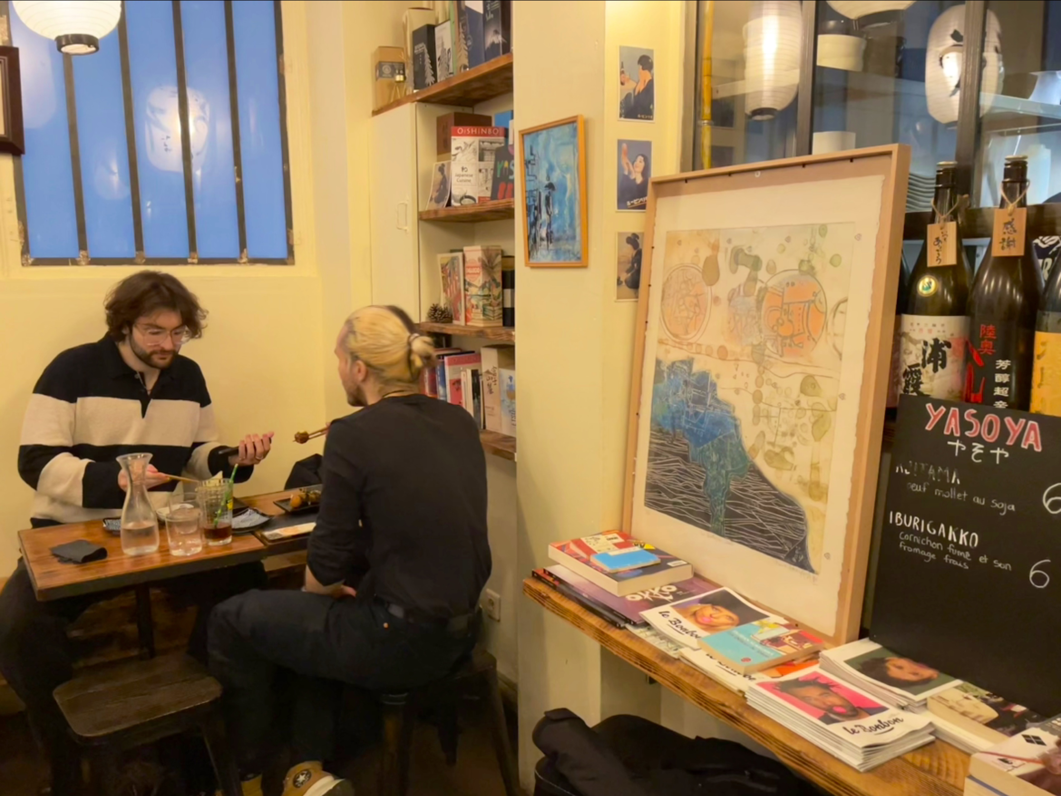 Izakaya : tapas à la japonaise. Établissement franco-japonais tenu en famille. Curry Japonais, bento (panier repas japonais) le midi, tapas et street food révisités. Cadre inspiré des izakaya comme il en existe au Japon. Une plongée dans le Japon des petits bistrots comme si on y était. Produits frais et élaborés. Idéal entre amis ou pour boire un verre. Large choix de Saké (alcool de riz japonais, équivalent du vin - ce n'est PAS un alcool fort), bières japonaises et autres boissons japonaises (umeshu, calpis). Spot incontournable de l'univers japonais à Paris.