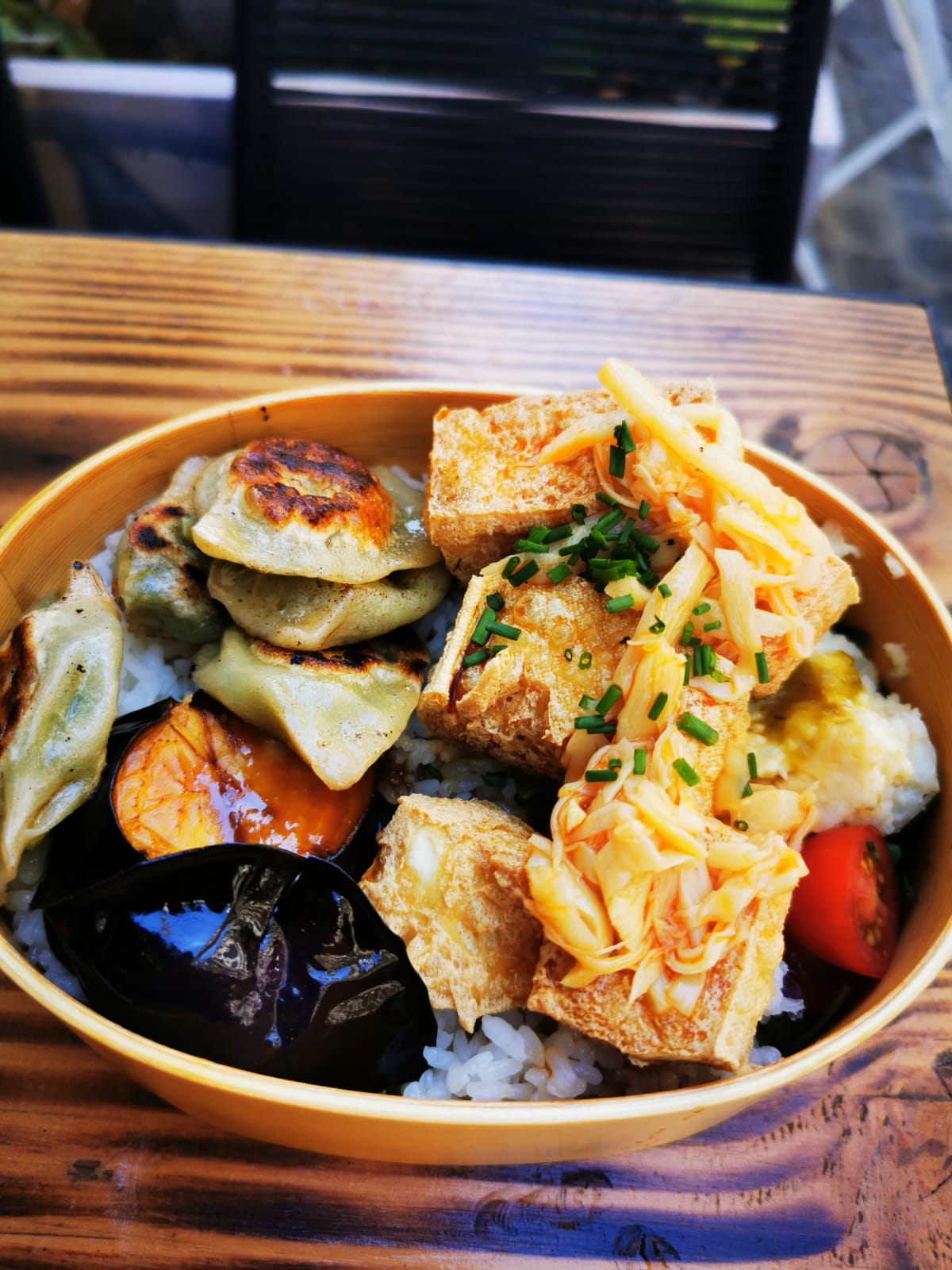 Recommandable !! Nous sommes allés manger et ils nous ont proposé un menu pour midi composé de riz, de légumes et de gyozas et vous pouviez choisir si vous le vouliez avec du poulet, du poulpe ou du takoyaki. Bon rapport quantité-qualité-prix. Et très riche !