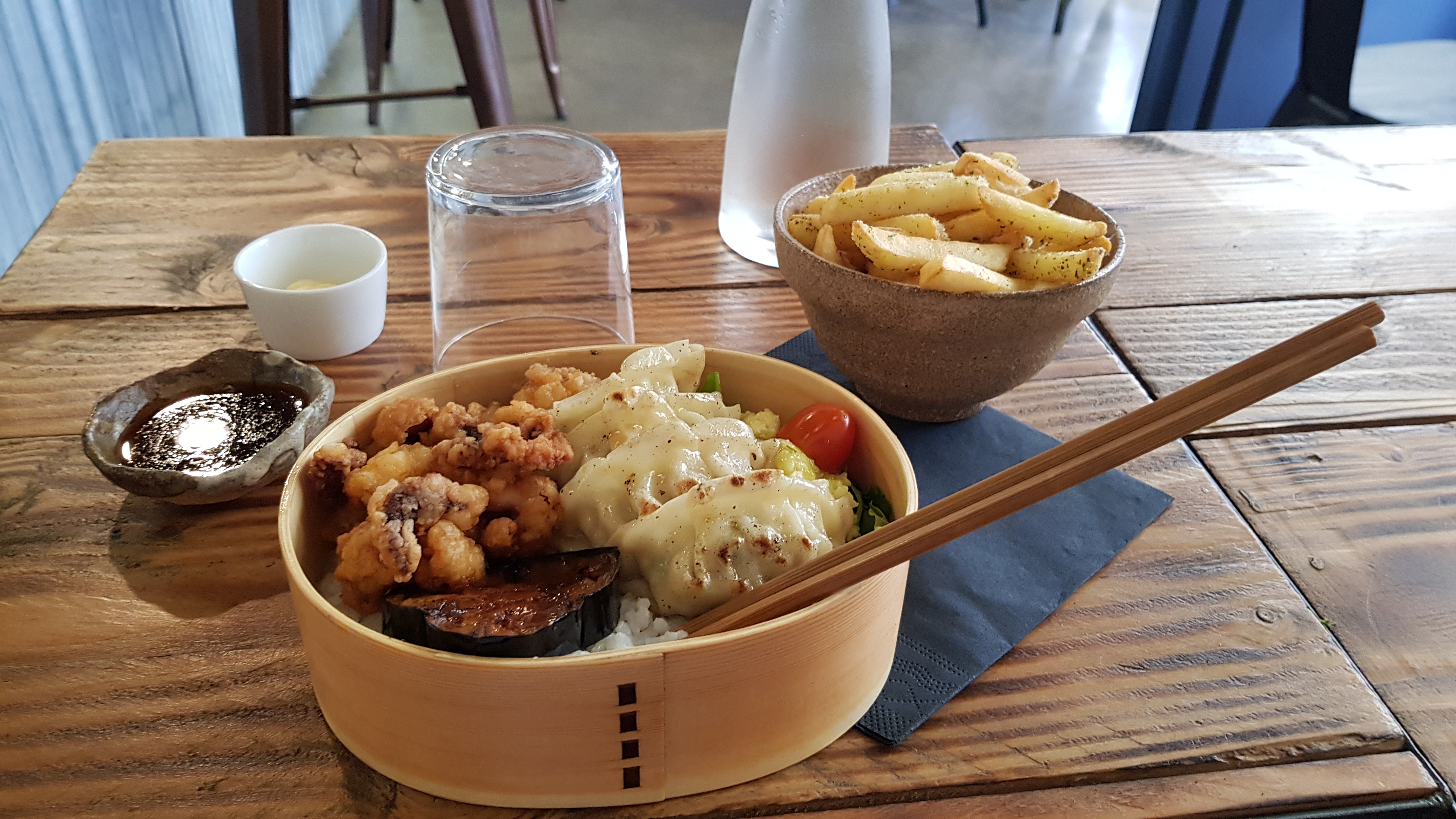 Très bon accueil, plats originaux mais dans le bento il y a surtout du riz !