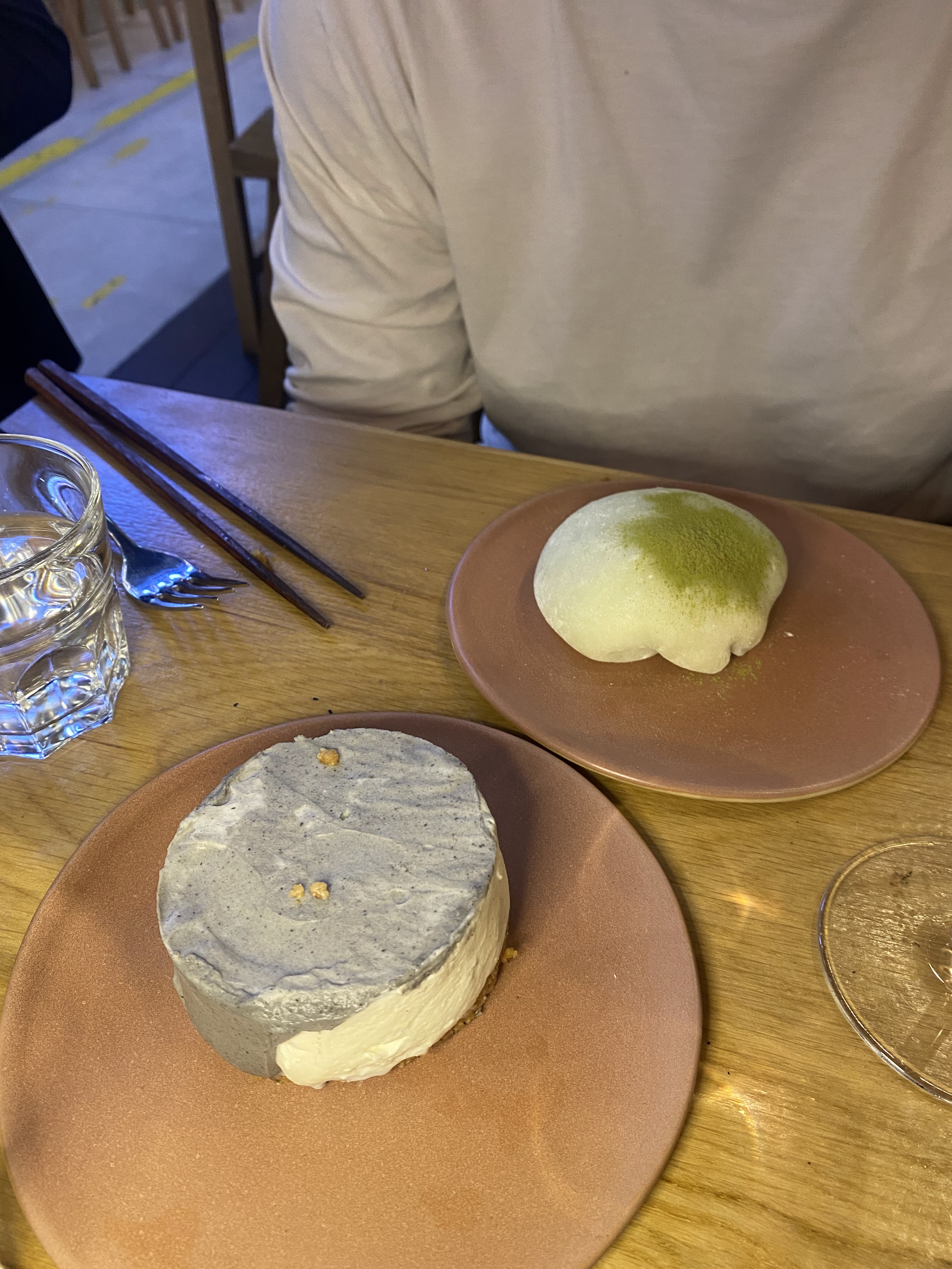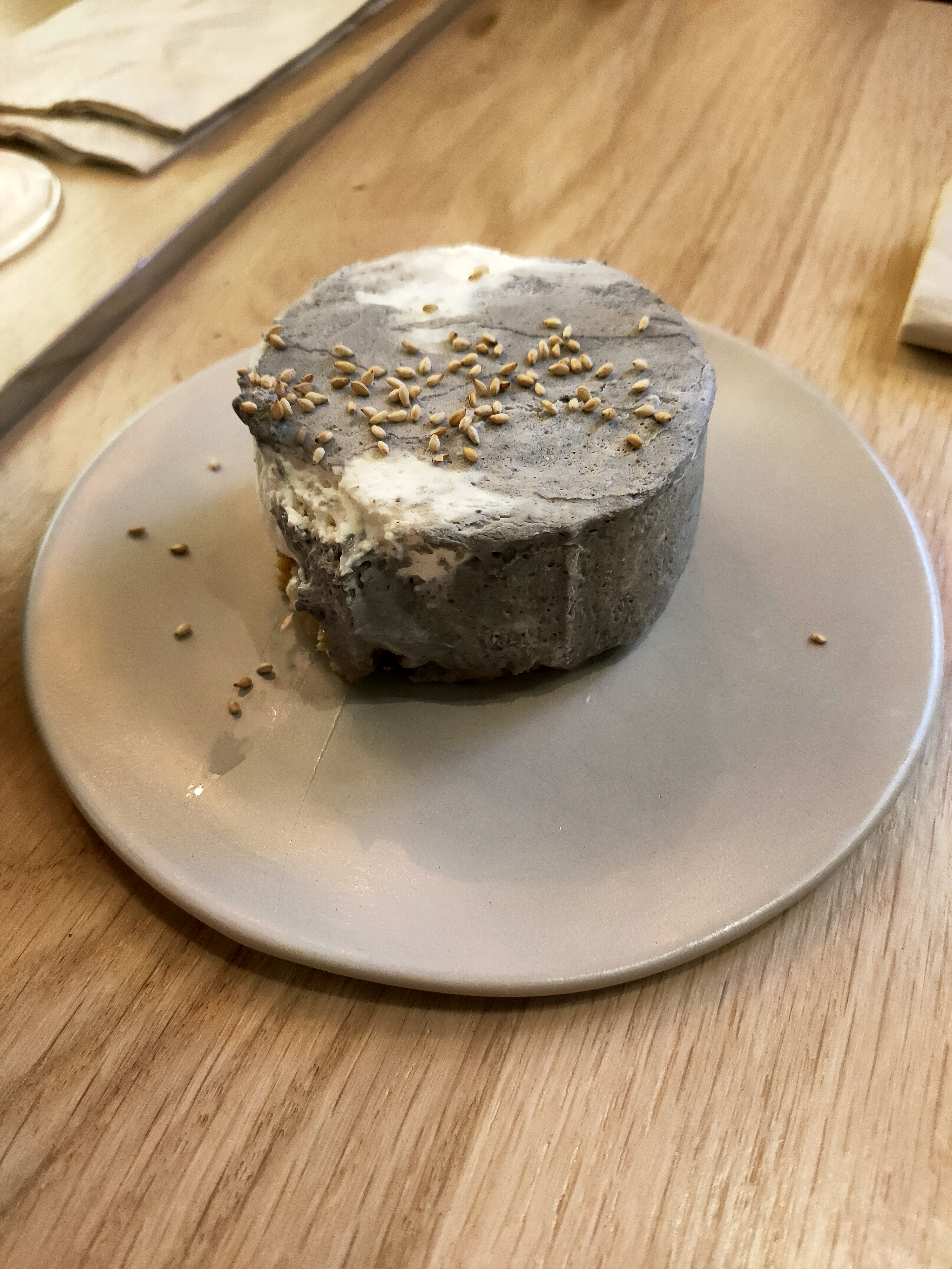 Mon premier ramen donc je peux pas vraiment comparer mais c’était très bon, Dommage que l’œuf soit en supplément :( je m’attendais à une saveur plus prononcé. Le mochi maison était très bon, bien qu’un peu trop gros et cher. Le cheesecake au sésames noirs et quant à lui validé :) Je n’ai pas compris pourquoi ils ont installé un couple sur une table collé à la nôtre alors que la salle était vide :(
