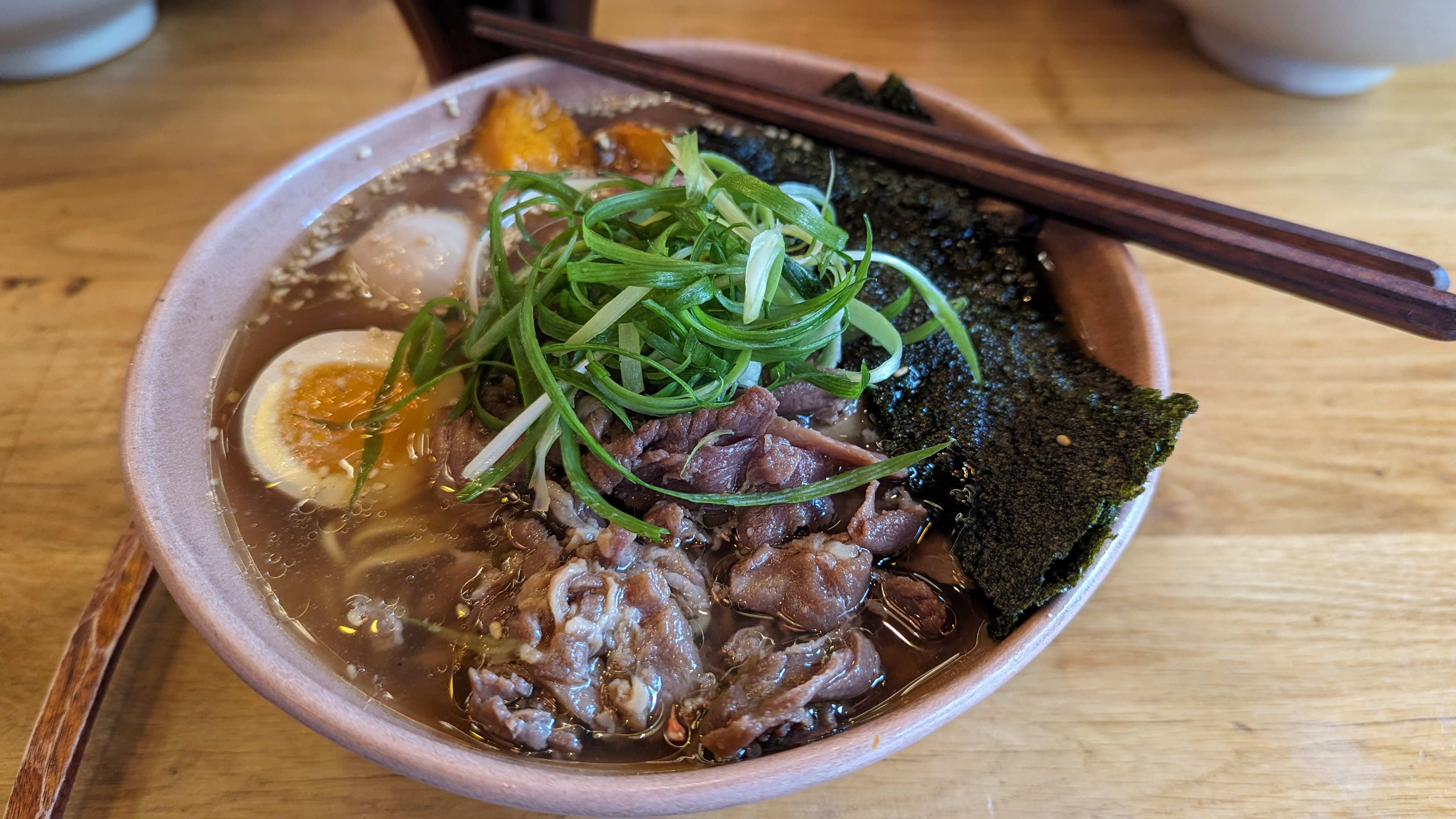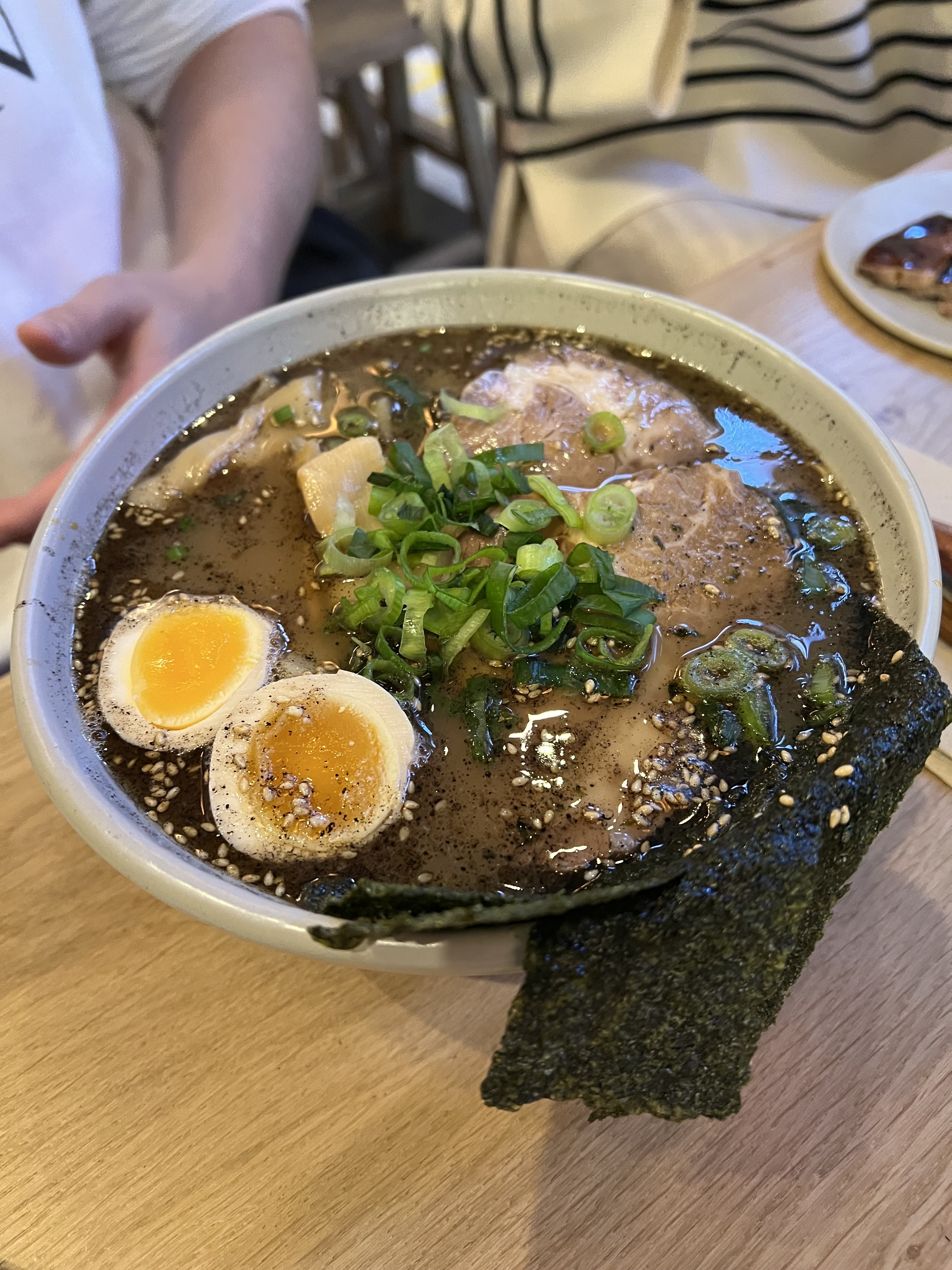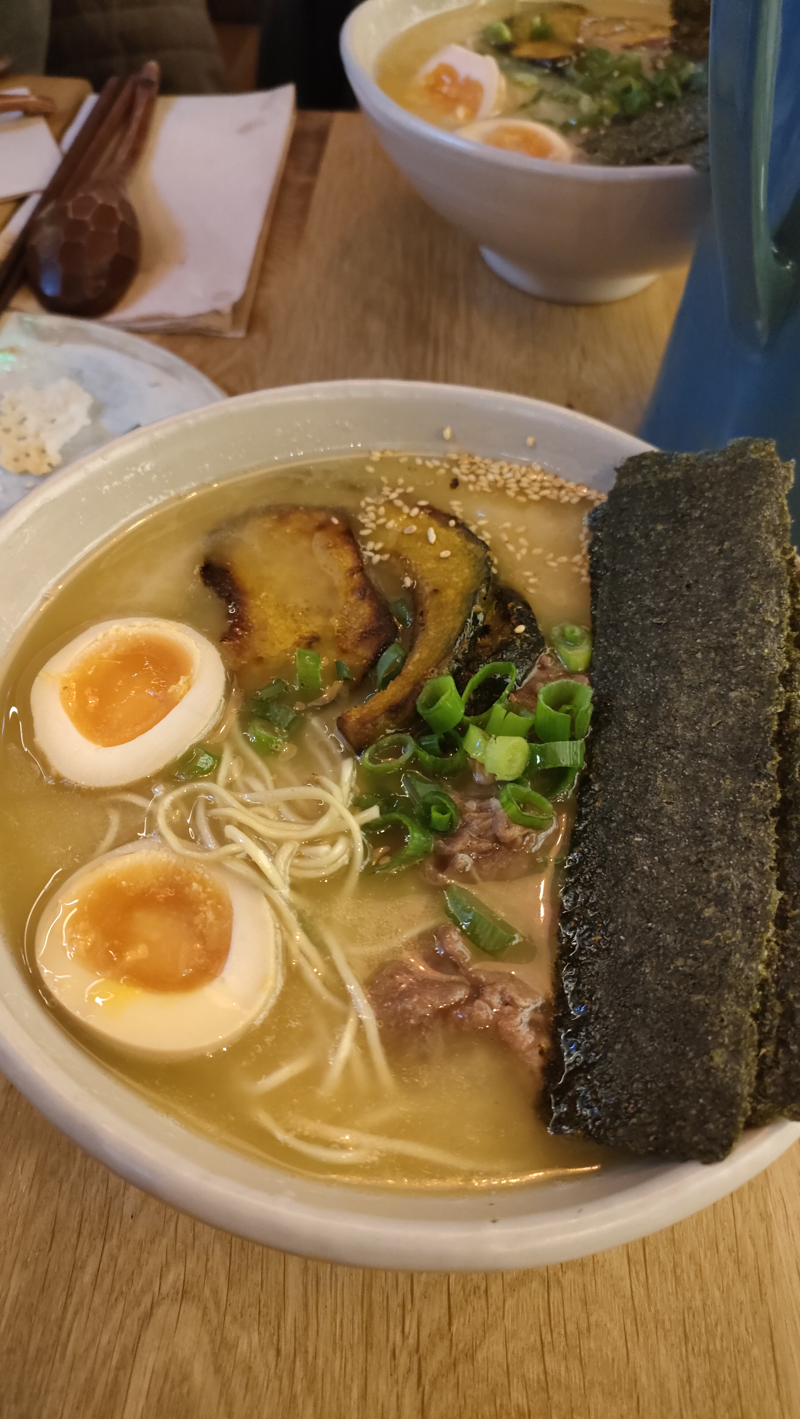 L'endroit est superbement décoré (on s'attendait à une ambiance un peu moins lumineuse comme sur les photos de présentation du restaurant mais cela reste très joli). Ramen excellent. C'est dommage que l'oeuf ne soit pas compris dans le version basique, je n'y avais pas fait attention à la commande. Le personnel a été super sympa merci à eux !