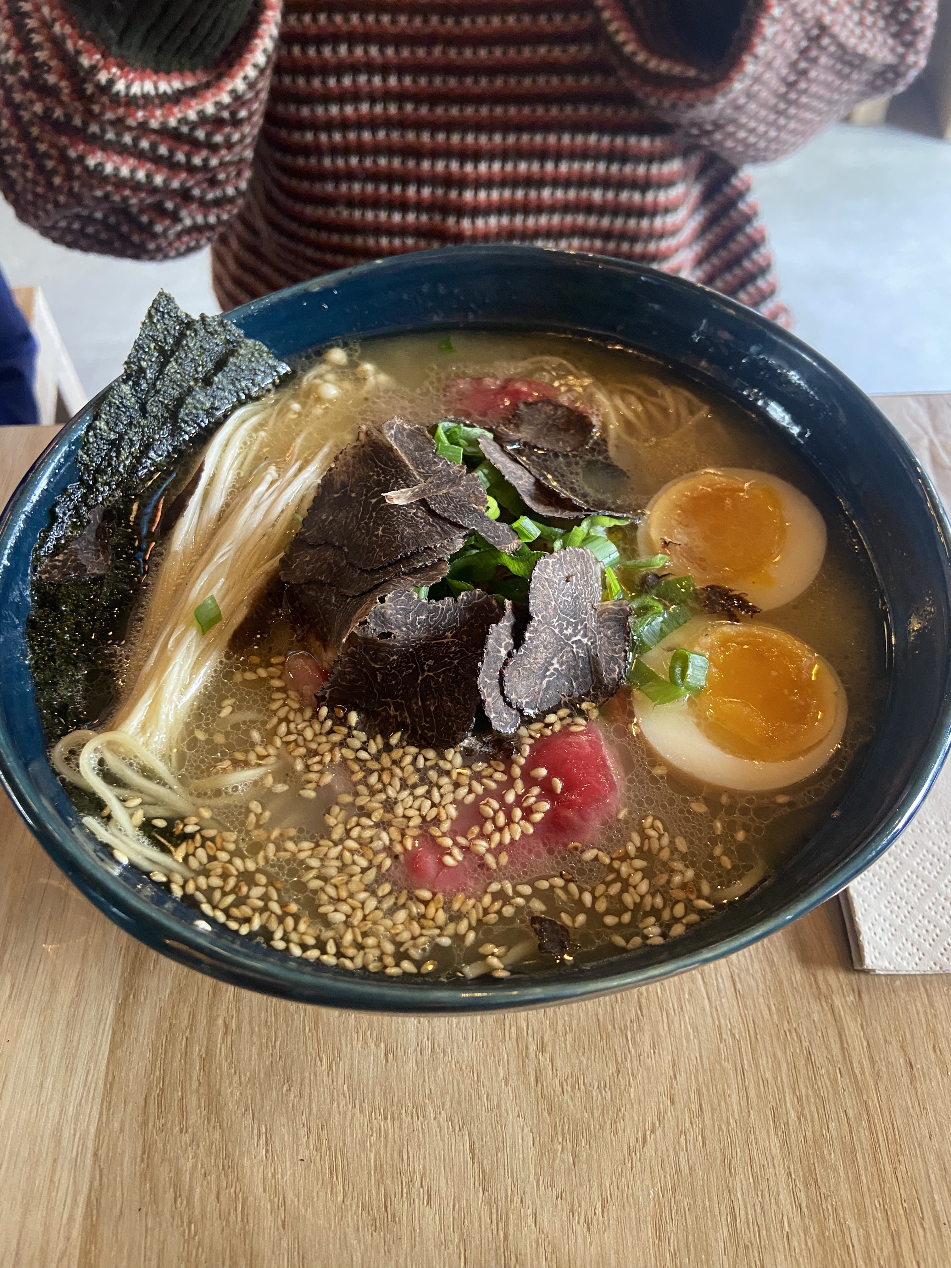 J’ai dégusté le ramen signature a la truffe: quel régal. Accompagné d’un Saké a la prune.