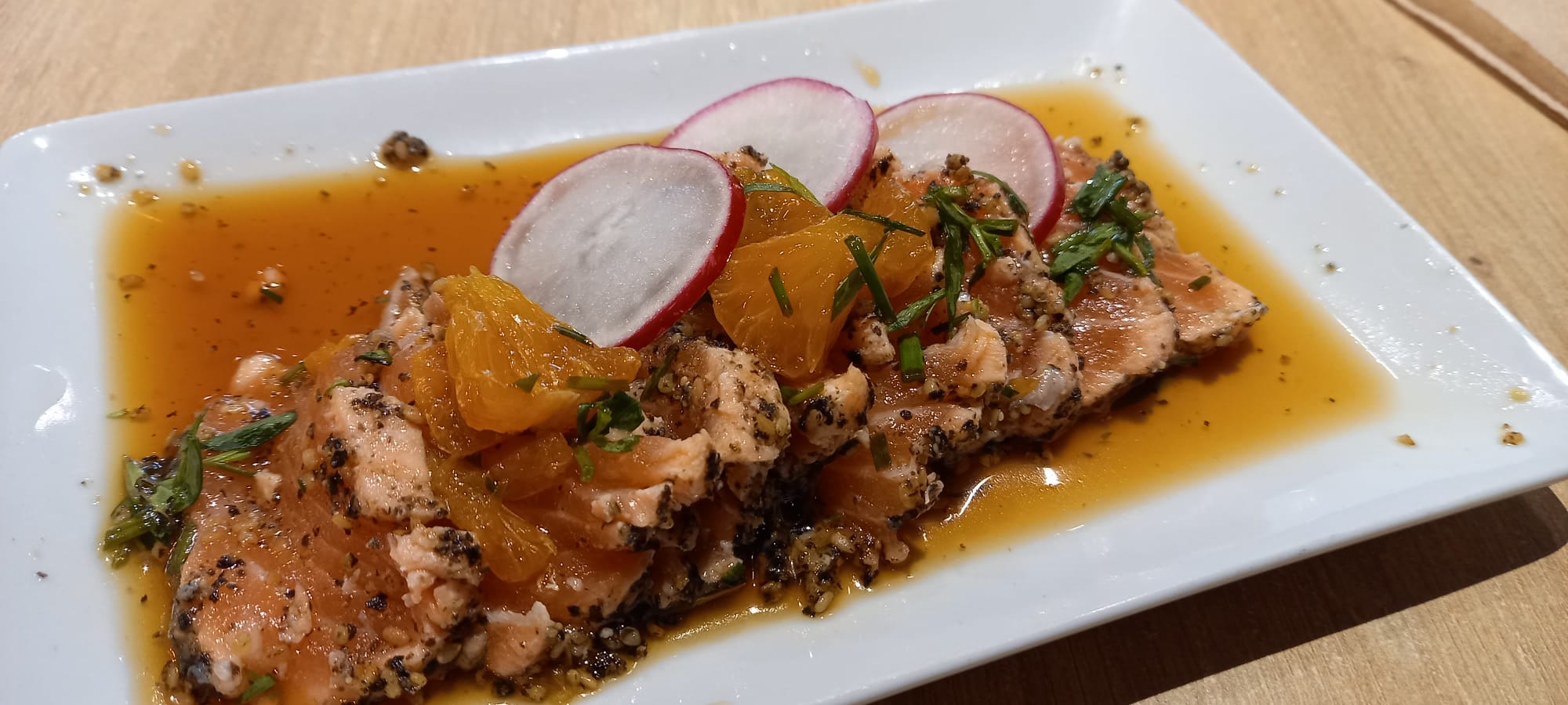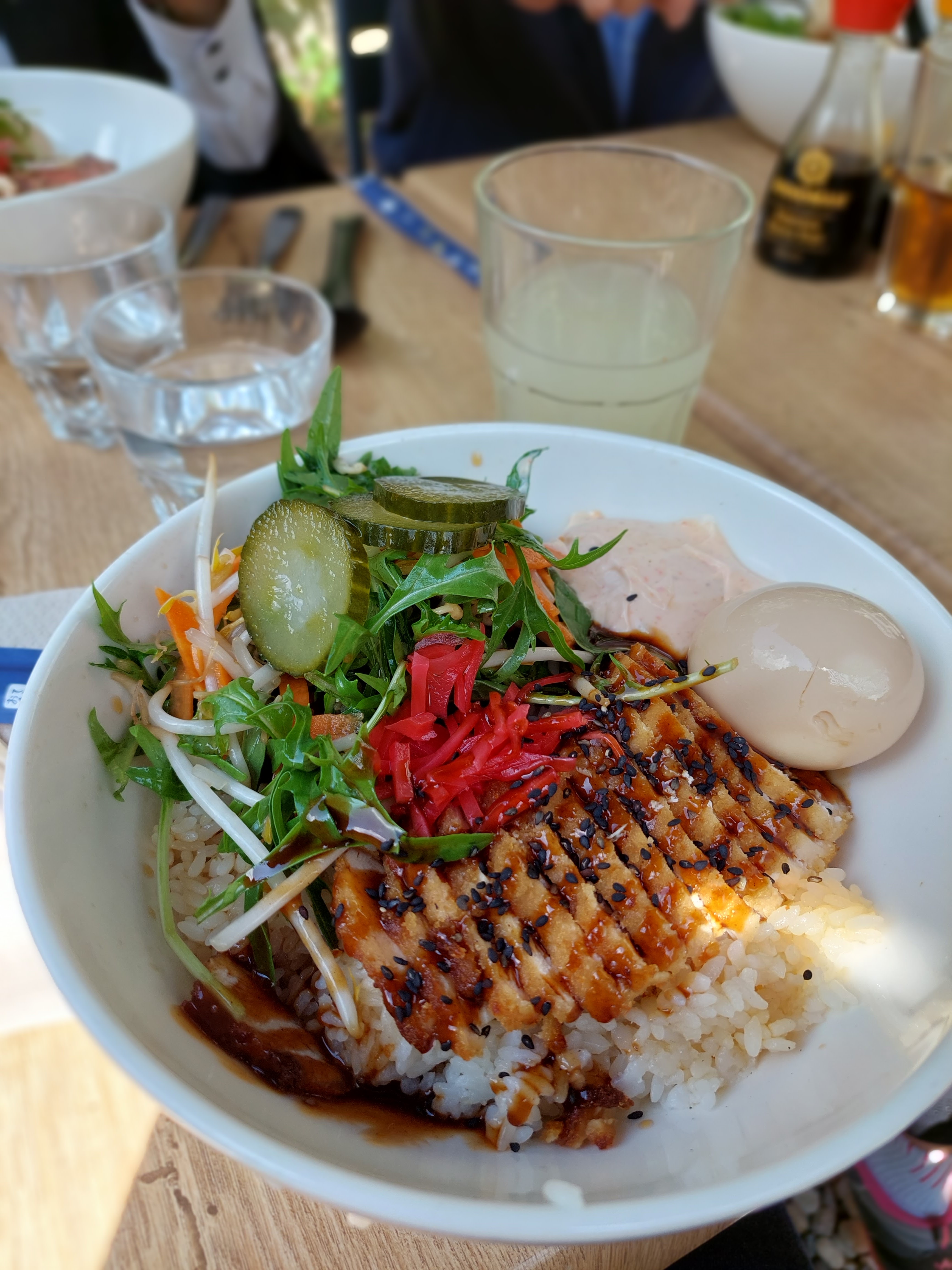 J’ai testé leur Donburi au saumon tataki et œuf mariné. je reconnais la fraîcheur des ingrédients et je trouve que le plat est généreux et assez bon. Pour moi, c’est de la cuisine Fusion asiatique bien réussie. Traditionnellement, le donburi est un plat chaud et avec de la viande ou du poisson cuit et de l’omelette mi cuit par dessus sur le riz. Je reviendrais car l’endroit est aussi agréable.