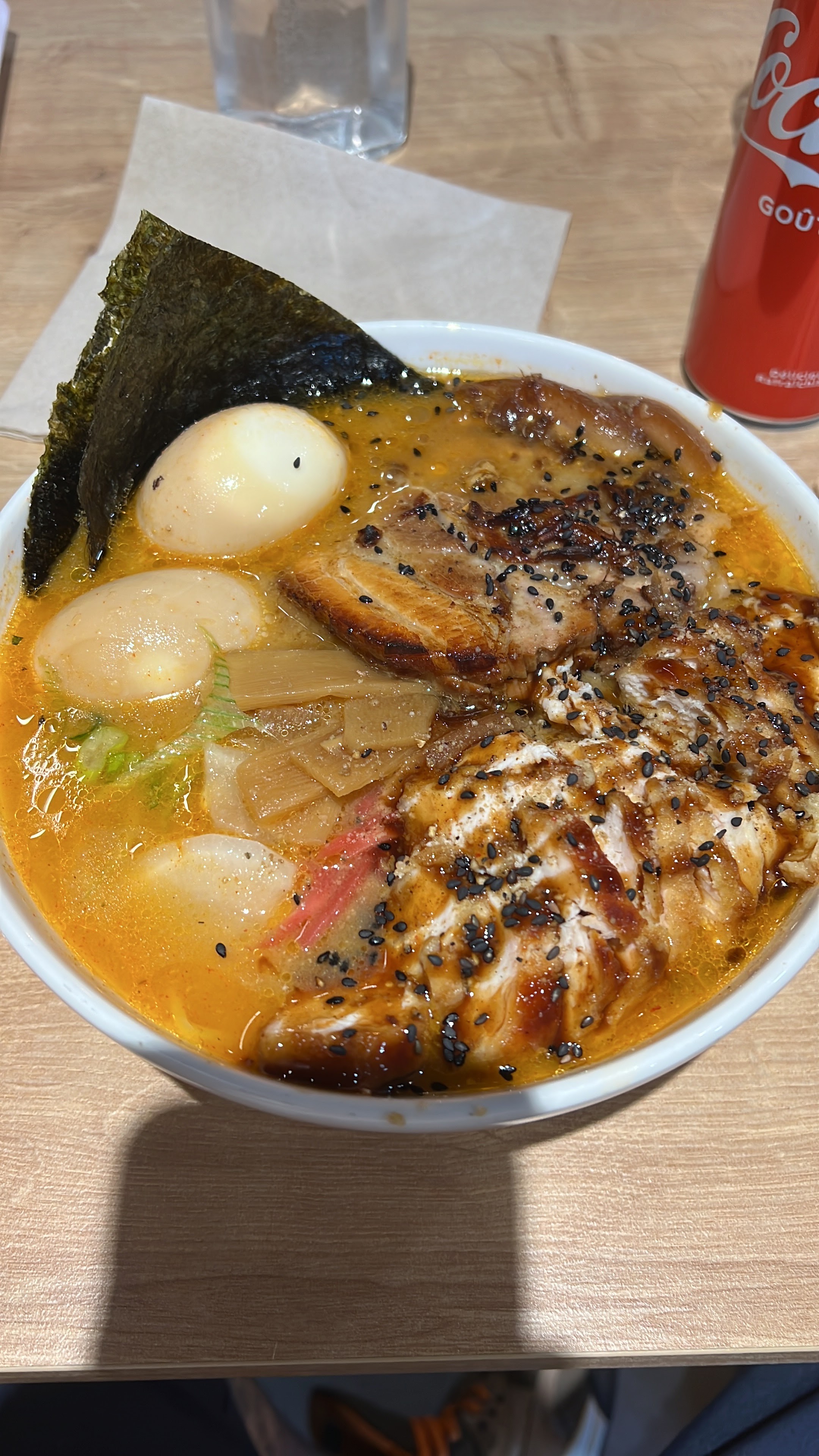 Lieu très sympa pour manger un bon ramen. Prix très abordables. Plats copieux et savoureux. Si je devais juste dire qqchose pour améliorer la chose c'est que ça manquait un peu de chaleur, mais rien de bien grave. Les mochis sont à tomber. Le service très pro et efficace.