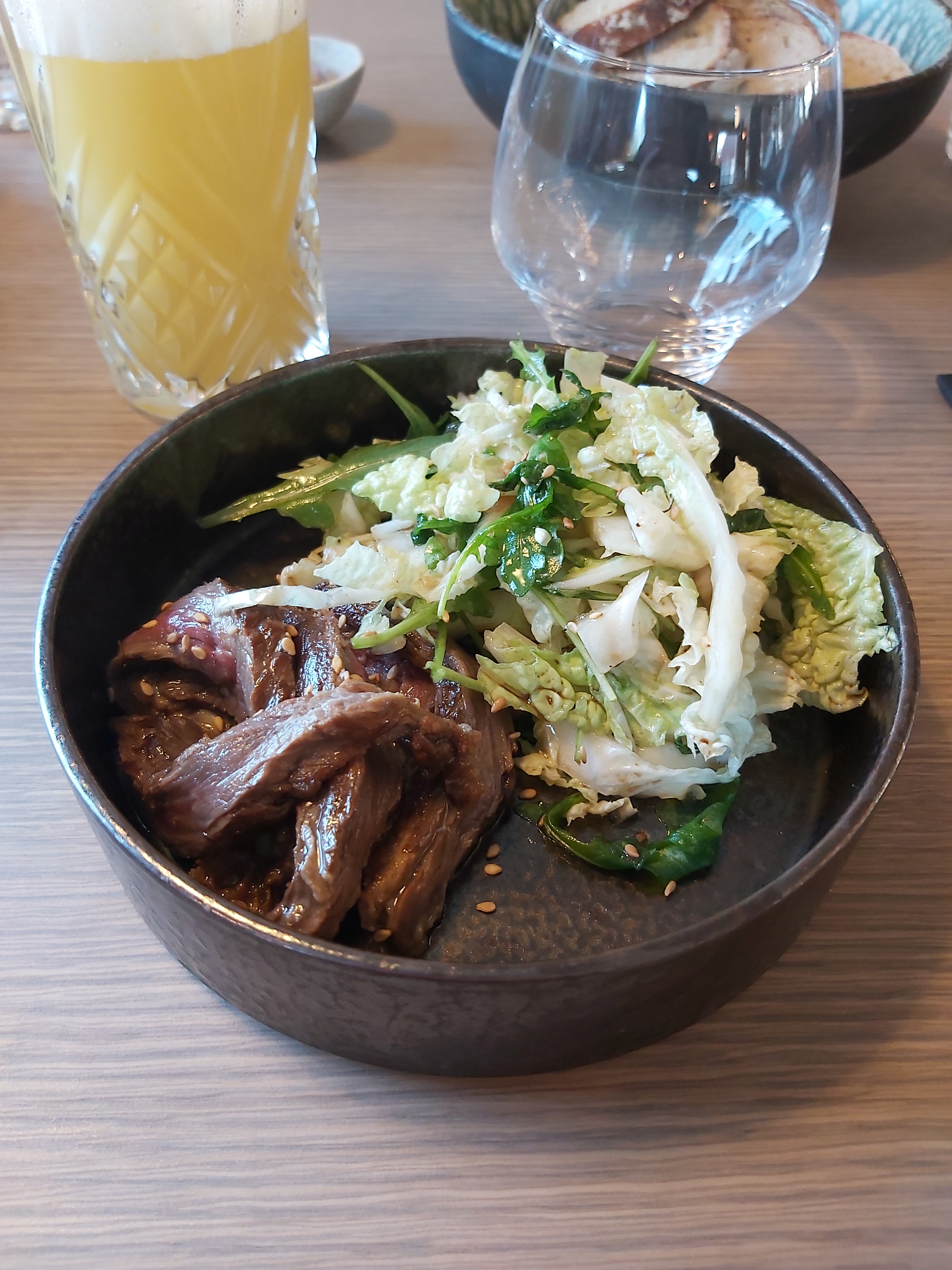 Le cadre est très sympa, que ce soit à l'intérieur où la déco est de très bon goût ou en terrasse. Le personnel est très sympathique et aux petits soins. Ce que nous avons mangé a plu à tout le monde. La viande est de bonne qualité. Nous sommes en revanche deçu du changement de carte. Nous étions contents de venir manger des plats originaux, plus elaborés et découvrir des saveurs. Actuellement, la carte correspond à celle d'une brasserie. Rien d'original. En resumé ,c'est bon mais ça a perdu de son originalité. Dommage !