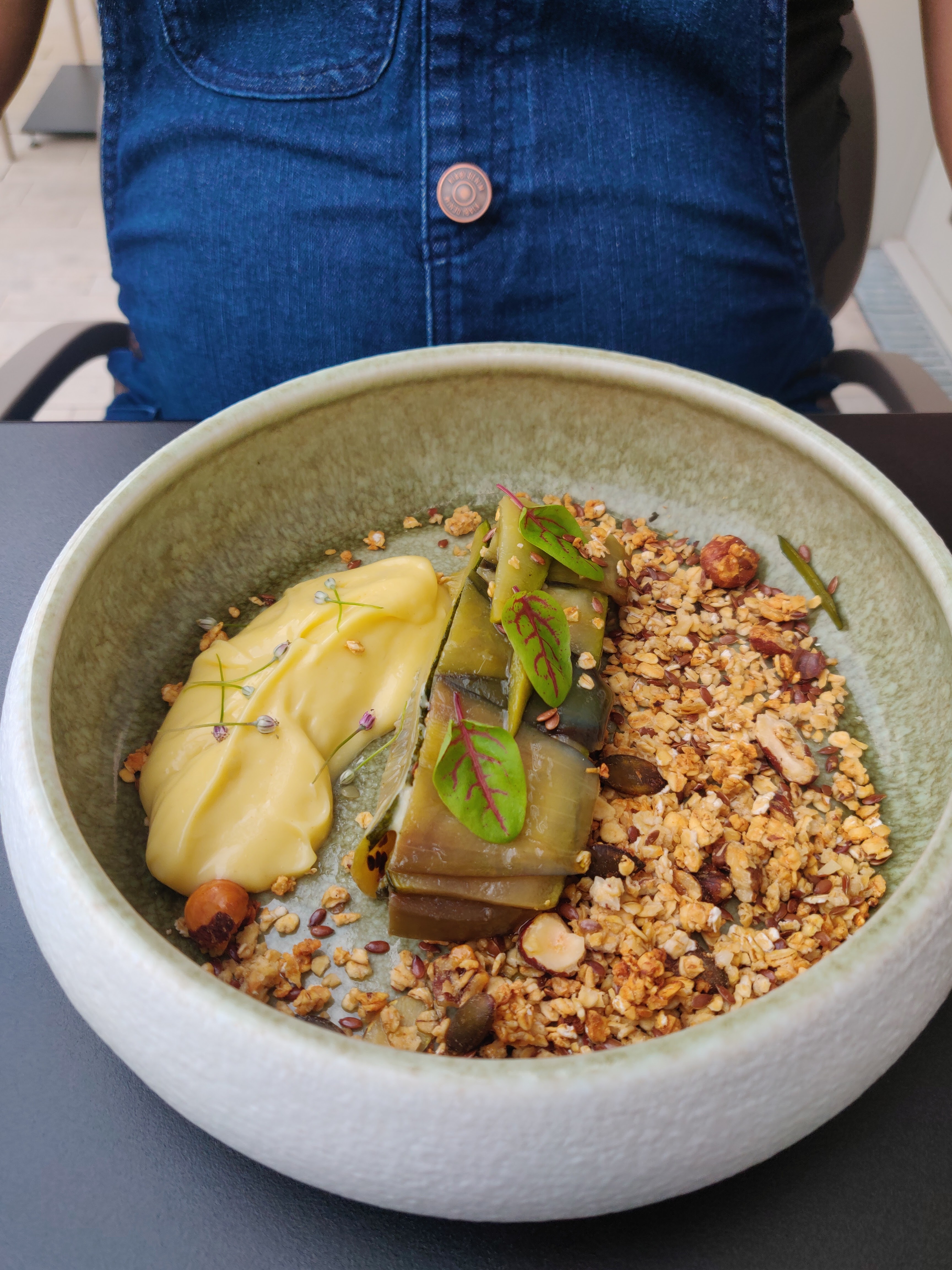 Ce midi j ai pris un risotto de sarrazin noisette potiron. Ce n' était pas du tout ce qu on attend d un risotto. On peut revisiter le risotto. Pas de soucis mais la c était un genre de bulgour nature avec des noisettes et de la roquette. J ai jamais mangé quelque chose d aussi fade. Tout le goût était dans la roquette. On peut attendre d un plat un minimum de goût, de saveur, de travail. Ici c était le néant :(