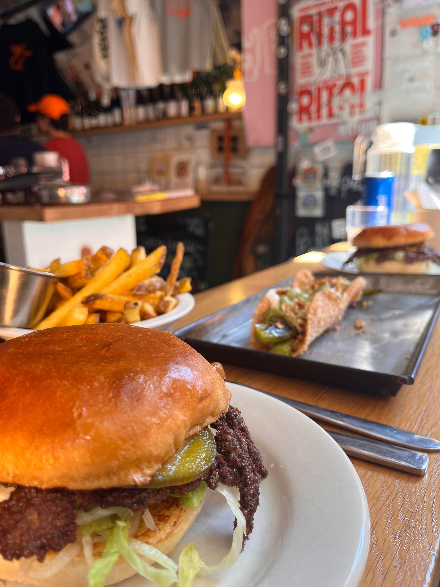 La street food n’a jamais autant bien porté son nom dans ce petit restau à burger dont les tables sont de par et d’autre de la rue. Le burger Nashville est génial, du morceau de poulet (vrai blanc de poulet) croustillant à souhait avec sa panure au pain toasté et ses différents accompagnements. Tous les produits semblent de qualité et préparés avec soin. Un regret ne pas avoir tester les joues de cochons (je reviendrai). Elles semblaient tout aussi exceptionnelles. Belle découverte!
