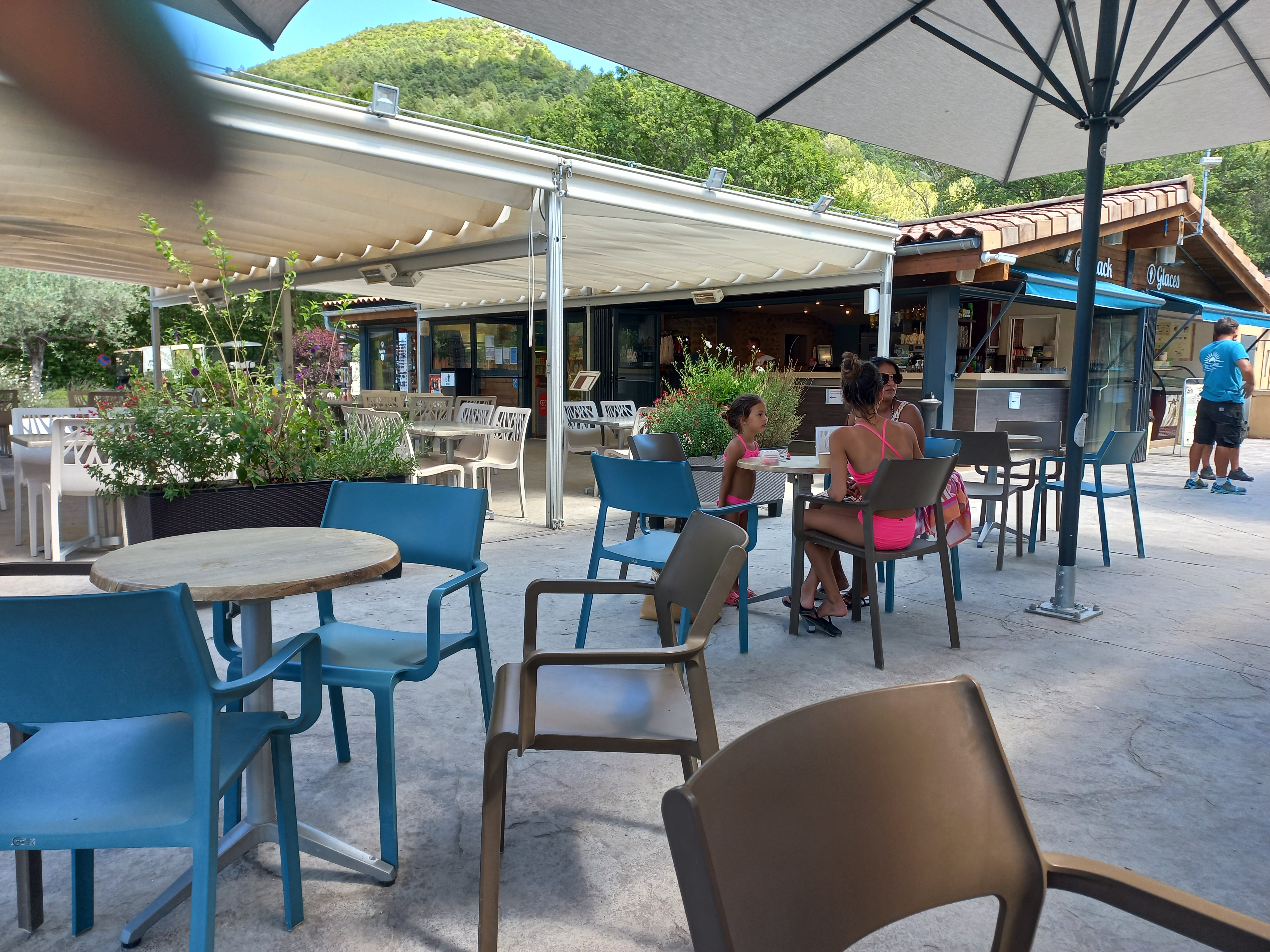 Très bon acceuil, rapide ( après plusieurs heures de route c'est super appréciable idem pour le départ). Le personnel est souriant. Un grand merci pour son implication au jeune barman ( désolé pour le prénom) et son acceuil. Un peu moins pour son collègue barbu qui nous a mis mal à l'aise ( moins souriant, sec dans ses réponses). Le chalet deves est très bien et offre une vue magnifique ( petit point négatif il manque des rangements). La ville de Nyons est à seulement 12mn en voiture on y trouve supermarché tabac.. et son superbe marché le jeudi matin. L'espace piscine est très joli et bien entretenu. Séjour ressourçant, reposant merci à l'équipe.