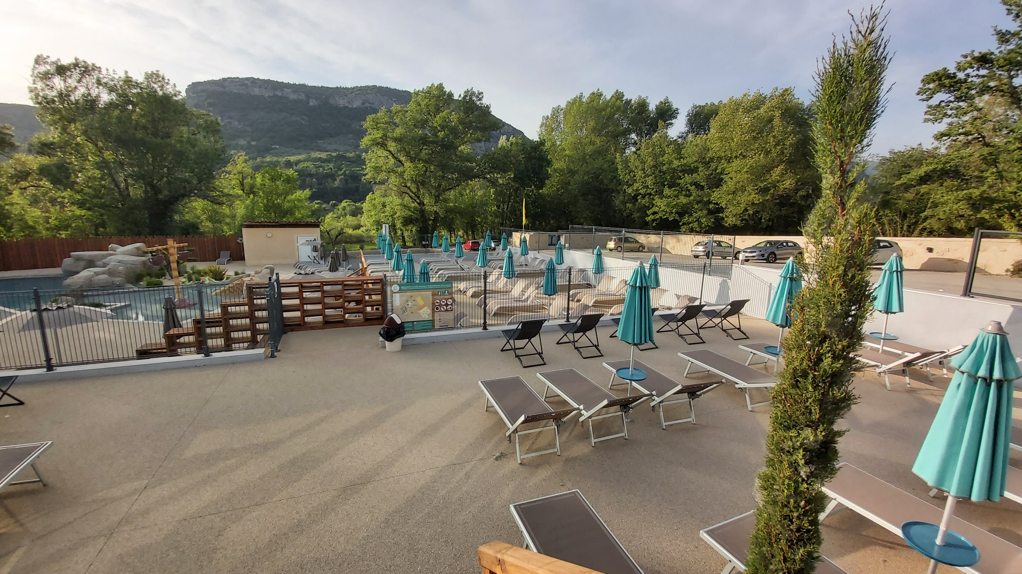 Cadre magnifique et jeux pour enfants sympa 👍 dommage qu'il manque un kiosque à journaux car il faut prendre sa voiture pour un journal et piscine petite pour les adultes ,difficile de nager un peu..