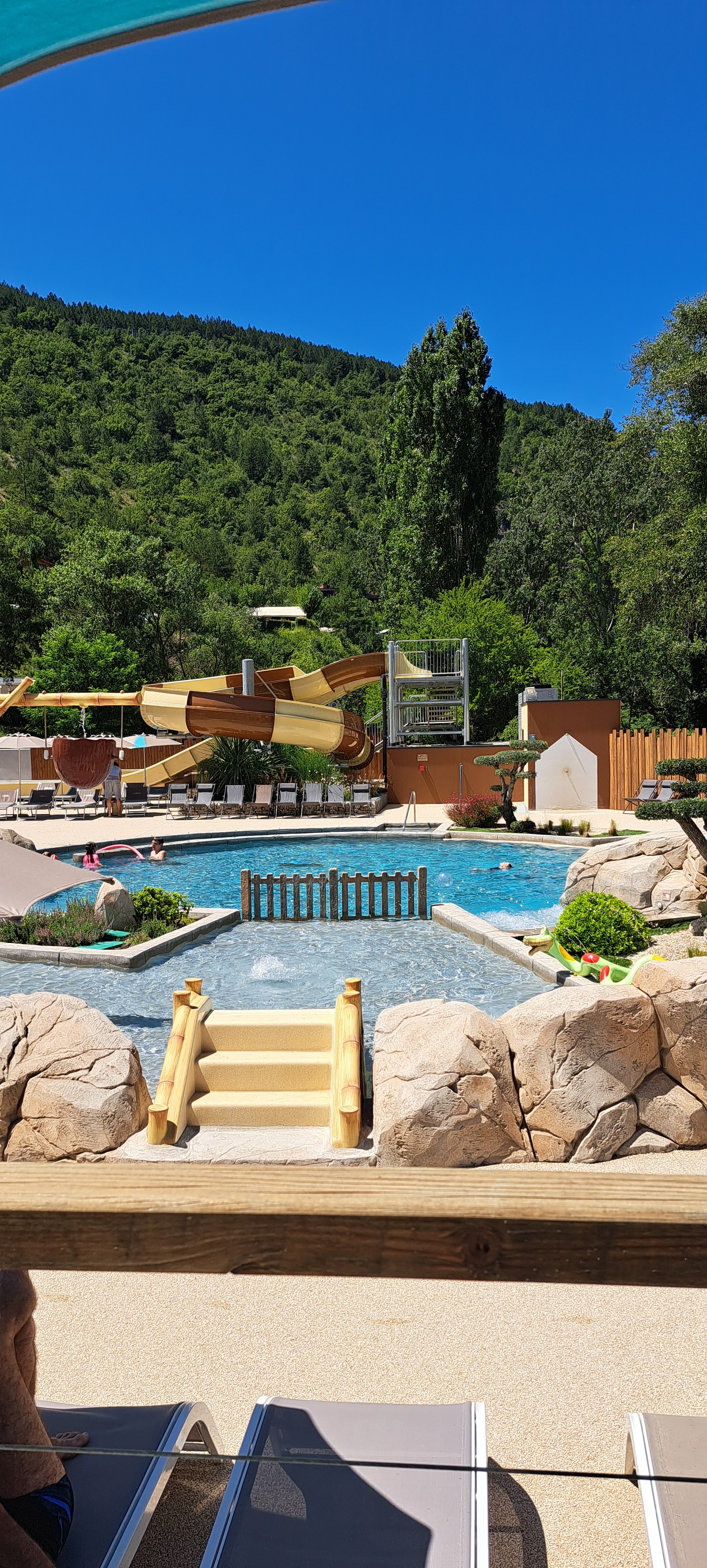 Cadre idéal, forêt/rivière. Piscine et toboggan suffisants pour détente et amusement en famille. Personnel sympathique. Je recommande et y reviendrai.