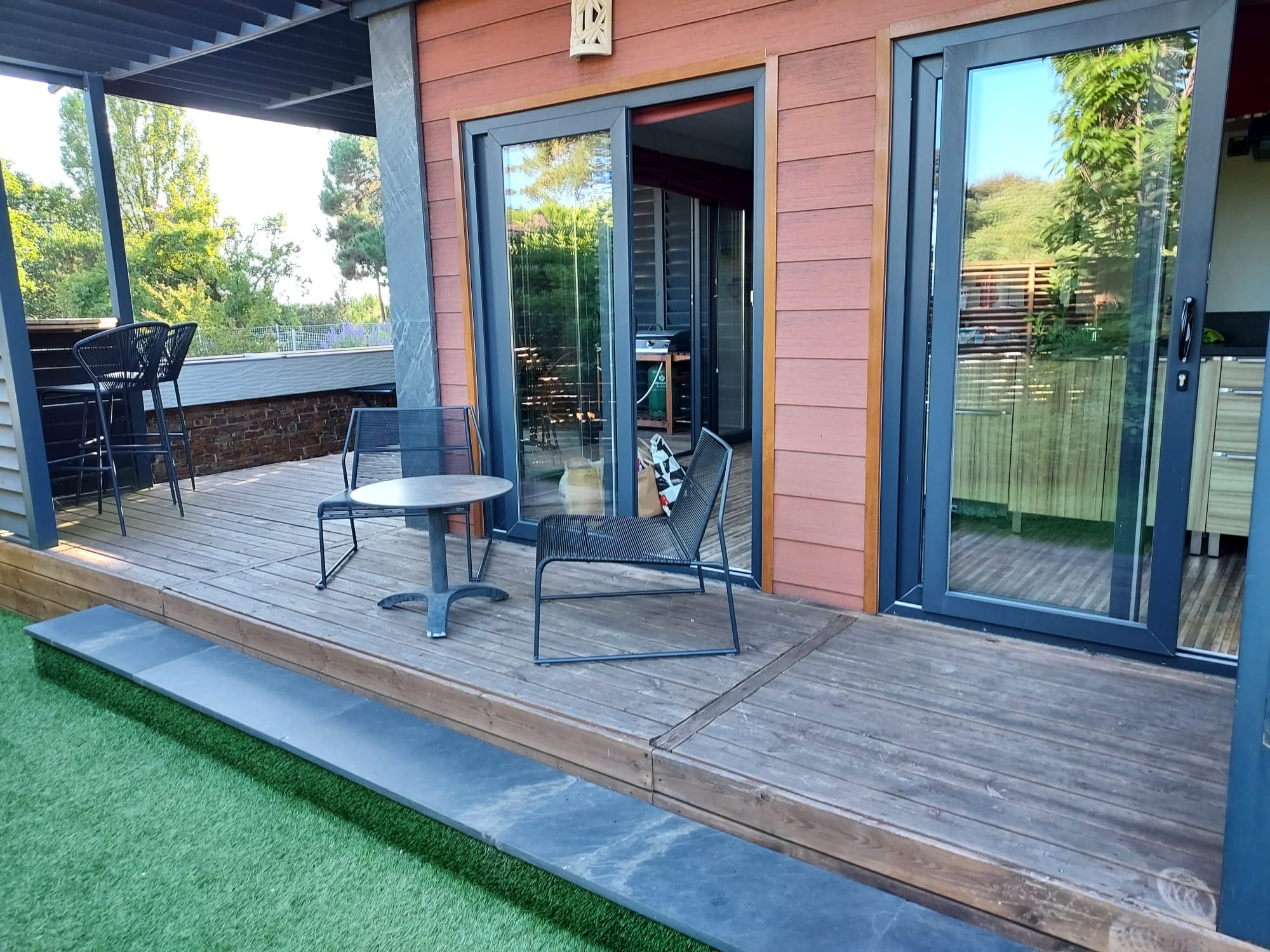 Super mobile home que cette Pagode avec son jacuzzi attenant . La semaine en haute saison n'est pas donnée mais en tout cas les prestations sont au rendez vous. Le mobile home est vaste, les espaces extérieurs autour de la pagode sont très bien pensés, la plancha parfaite pour recevoir des amis. La plupart des installations sont très récentes et le personnel très agréable. Bref un camping comme on les adore. La proximité avec le lac du Sanguinet fait qu'on peut difficilement faire mieux entre piscine et lac.