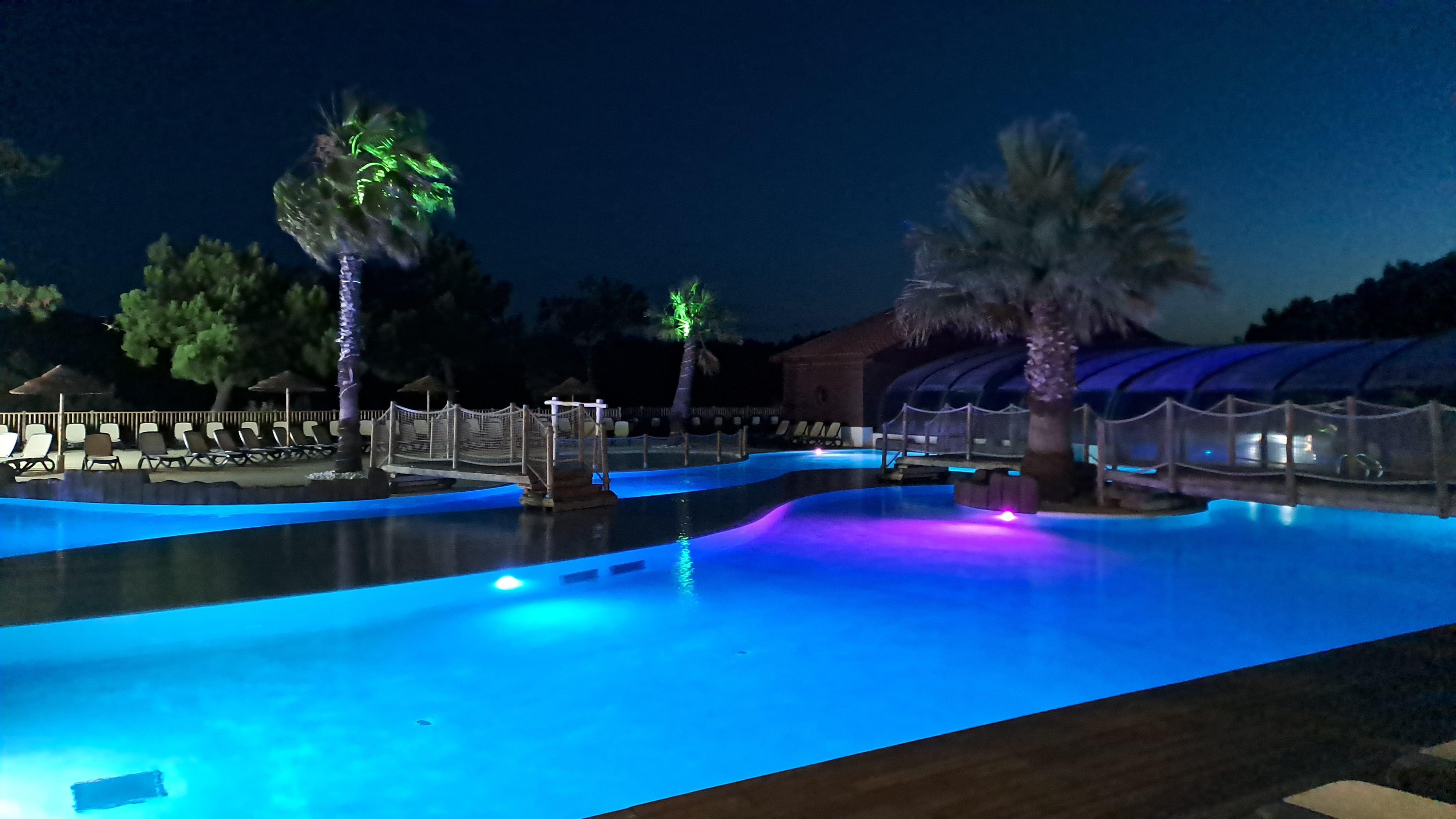Nous avons passé 2 semaines dans ce camping en Aout 2022 : 2 adultes et 2 ados. Le cadre est sympa car proche de l'océan (compter 1.2 kms pour accéder à une plage surveillée et non 500 m comme indiqué sur le site), proche des pistes cyclables et la station balnéaire de Contis est sympa aussi avec son phare. Nous avons bien aimé le bar de la piscine, le petit casino et quelques animations du soir (les concerts surtout) Mais, pour un camping 5* nous nous attendions carrément à mieux au niveau des locations ! j'ai pris la même prestation que sur un autre Yelloh village 5* mais je n'ai clairement pas retrouvé la même chose : logement vieillissant, équipement plus que minimaliste, et contrairement à ce que j'ai lu dans un commentaire, nous sommes vraiment collés les uns aux autres (on le voit bien sur une de mes photos jointes), étonnant pour 5* et pour le prix payé, vraiment décevant. Les toboggans commencent à être vieillissant aussi, aucune réelle surveillance à la piscine malgré la présence de 2 personnes (elles sont juste là quoi) et enfin, un truc que je n'avais jamais vu avant c'est l'autorisation des bouées à la piscine : déjà nous sommes nombreux mais quand chacun ramène sa bouée c'est à dire ; un flamand rose, une licorne, une banane etc. … je vous laisse imaginer le bazar dans l'eau ! Je reviendrai dans la région mais pas dans ce camping car comparé à d'autres campings, je le trouve trop cher pour la prestation fournie