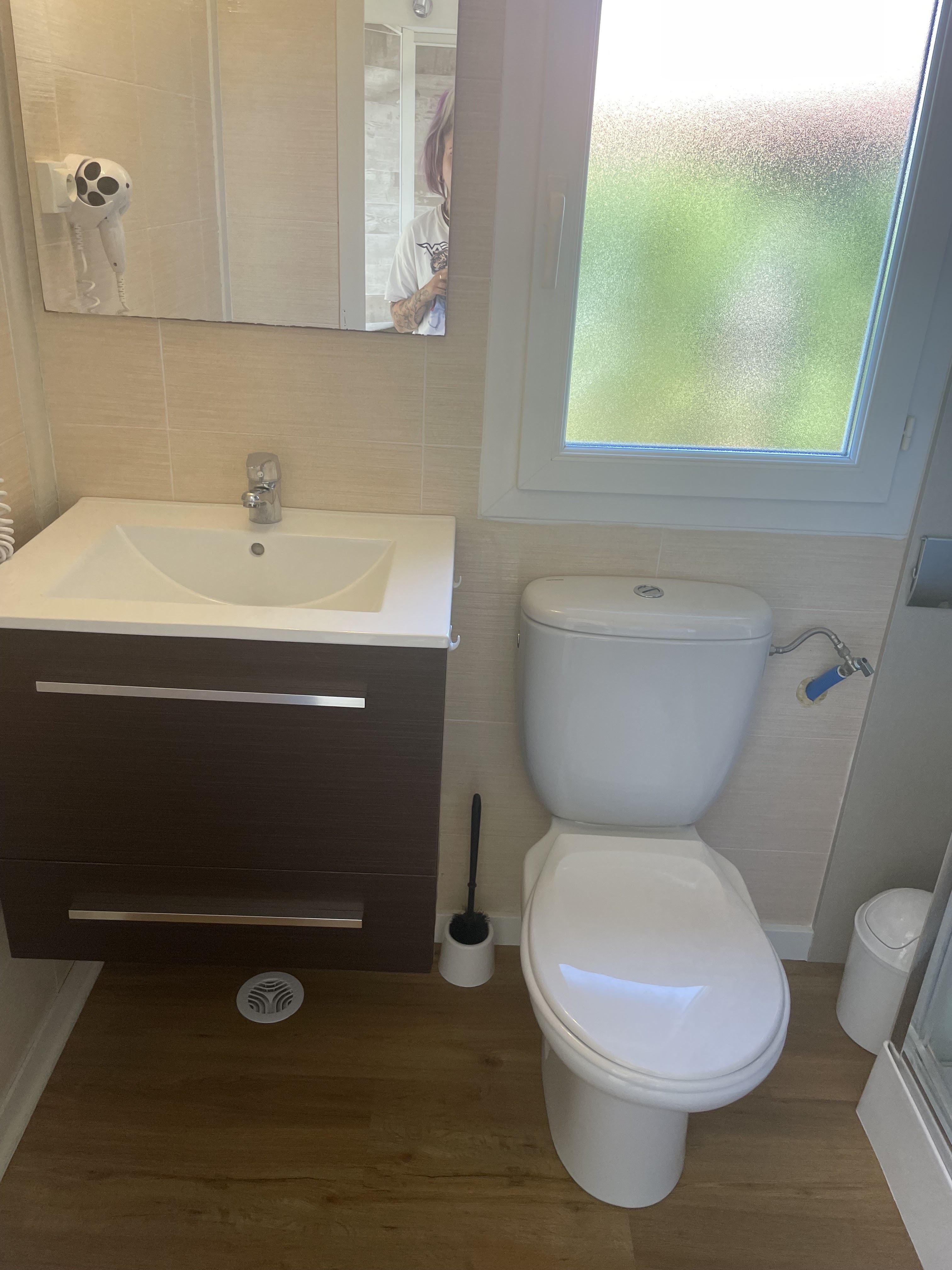 Vacances très agréables, personnel sympathique. Le chalet était bien même si les murs à l'intérieur faisaient un peu formica#🤣. C'était propre, la cuisine et la salle de bain top, très bonne literie. Dommage qu'il n'y ait pas de chevet. A la salle de bain, je comprends le robinet qui s'allume à déclenchement, cela fait des économies d'eau et pas de gaspillage,mais parfois un peu agaçant. Même chose pour la douche, pas toujours pratique d'appuyer 5 fois sur le bouton mais là aussi, je comprends parfaitement le but. On reste moins longtemps sous la douche 🤣. Animation agréable. Piscine couverte et température de l'eau top. Si faisable, nous reviendrons. La couverture wifi était bonne. Camping bien situé, proche de la plage et des restaurants. 👍