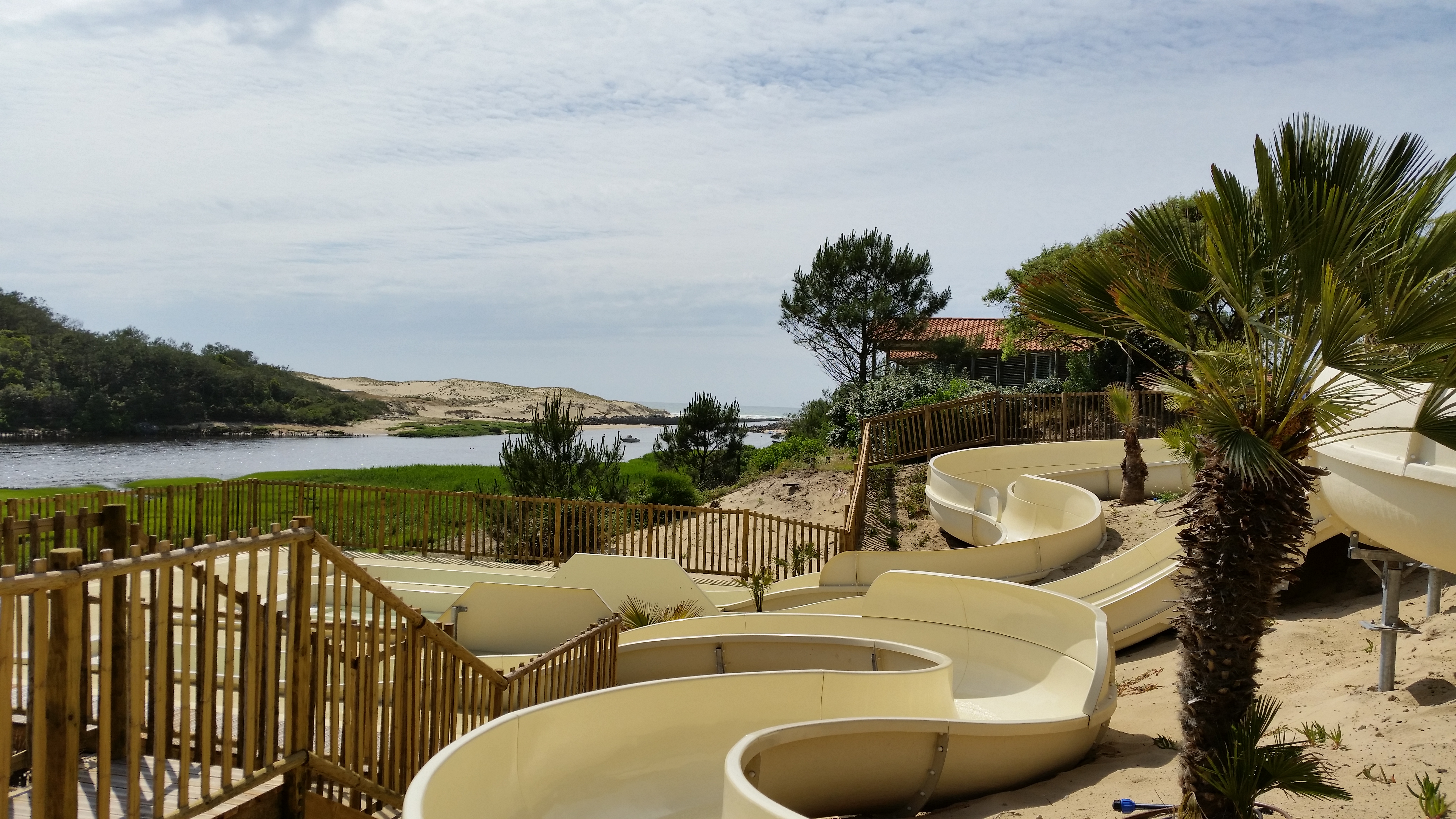 Camping familial très bien équipé. Privilégiez la catégorie Rapihome avec vue sur le fleuve sans vis à vis confortable et tout équipé. Grand parc aquatique avec espace toboggan un peu à l'écart. Supérette restaurant.... Bref tout y est. Seul petit bémol un tout petit peu loin de l'océan pour des personnes souffrant des membres inférieurs mais uniquement pour ceux là largement compensé par la possibilité de louer des vélos électriques