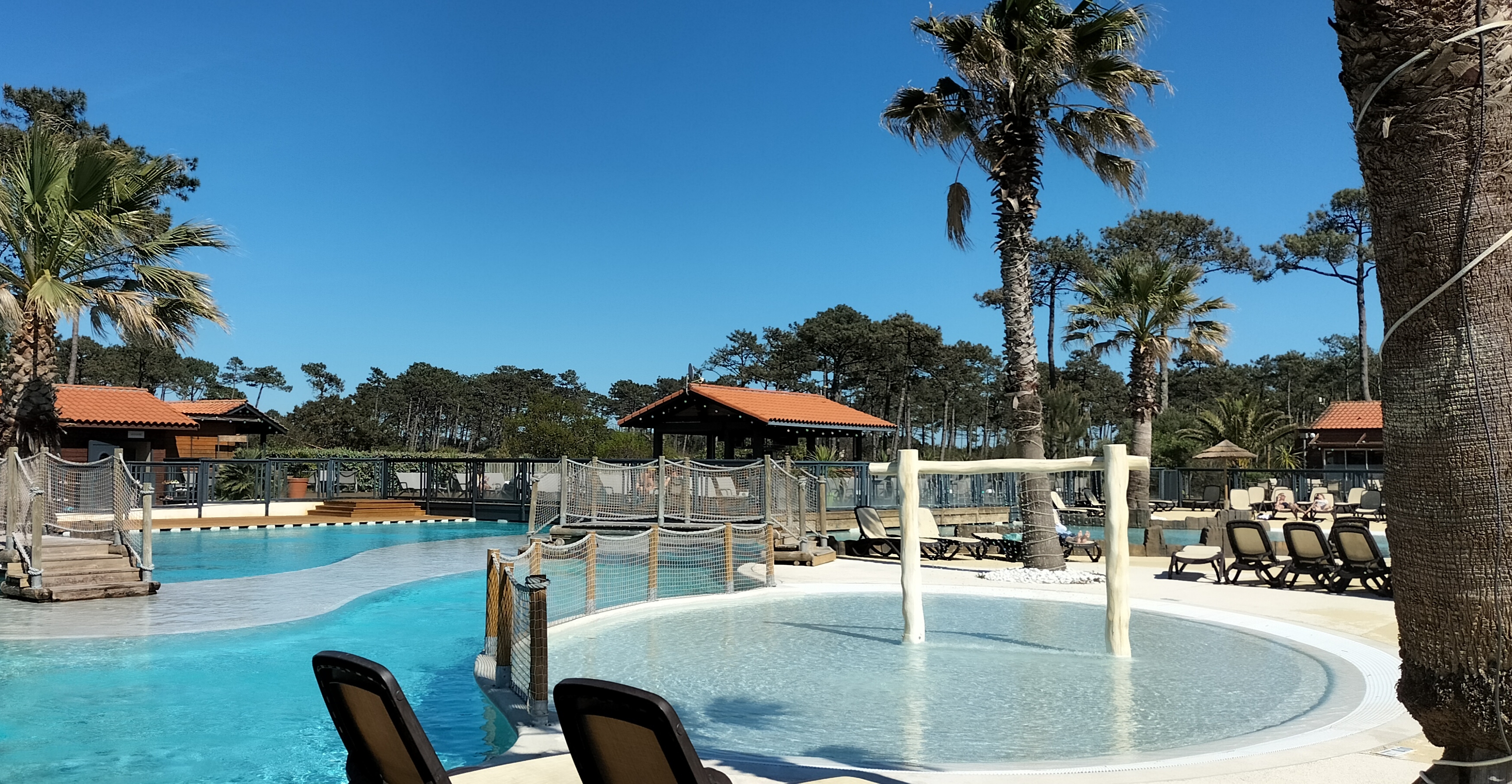 Bon camping, mais un gros point négatif sur la sécurité inexistante au niveau de la piscine (intérieur/extérieur)! Les enfants grimpent sur le dôme de la piscine intérieur pour s’y jeter, des saltots au bord de l’eau, dans la pataugeoire les petits montent sur la structure (singe/noix de coco) alors qu’ils sont mouillés et sans surveillance. Sans parler des enfants qui se baignent avec leurs vêtements et leurs sac à dos sur le dos. Pas de MNS, très peu d’employés à surveiller la piscine. Nos enfants ne sont absolument pas en sécurités! Malgré le fait que nous soyons garant de nos enfants, Personne ne fait respecter les règles de sécurité au bord du bassin. Lorsque nous signalons aux personnelles leurs absence suite à un incident (enfant tomber en arrière tête contre sol) aucune réponse, ils nous ignorent! Pas de parasols pour mettre bebe à l’ombre, ni de transat disponibles tout au long de la journée puisque les gens les réservent dès le matin (des heures entières a coter de transats remplis de serviettes sans y voir une seule personne venir y bronzer). Nous ne reviendrons pas séjourner!