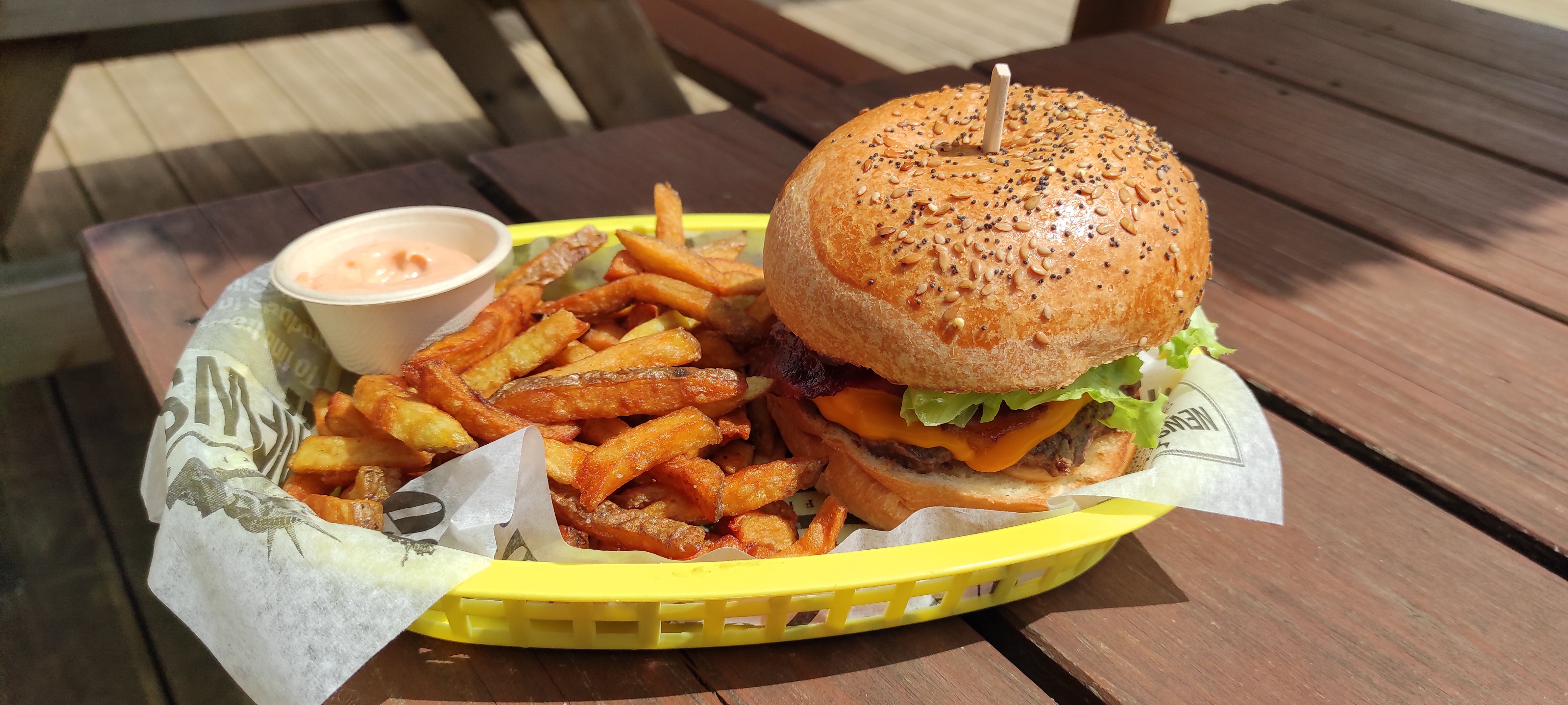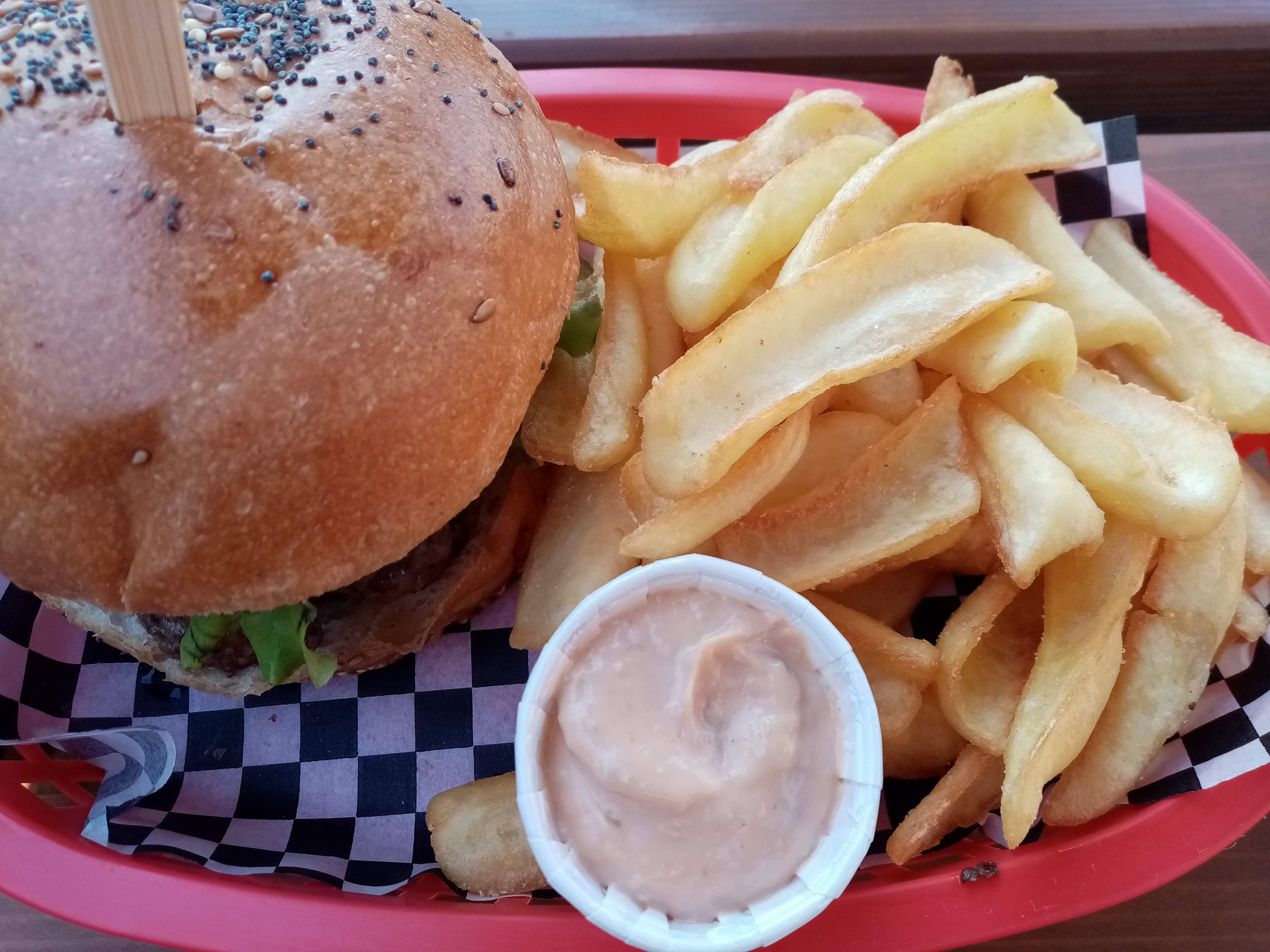 Frites et burgers excellents, pas très cher et il y a une belle terrasse. Par contre, pas de livraison à domicile. Mais ce n'est pas grave.