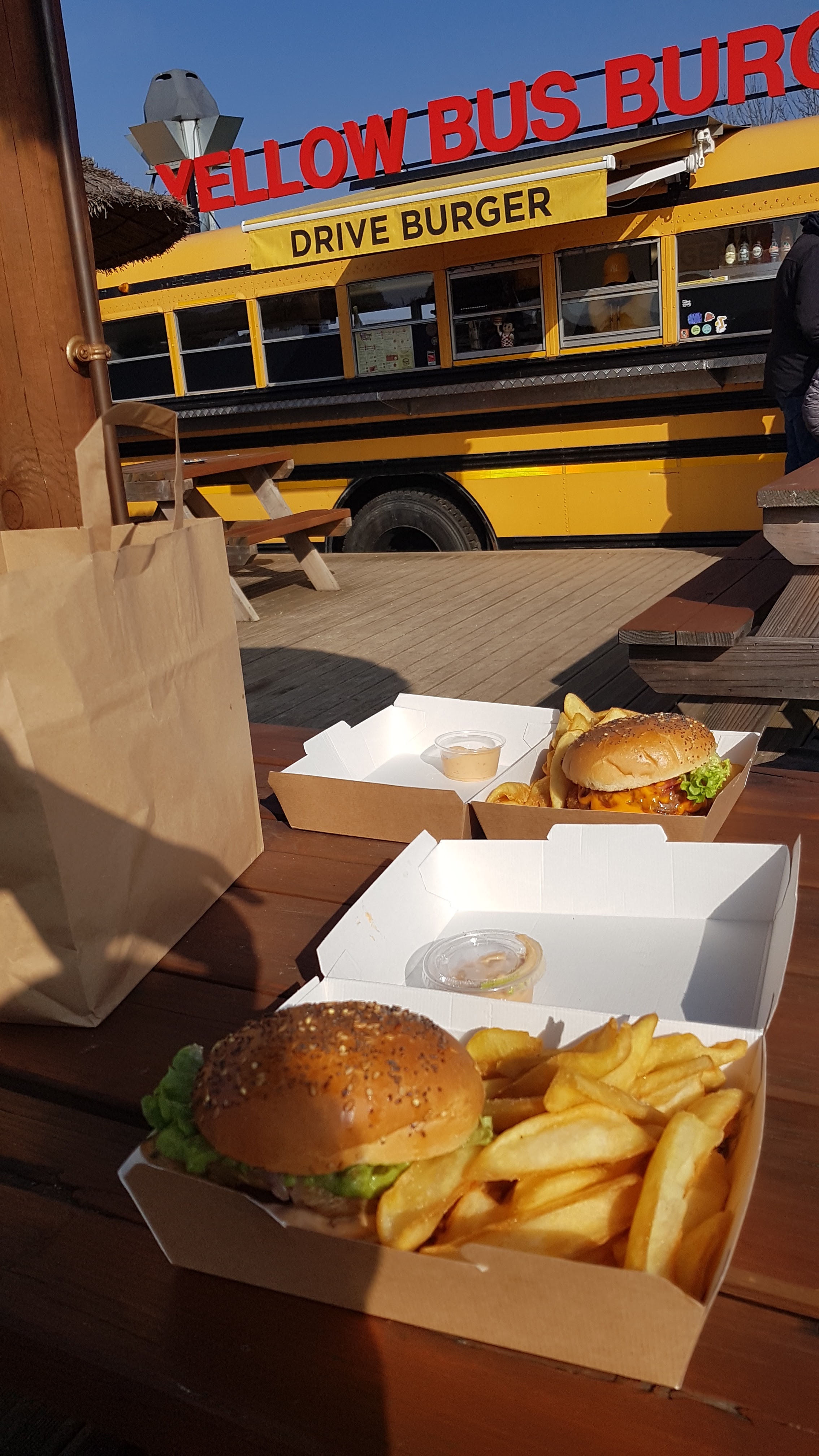 Amateurs de burgers, arrêt obligatoire !!!!! Belle présentation dans une jolie boîte, des sauces en veux-tu en voilà, bref, délicieux et à recommander chaudement !! Au plaisir de se revoir le Yellow Bus !!!