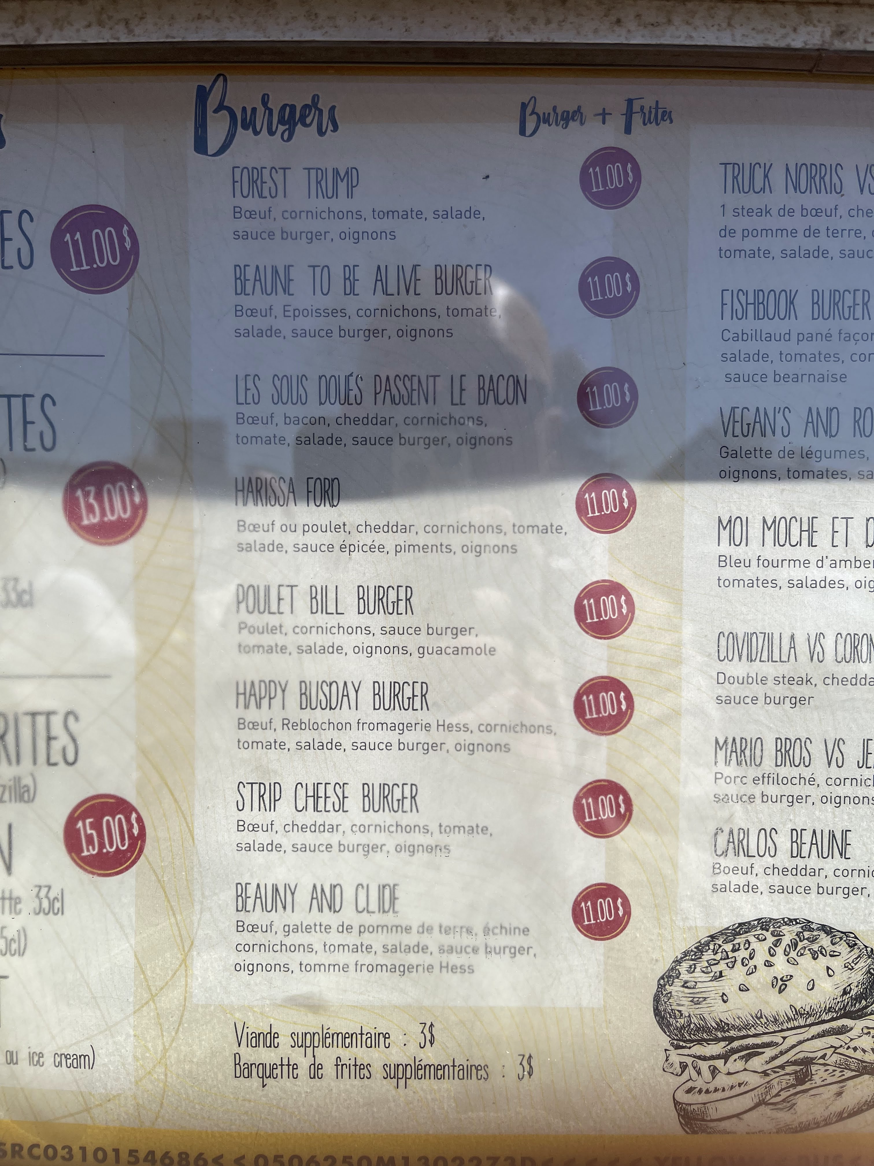 Prix correct, gérant très sympa. Hamburgers bons sans être hyper gras. Rapport / qualité prix au top.
