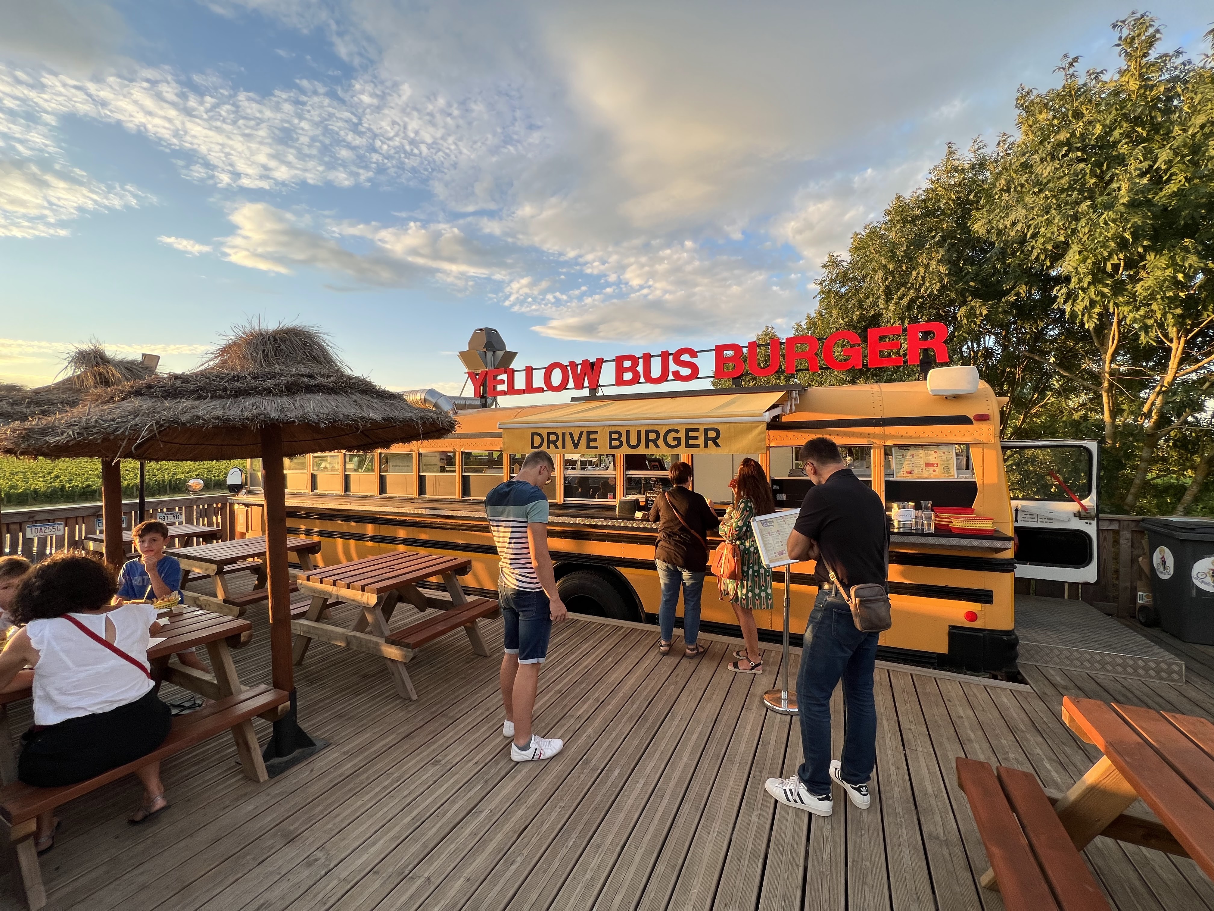Un accueil chaleureux, une vue sur les vignes magnifique au moment du couché de soleil superbe. Un échange avec l'équipe plein de convivialité, une visite du bus et des photos souvenirs comme à la maison. Une étape dans nos vacances qui restera marquée pour tous. Mais outre cette ambiance, des burgers d'une qualité juste exceptionnelle, divers et parfait pour les petits et les grands. Au plaisir de repasser dans la région.