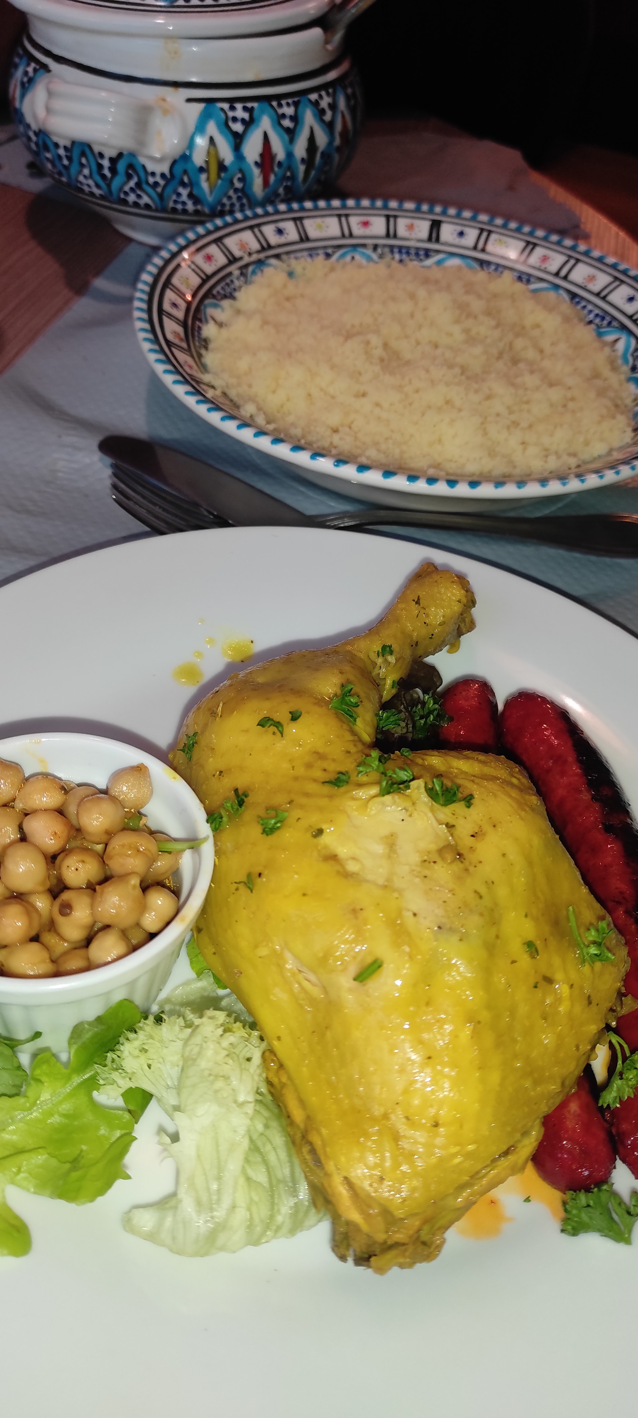 Superbe déco trop bon légumes frais viande tendre la souris d’agneau un régal le couscous une tuerie le tajine tapissime un accentuions chaleureux
