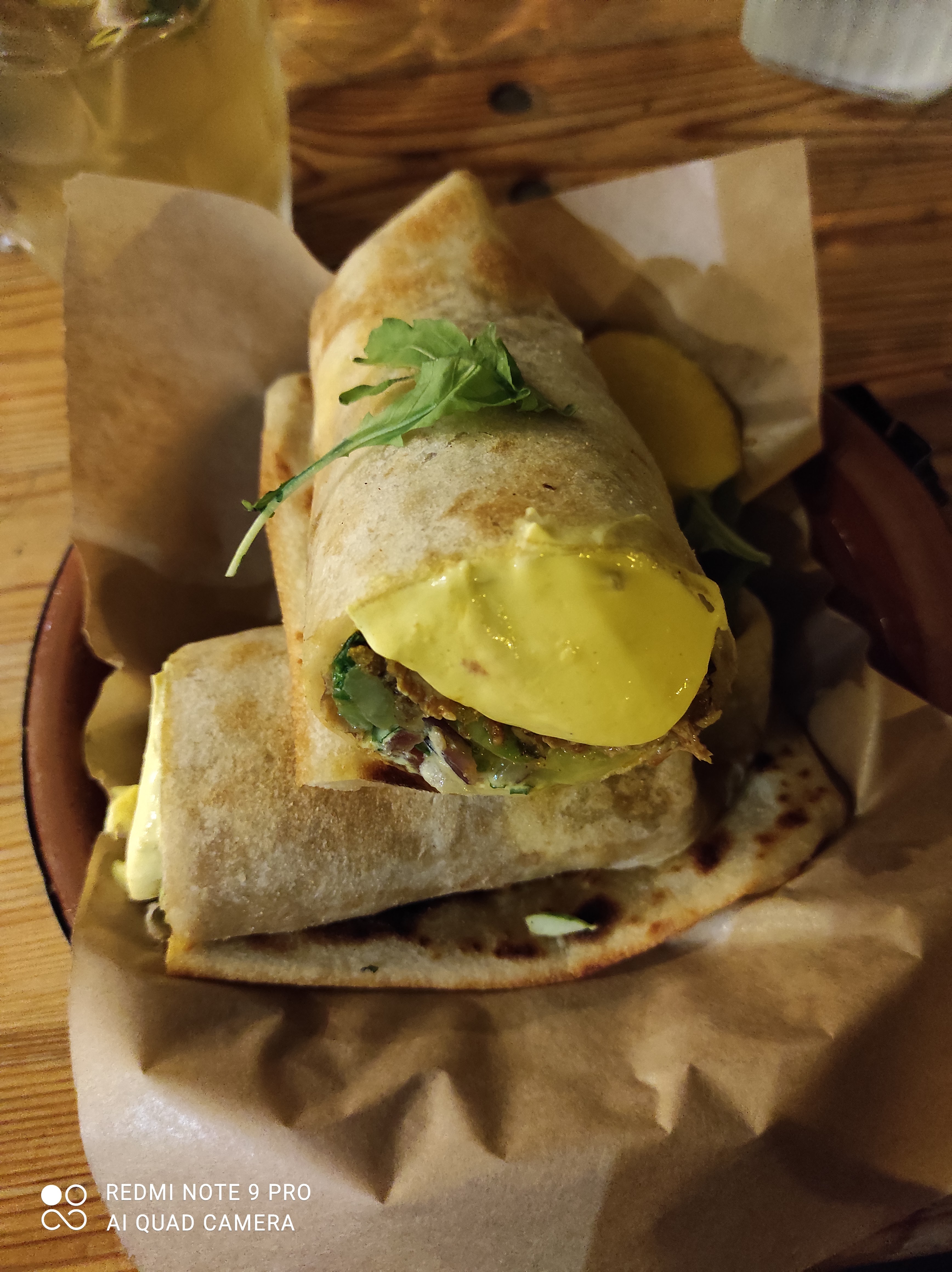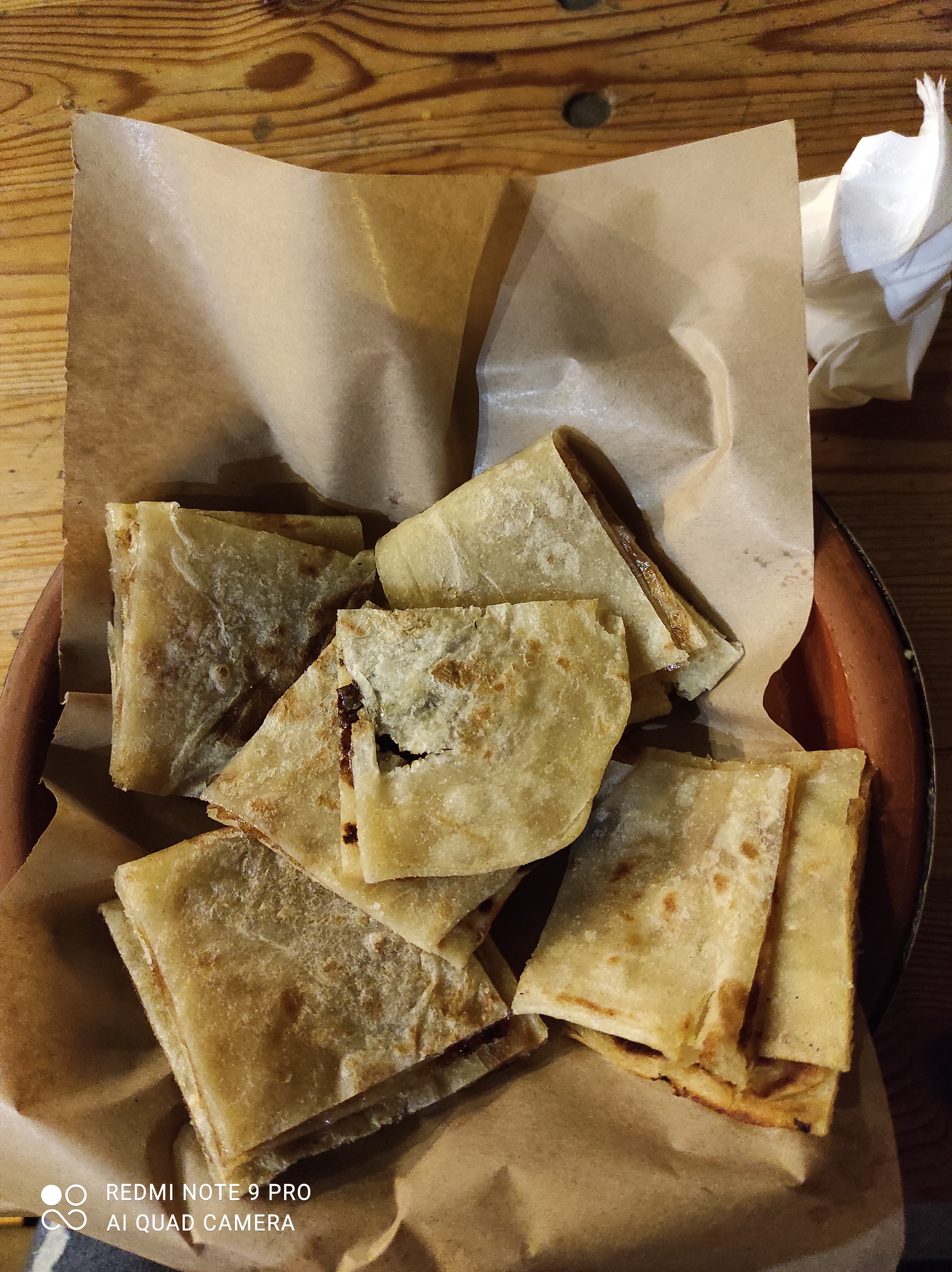 Superbe nourriture avec du pain plat fait maison à tomber par terre. Les conditions sanitaires nécessitent actuellement quelques améliorations.