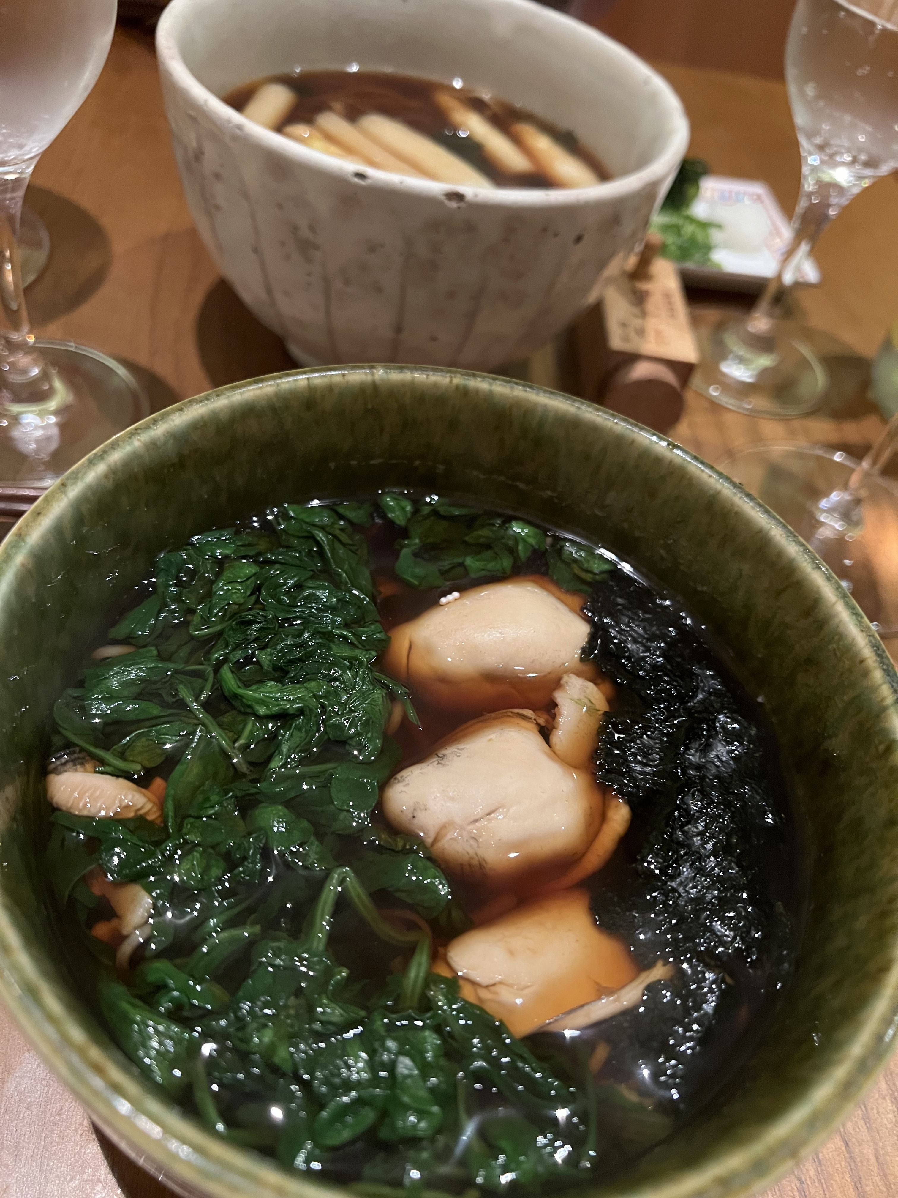 Cuisine raffinée. Prix relativement élevé et j'ai toujours faim même si j'ai payé 40 euros pour mon déjeuner. Le goût est peut-être trop léger pour un chinois du Sichuan.... Soupe Soba au canard : juste de la soupe, des nouilles, du canard et du 大葱. Goût simple et léger. Bulots à la japonaise : goût de soja. Plutôt bien.
