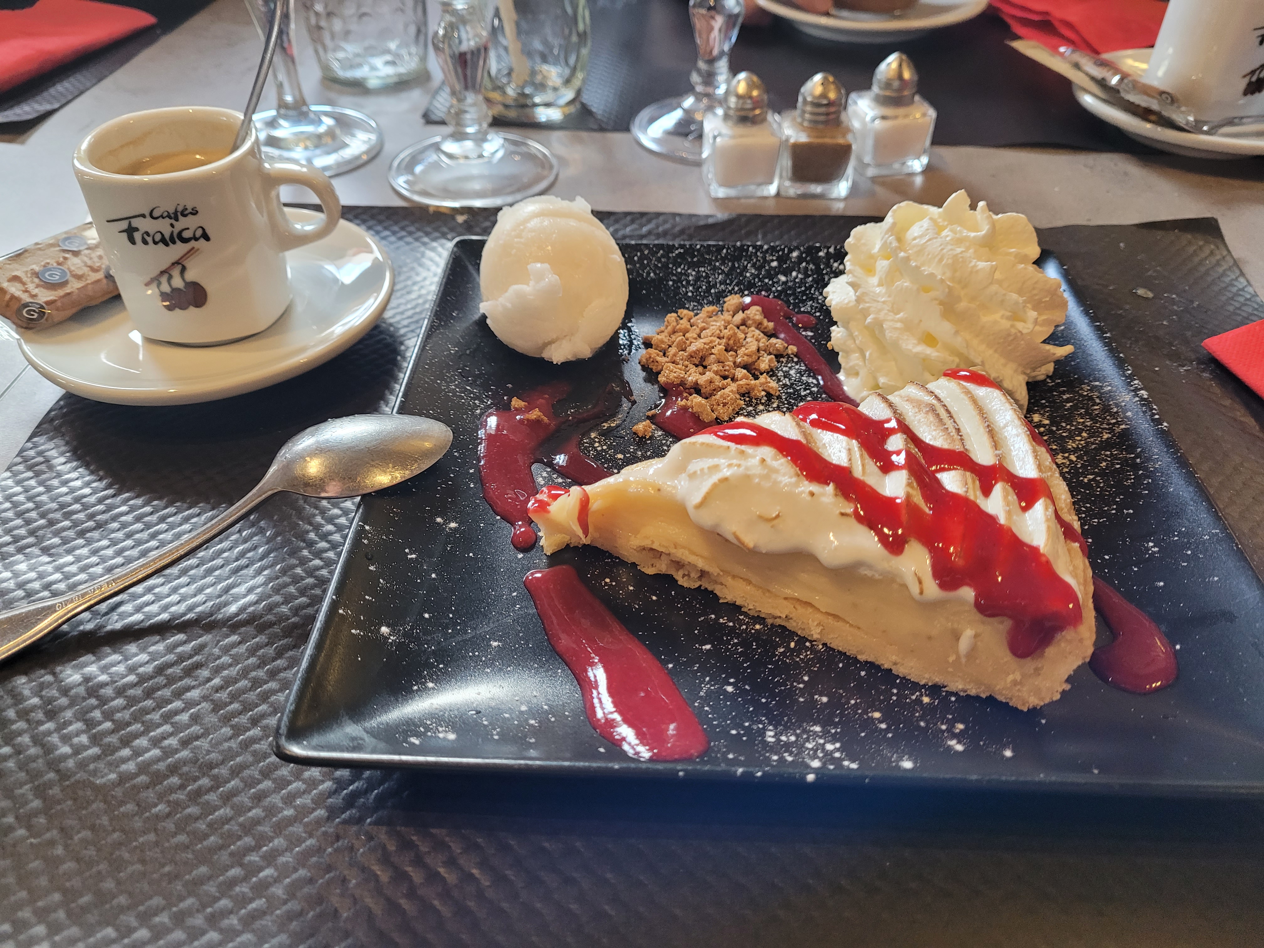 Très très bonne expérience ! Le personnel est super agréable !!! Nous étions 14 le serveur à été très patient ! Les plats sont très copieux et bien garnis !!!! La tartiflette un régal ! La crêpe une tuerie et le café gourmand avec ses mignardises sont plus que généreux ! Je recommande vivement ce restau !!!