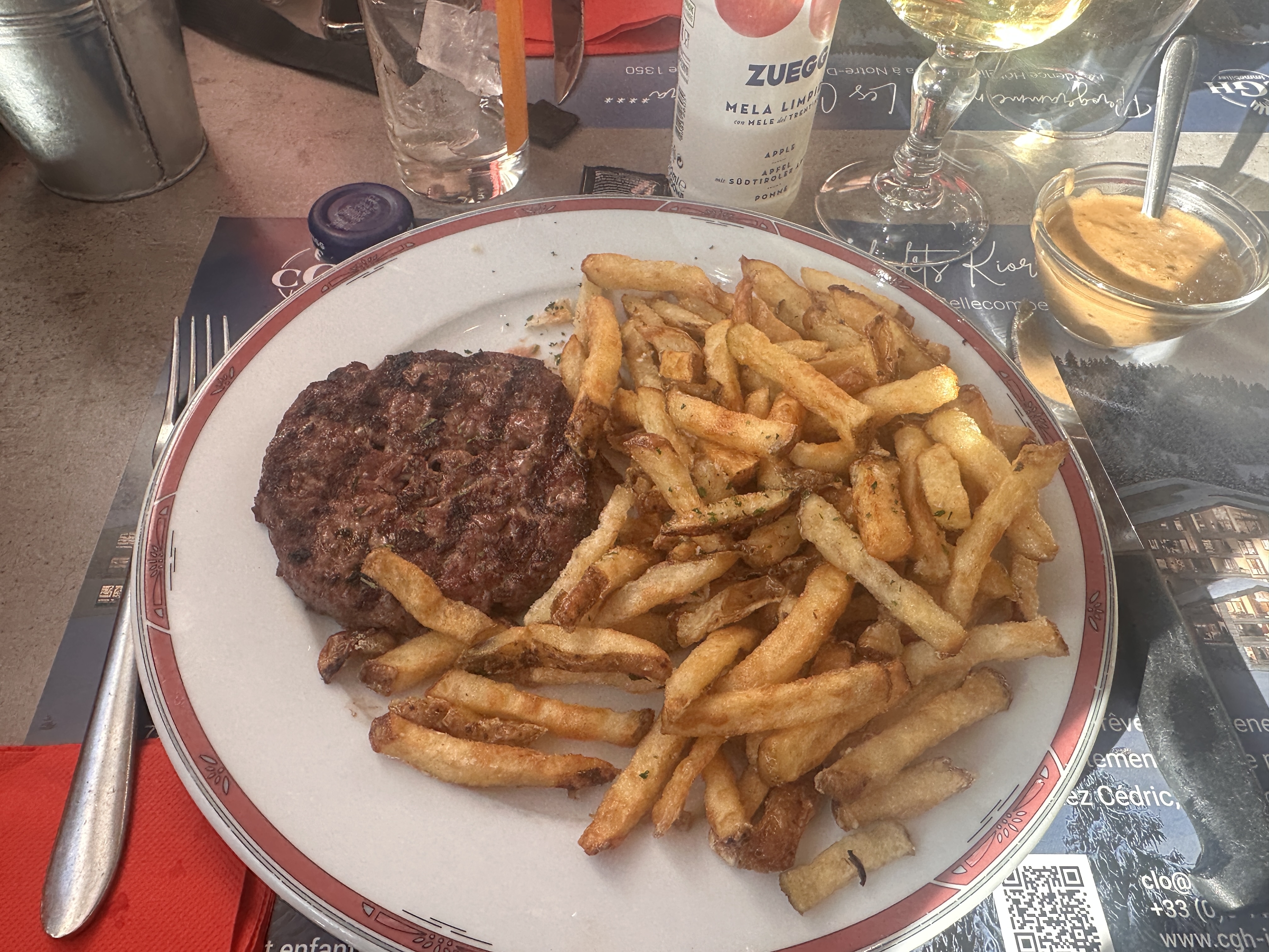 Sympa Restaurant situé au pied des pistes et à proximité d'une remontée mécanique. Disposant d'une vaste terrasse plein sud. Service sympathique et dynamique. Rapport qualité prix excellent. Les plats sont goûteux et bien servis, quantité très correcte. Attention, l'excellent burger grand format est réservé pour les gros mangeur, je suis pas arrivé au bout. La côte de bœuf (1,2kg) est exceptionnelle, un vrai régal. Je recommande vivement.