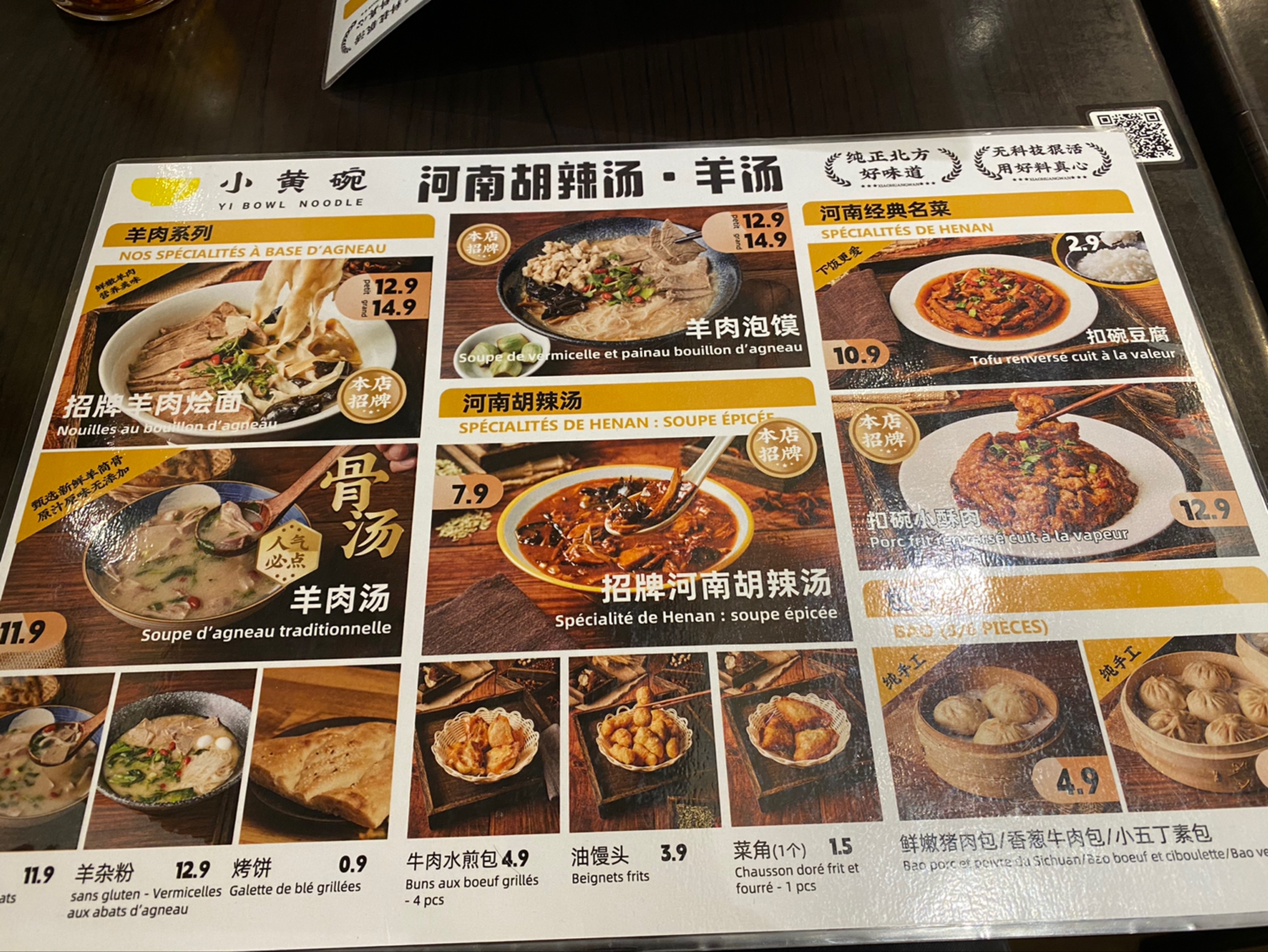 Prix abordable, repas délicieux et service excellent. Fan de la cuisine chinoise, j’ai jamais essayé celle du Henan, expérience intéressante ! Mon amie trouve que la soupe épicée est piquante alors moi j’adore. Les beignets frits sont plutôt salé et d’après un chinois il faut les manger avec la soupe. J’aime beaucoup les tangyuan comme dessert.