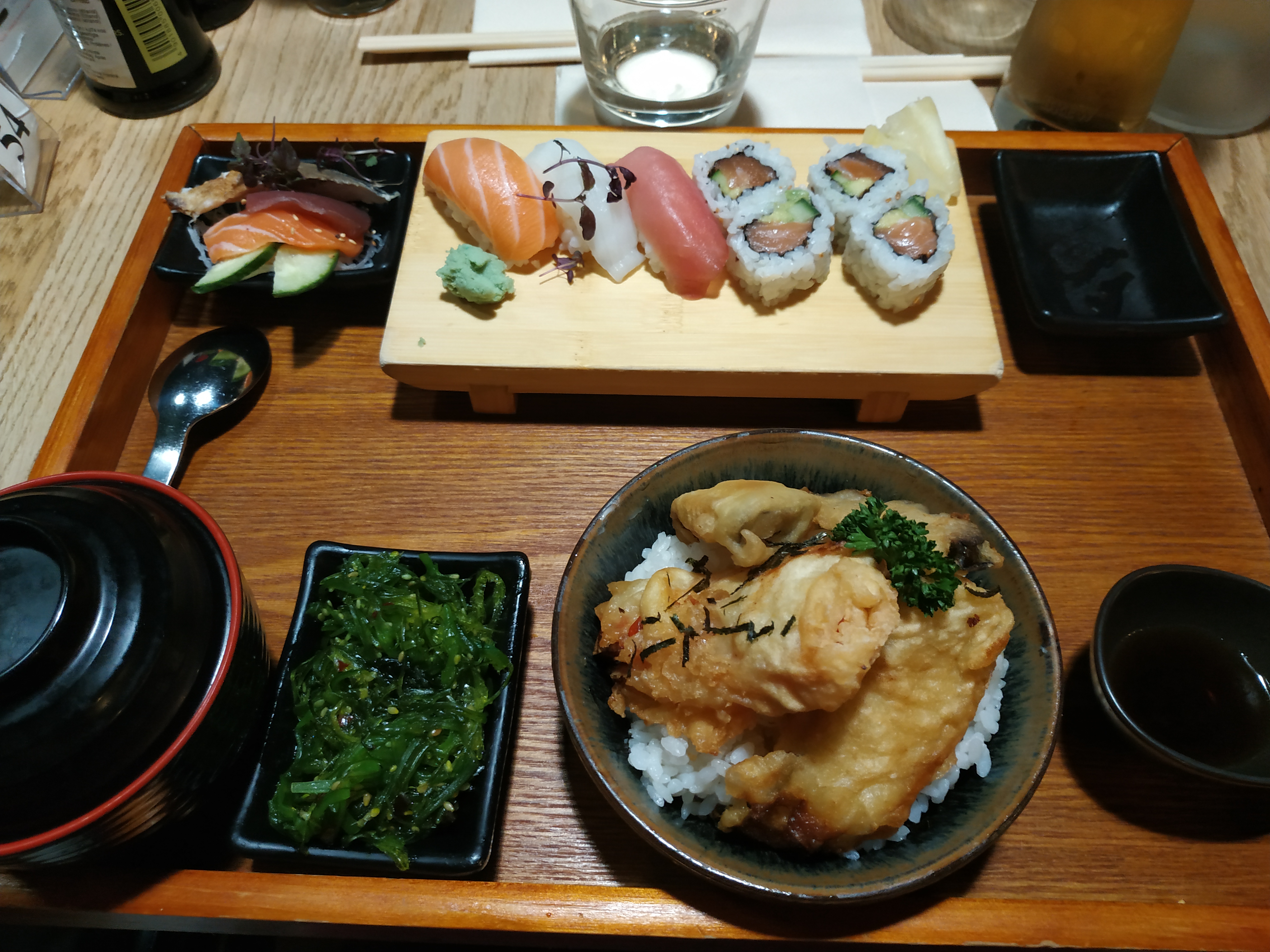 Le cadre est très joli, une belle décoration, belle ambiance, les serveurs sont très sympathiques et souriants, en revanche j’ai trouvé les sushis vraiment petits par rapport au prix assez élevé, je suis un peu restée sur ma faim, dommage !
