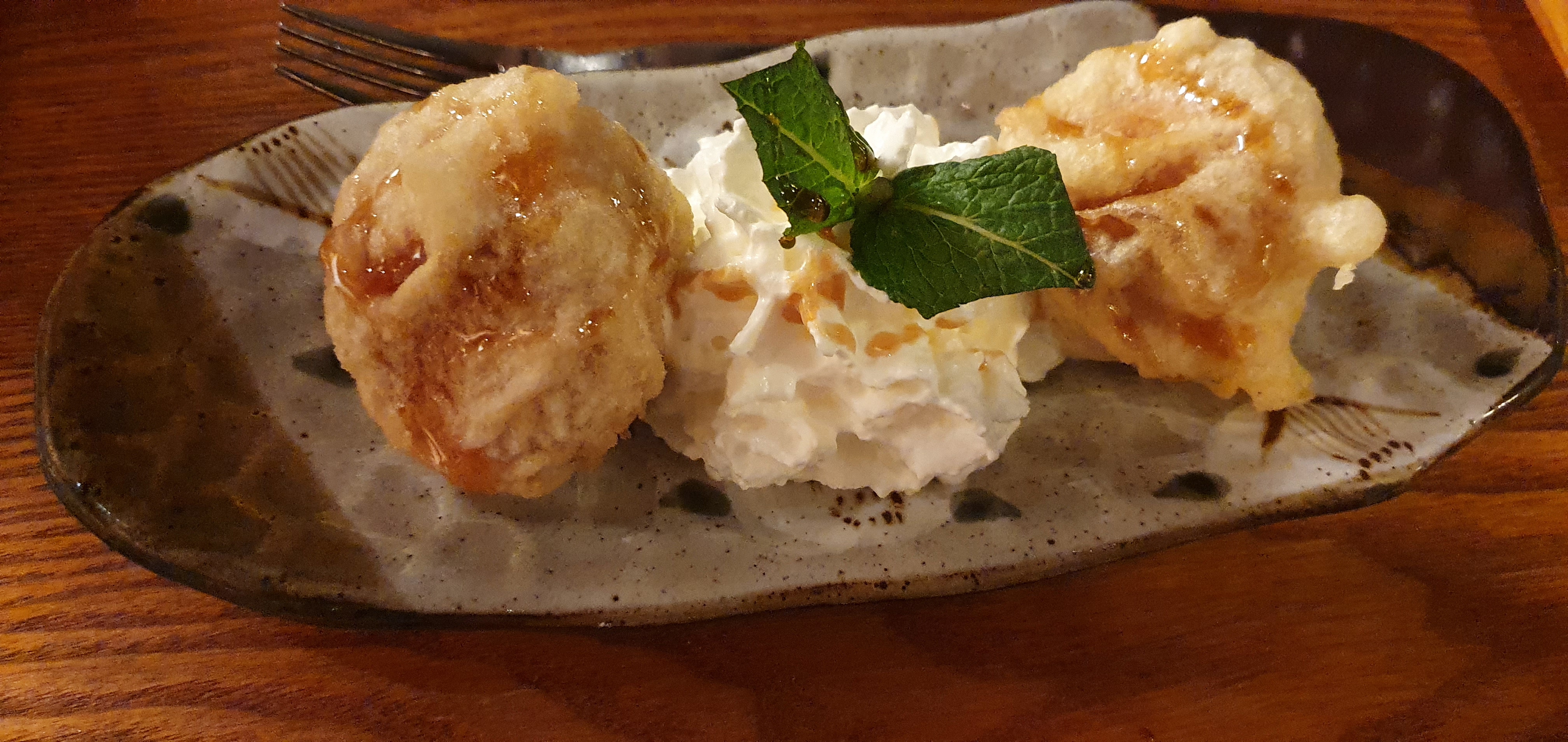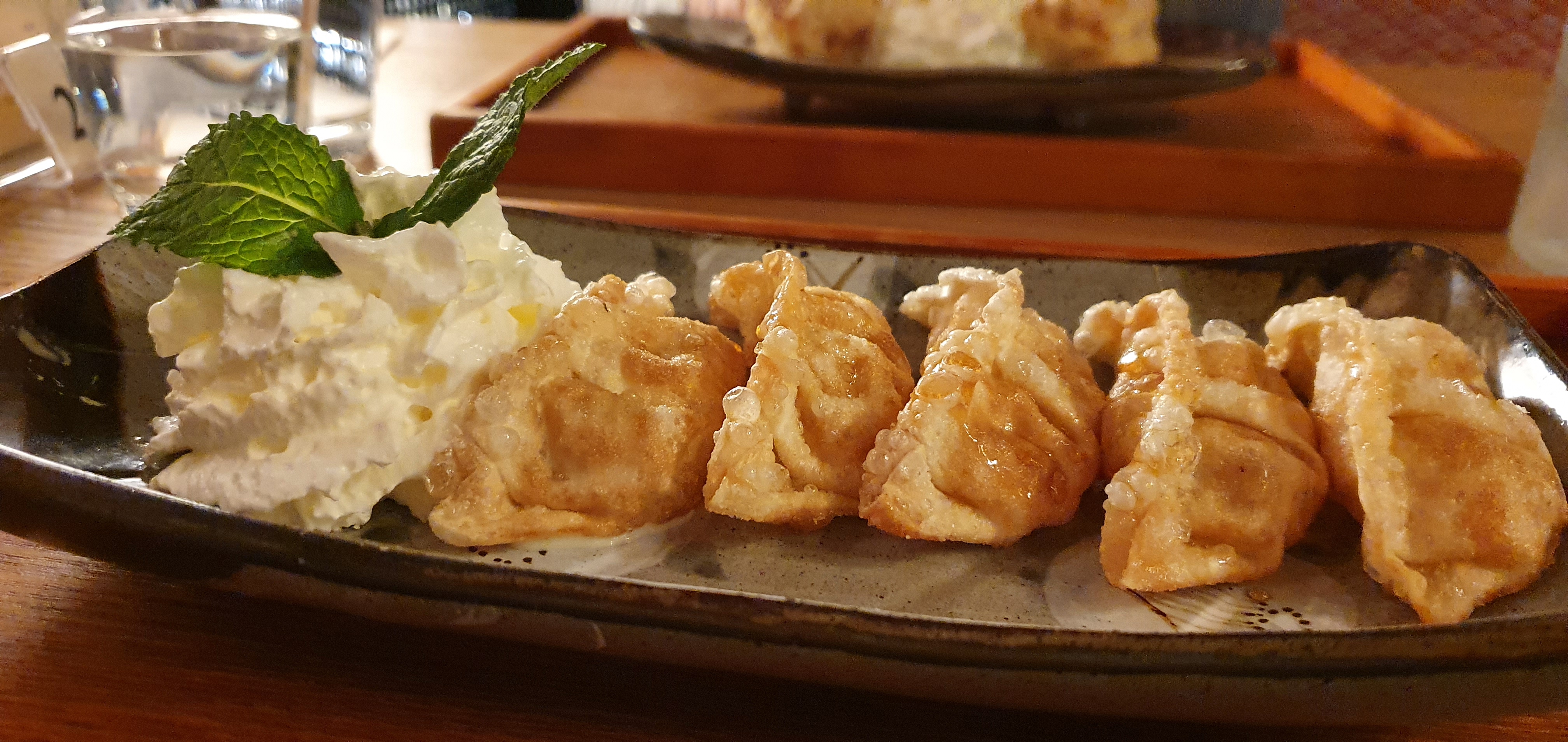 Très déçue par les beignets de légumes qui consistaient en 6 morceaux de légumes grossiers recouverts d’une croûte de gras carrément décollée pour certains et les beignets de poulets qui n’avaient de « poulet » que le nom puisque c’était plutôt des boules de gras frites ! C’est donc cher payé ! Par contre, la glace au citron hyper crémeuse servie dans un verre, les mochis ( ceux à la fleur de cerisier sont magiques !!!!) et les raviolis au poulet / légumes joliment présentés, un peu fermés et parfumés étaient délicieux !